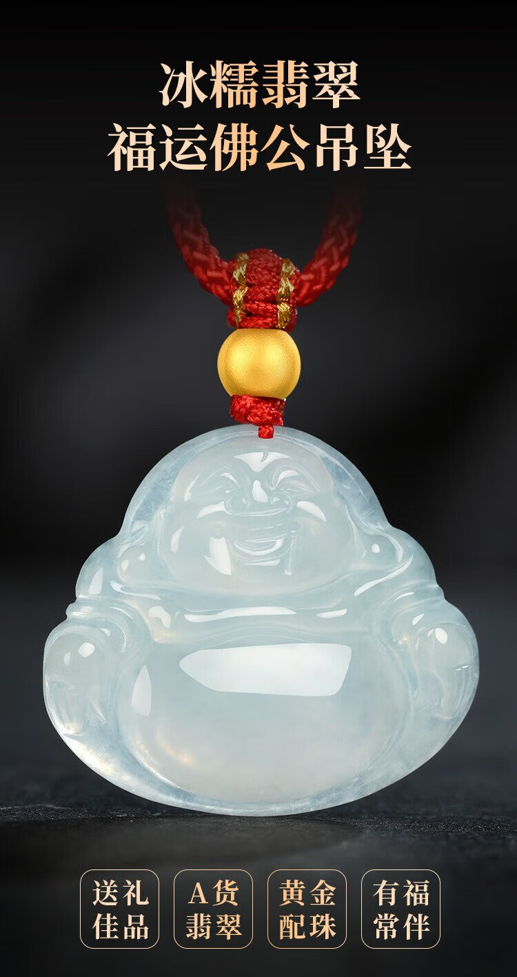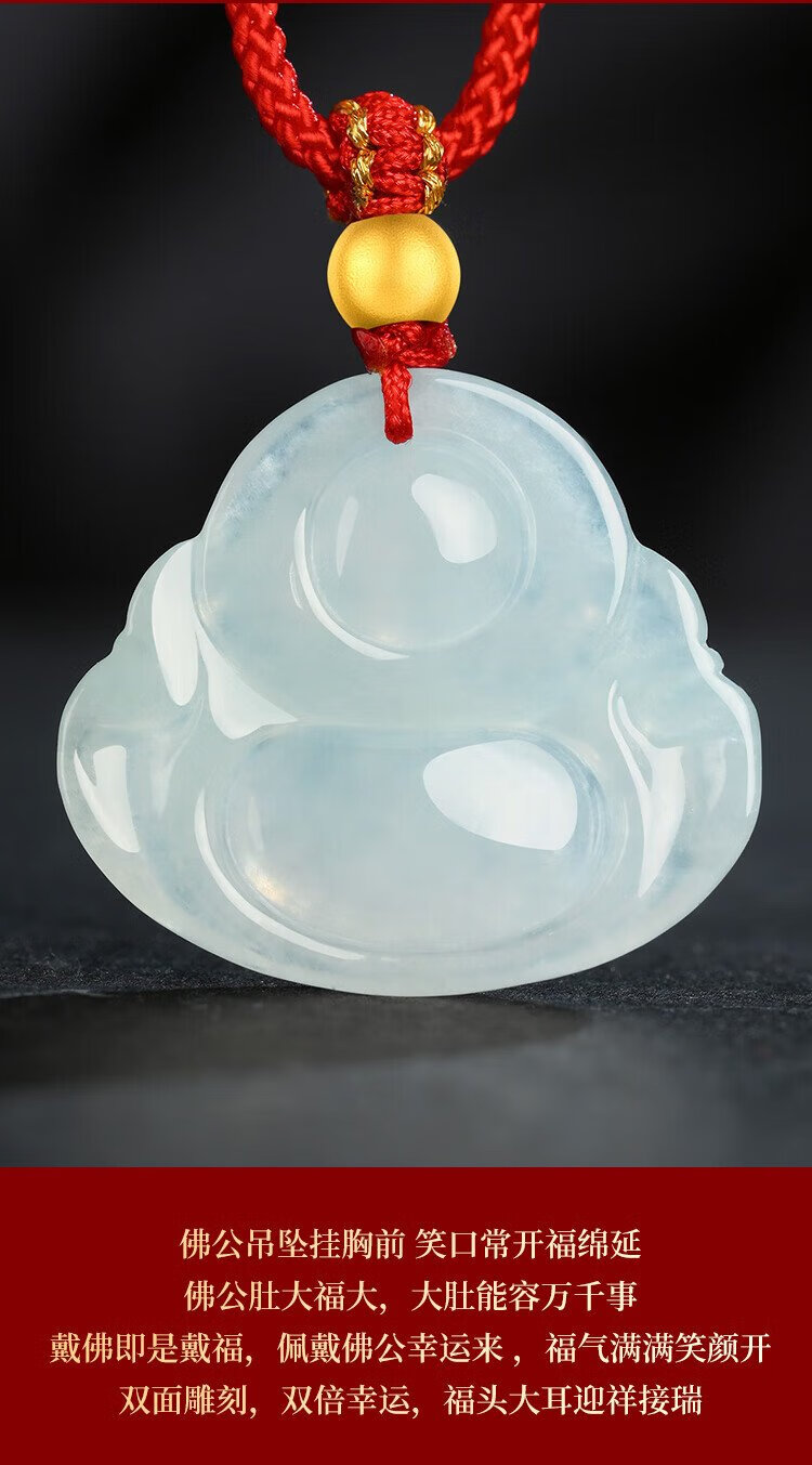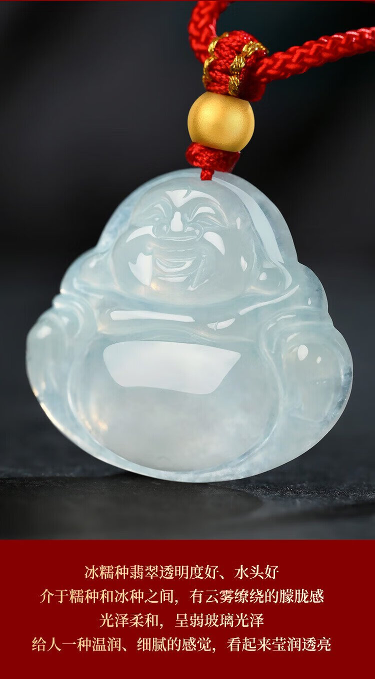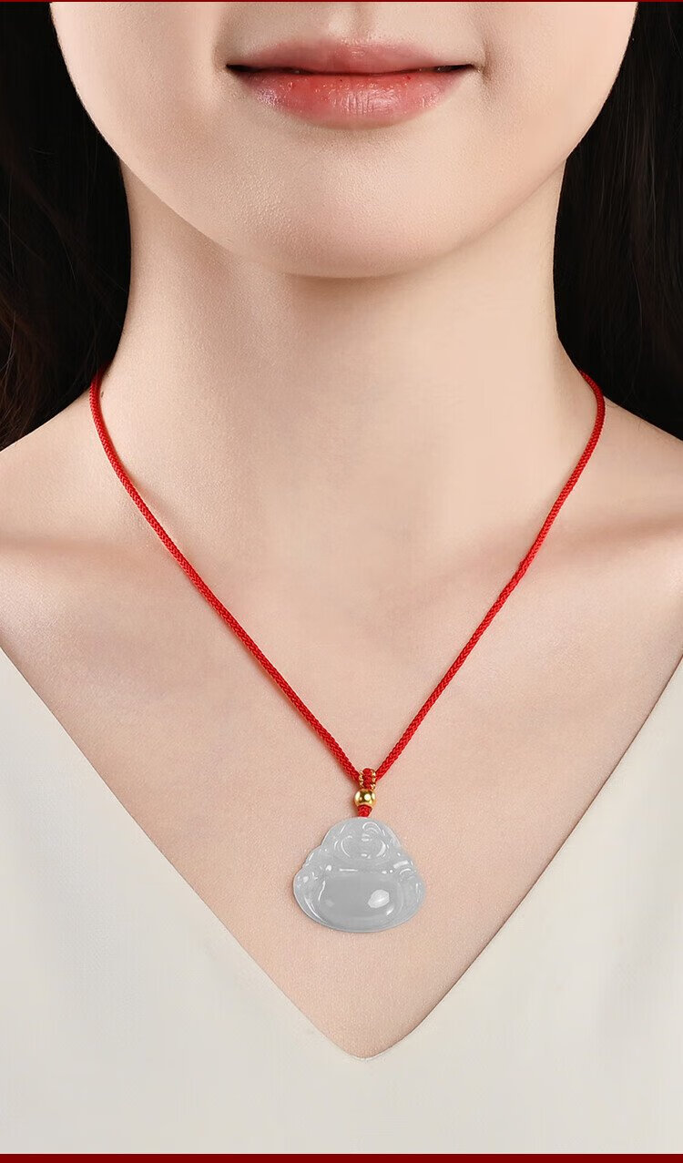 Phoenix Jewelry Ice Waxy Jade Jade Buddha Pendant Women's Model Le Fu Gong Natural Jade Pendant Necklace Birthday Gift