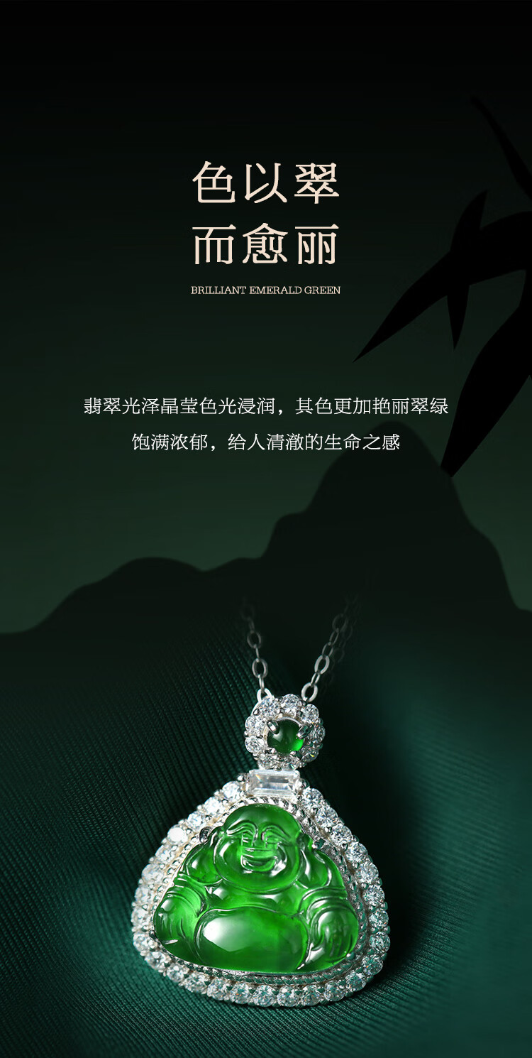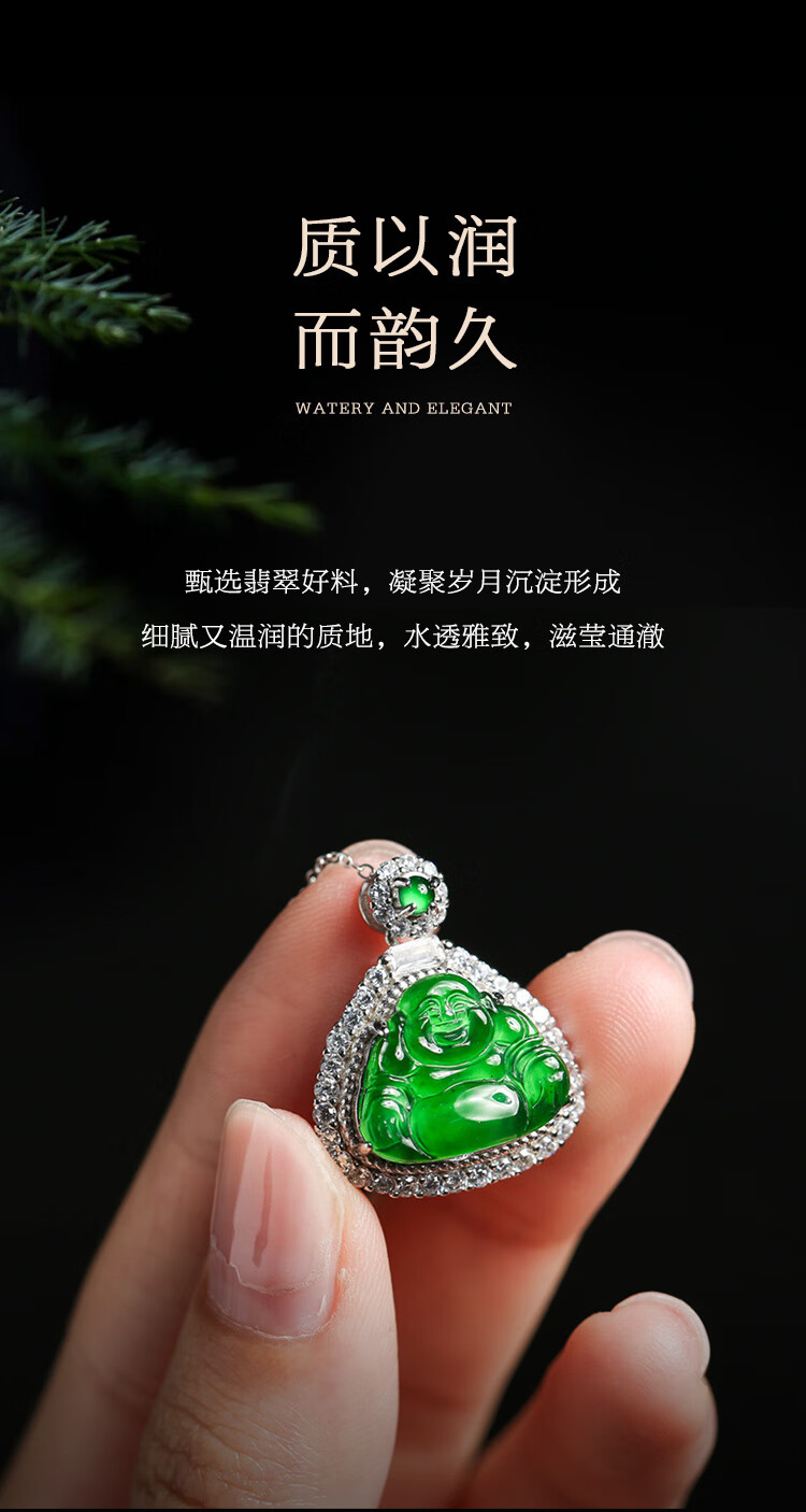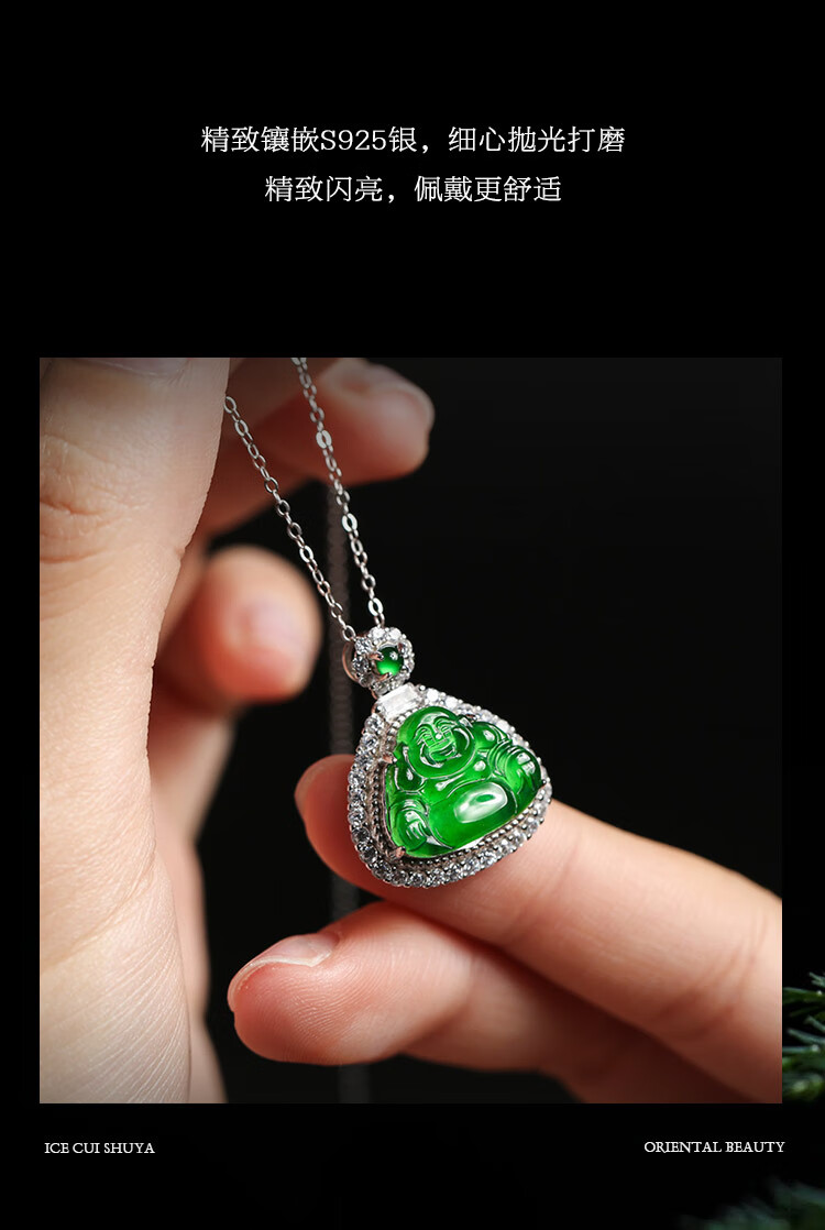 Oriental Jadeite Imperial Green Pendant S925 Silver Full Inlaid Green Smiling Mouth Always Open A-grade Jadeite Buddha Necklace Same Style for Men and Women