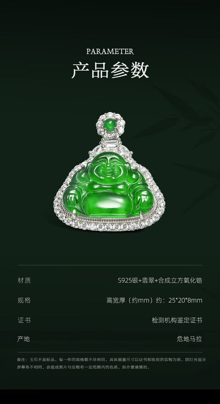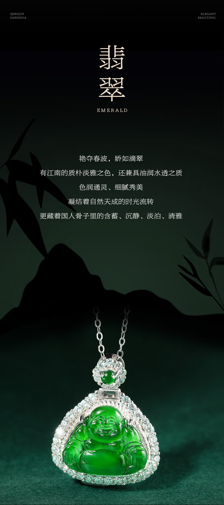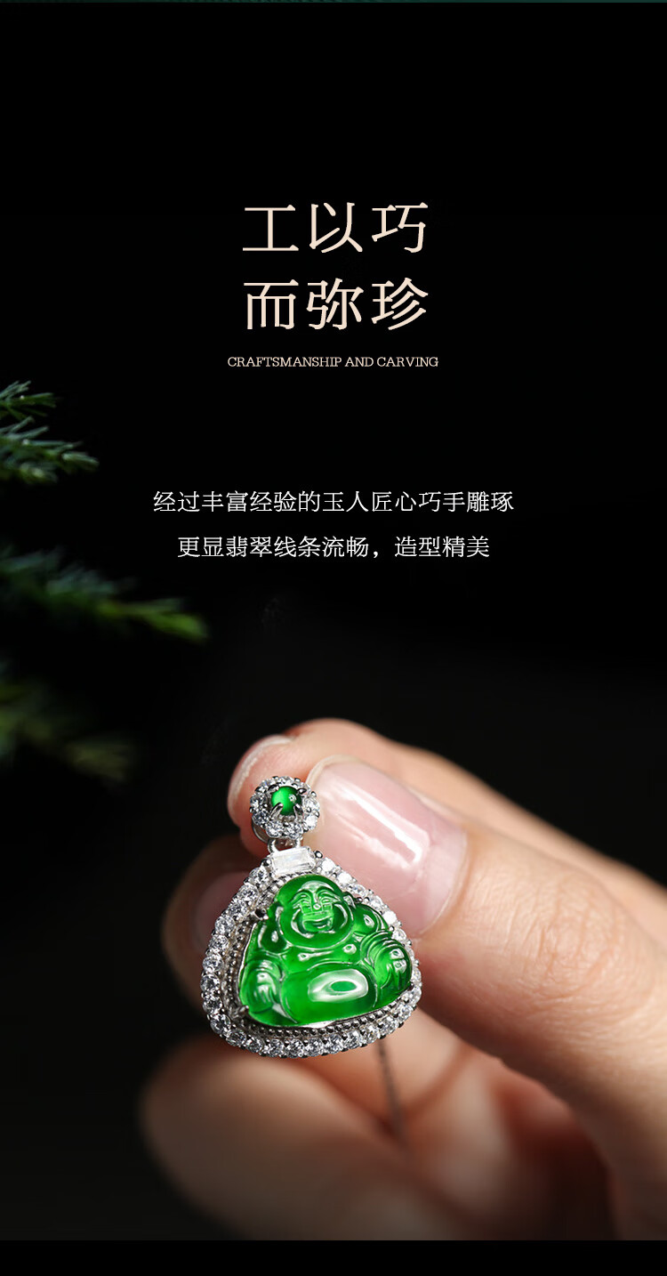 Oriental Jadeite Imperial Green Pendant S925 Silver Full Inlaid Green Smiling Mouth Always Open A-grade Jadeite Buddha Necklace Same Style for Men and Women
