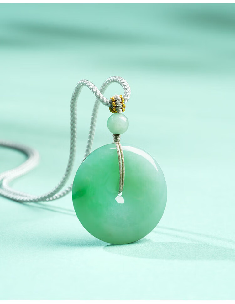 Zhou Taisheng same price 11.11 A goods jadeite safety buckle pendant for men and women floating green jade pendant for mother