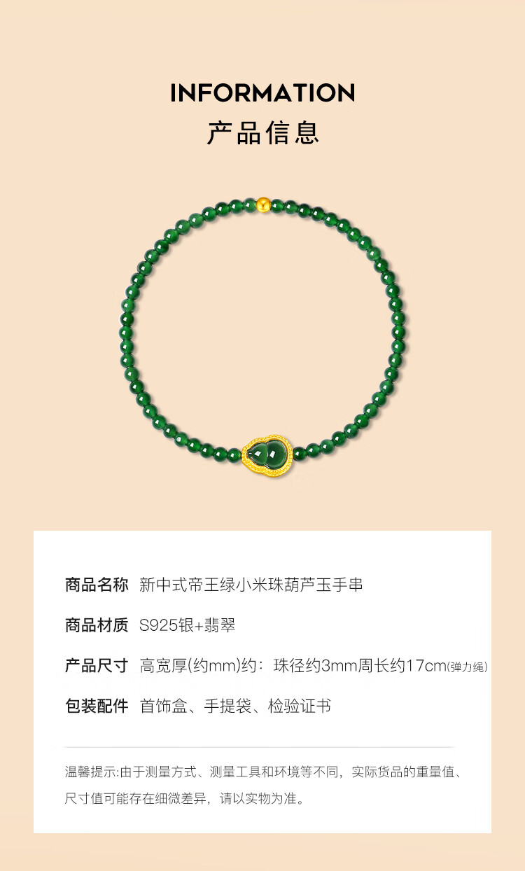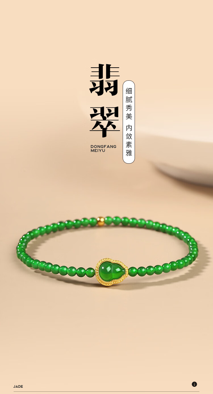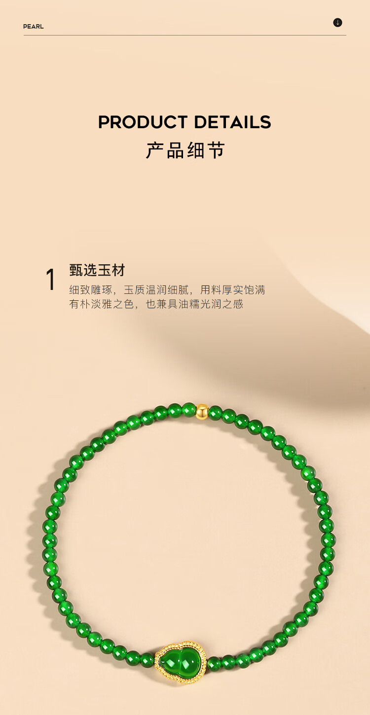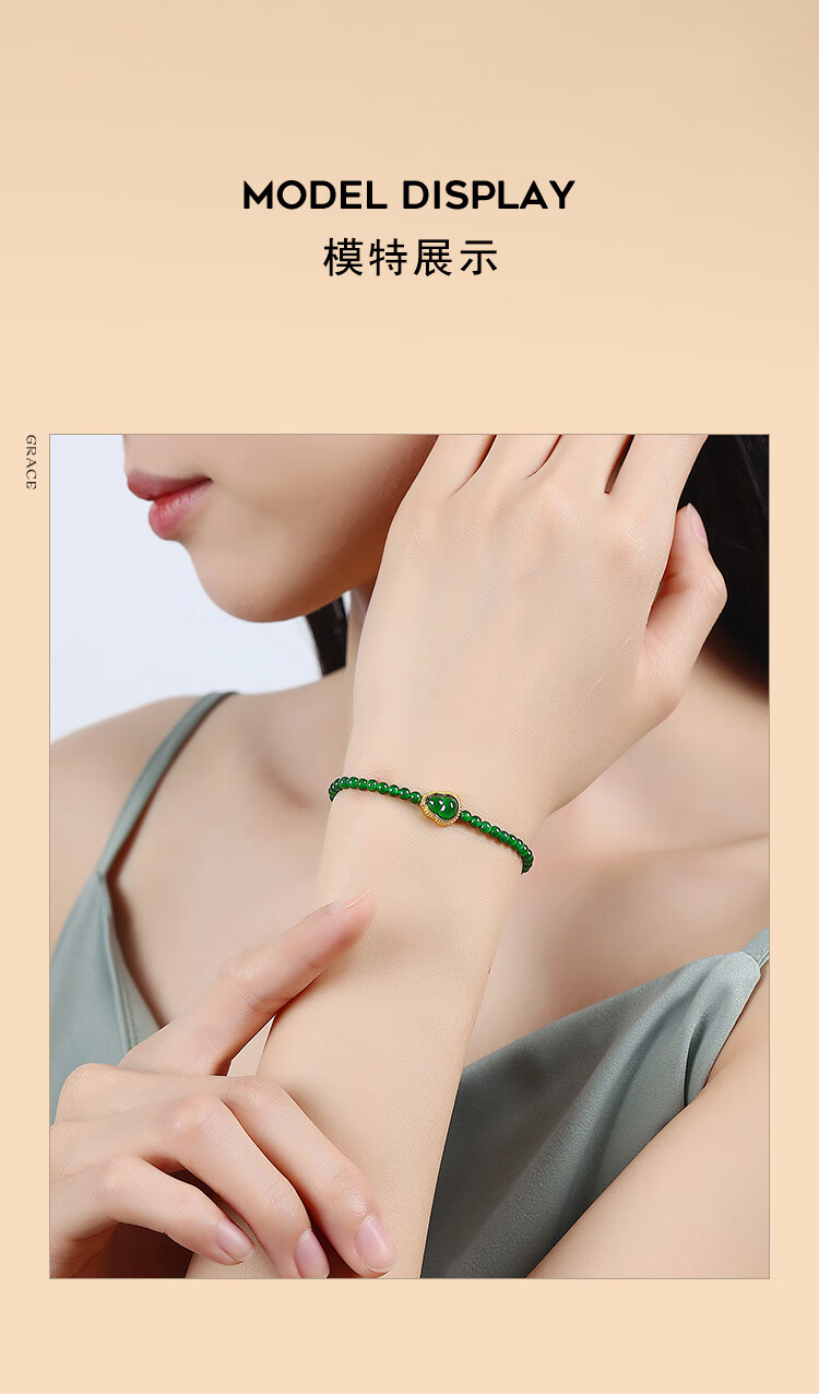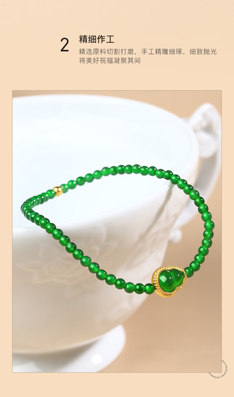 Oriental Jade Ice King Green Millet Beads Ultra-Fine Bracelet Spicy Green Gourd Jade Bracelet Lucky Fortune Birthday Gift for Women