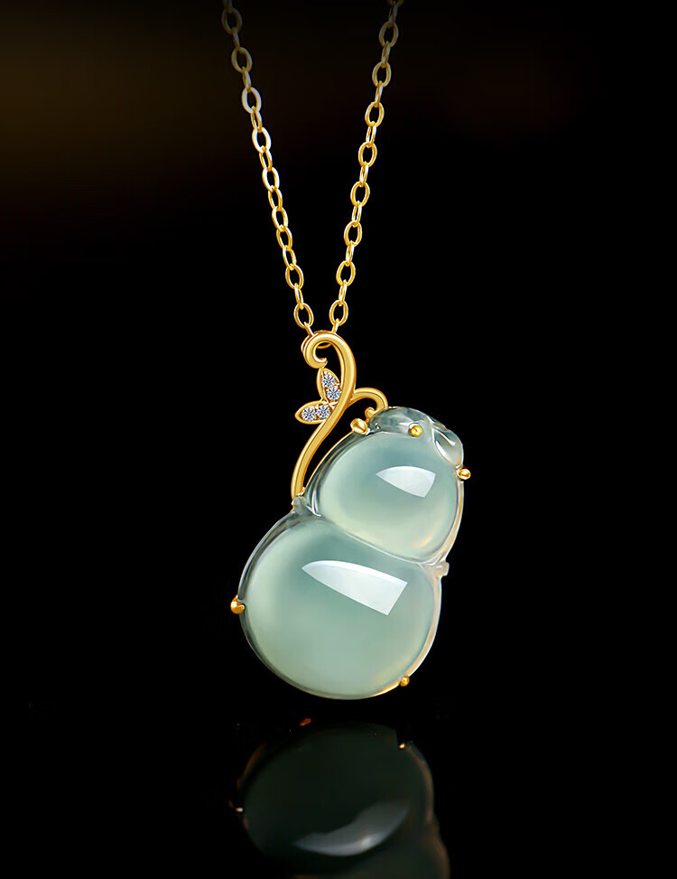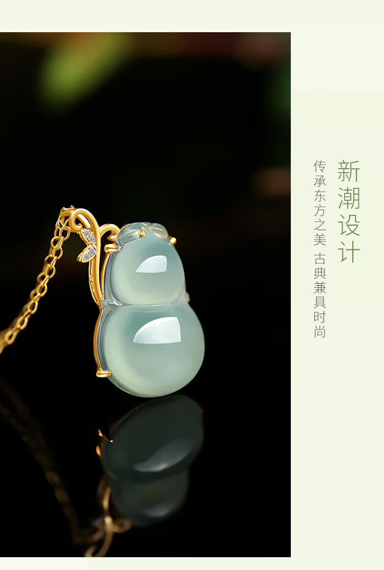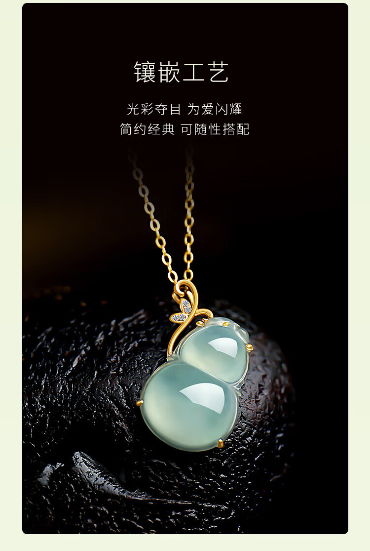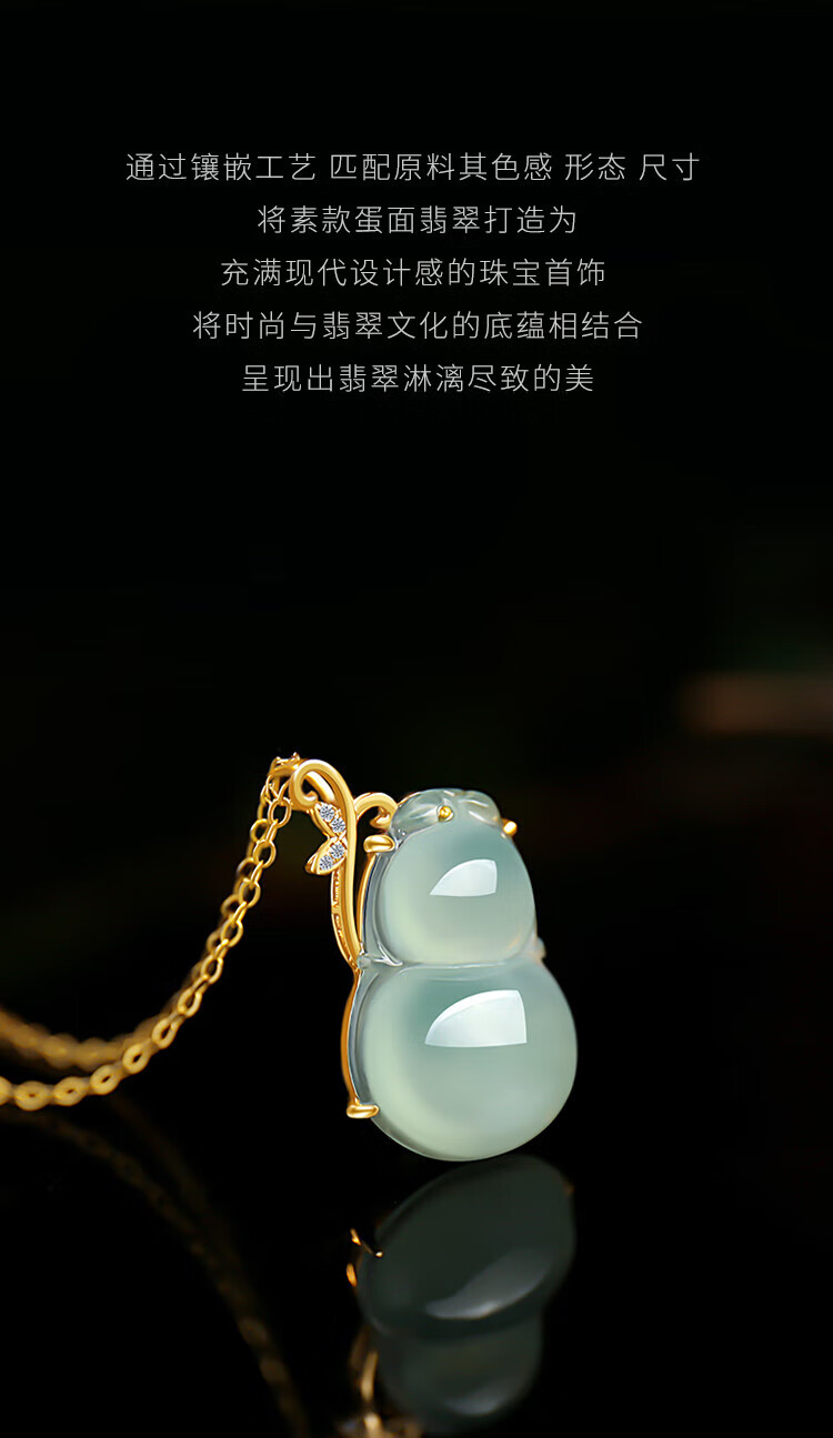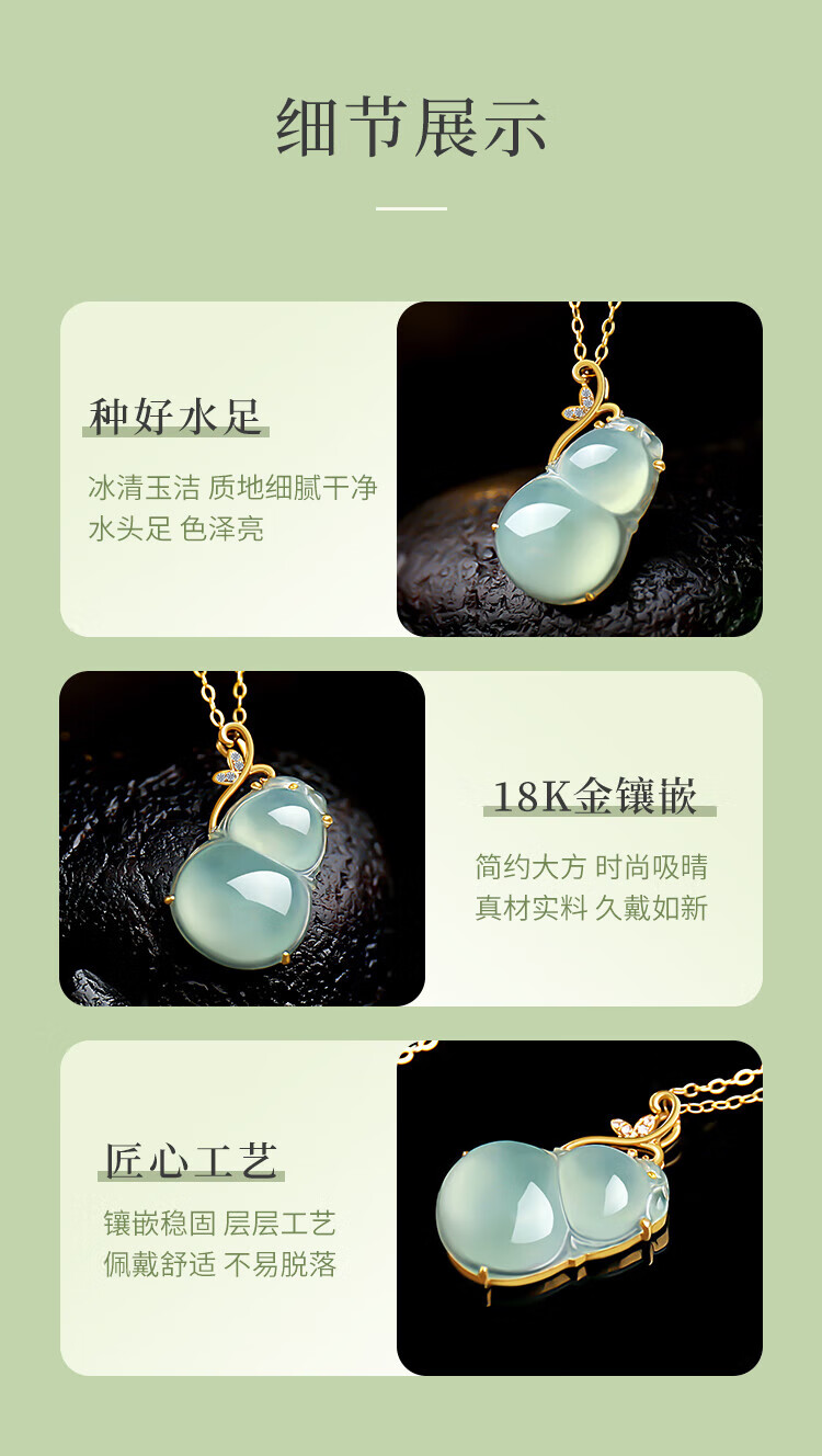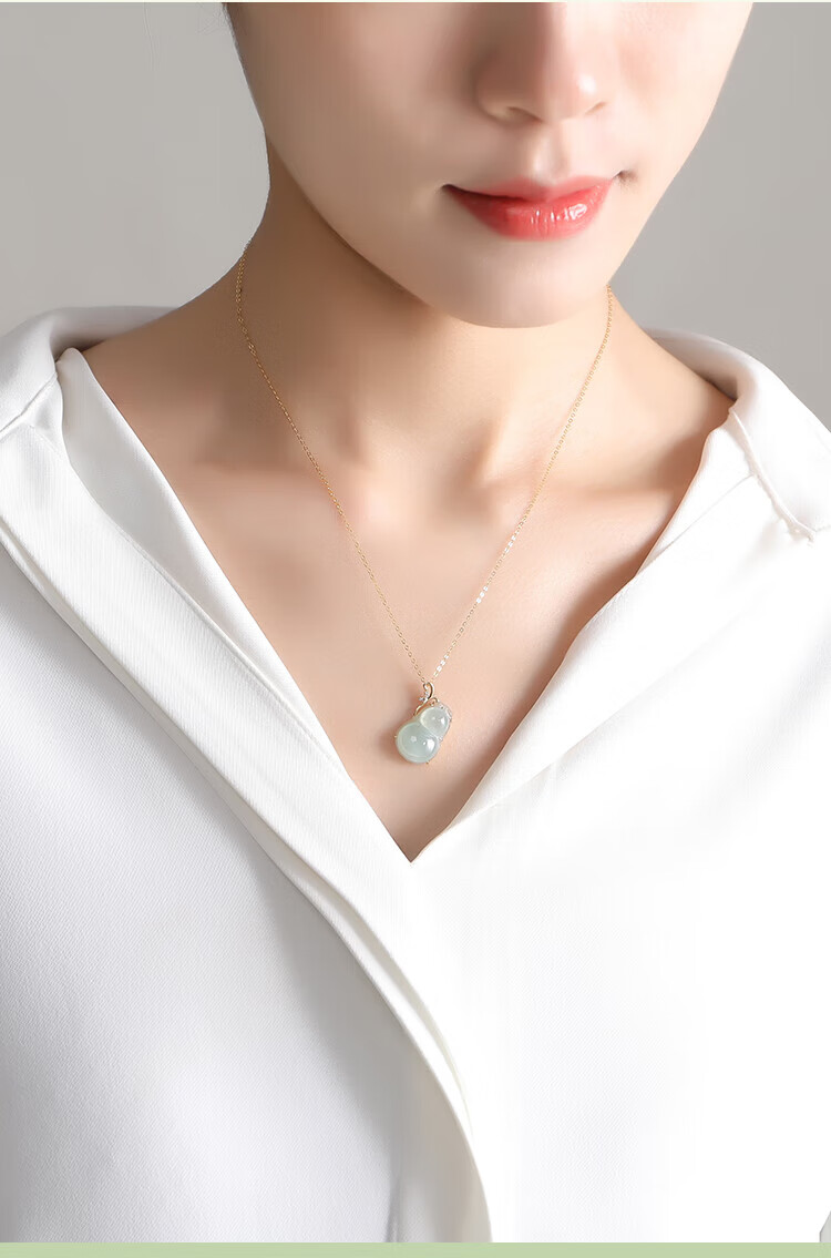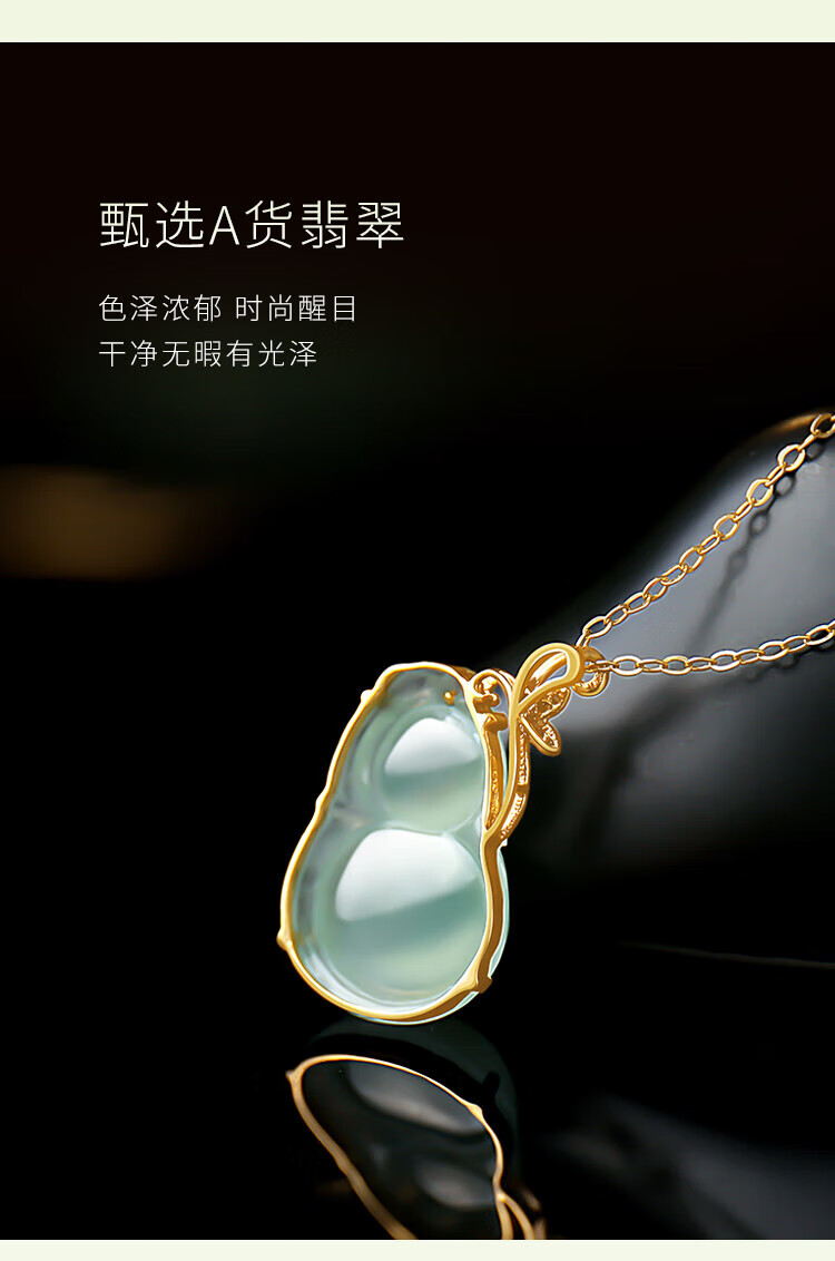 以心参玉【11.11狂欢返场】18K金镶翡翠吊坠 女款福禄葫芦玉石挂件