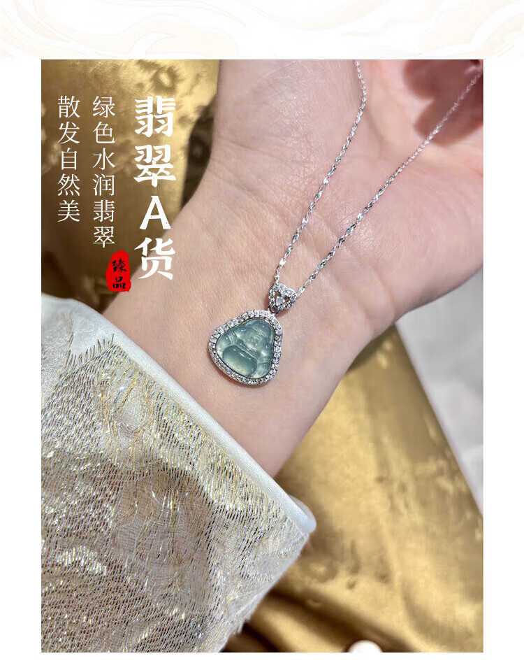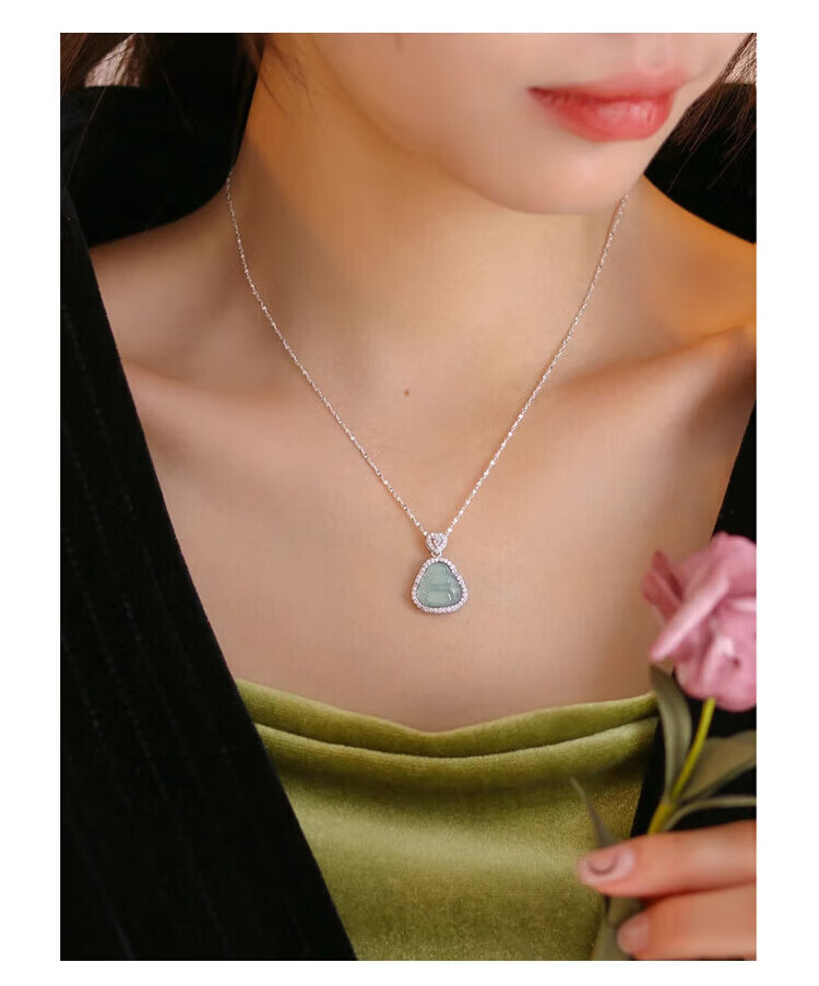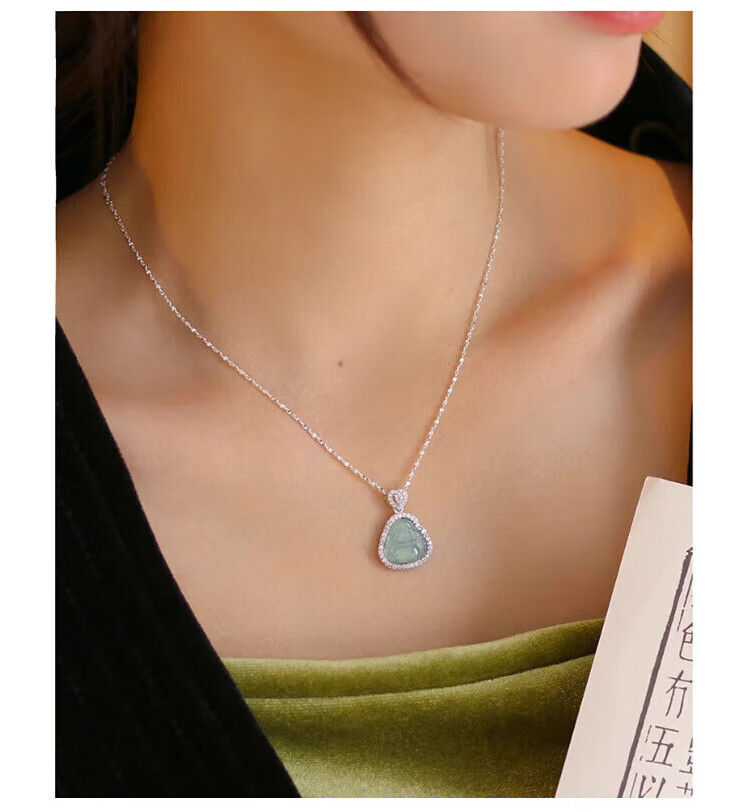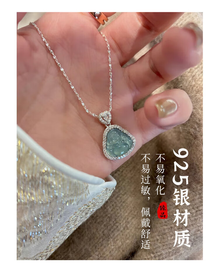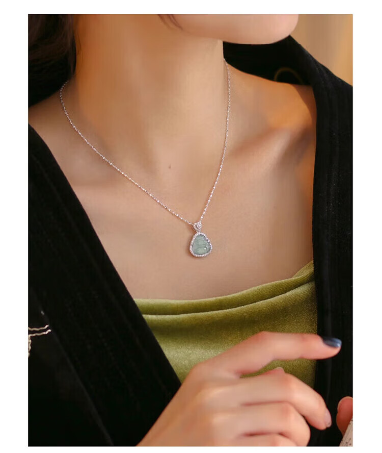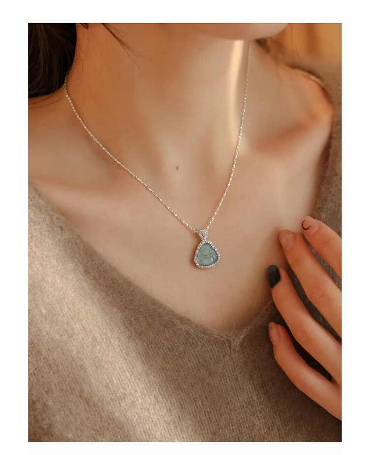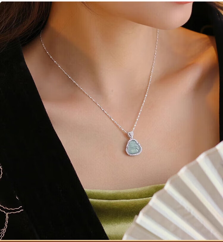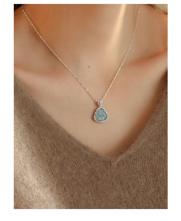 Jianlu Jade A-grade Maitreya Buddha Silver Necklace Women's Jade High-end Pendant Jewelry Birthday Gift for Mom and Girlfriend