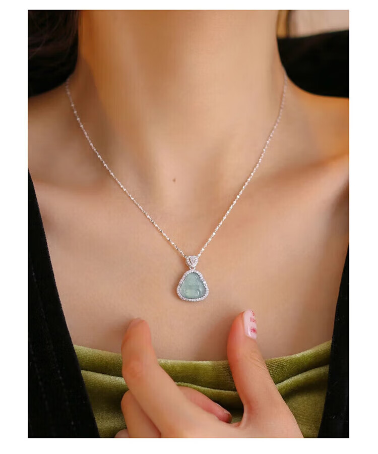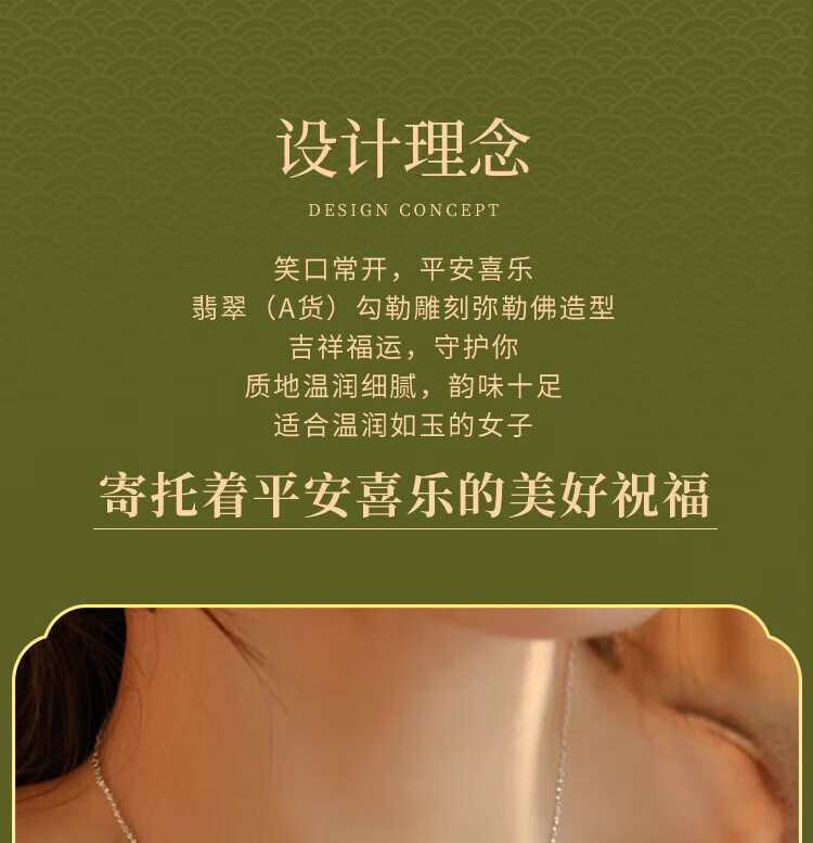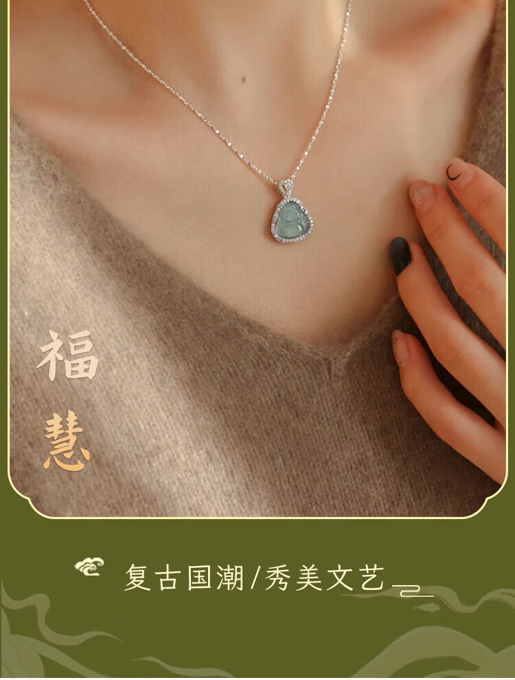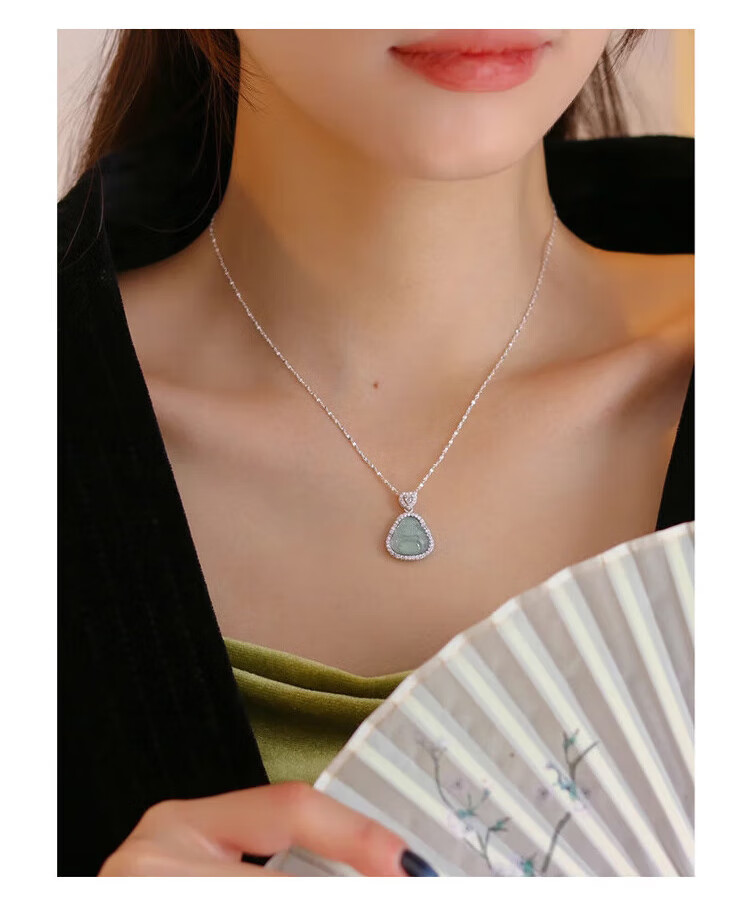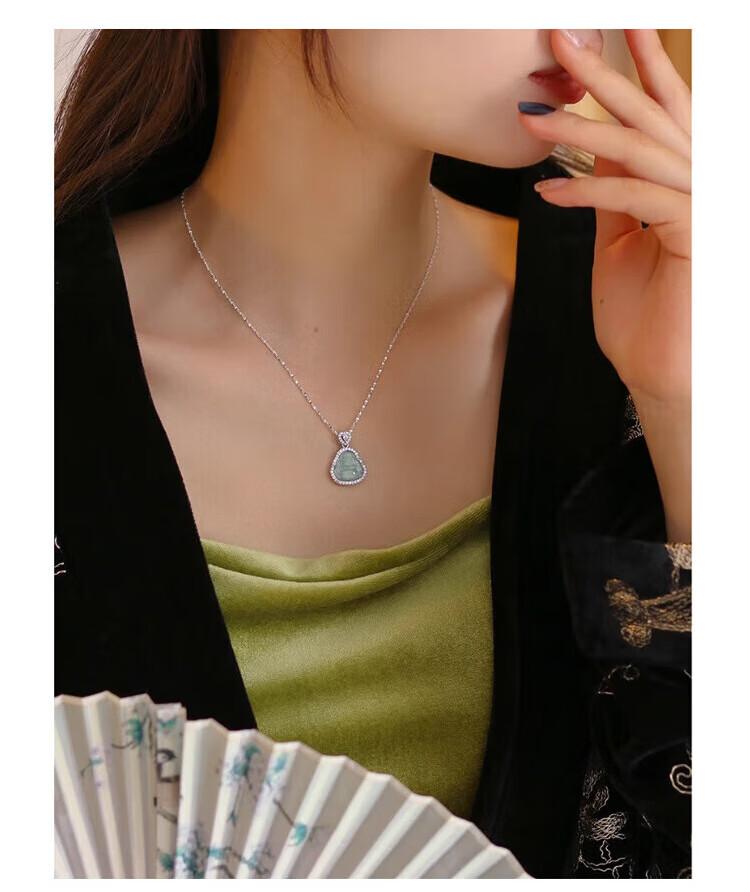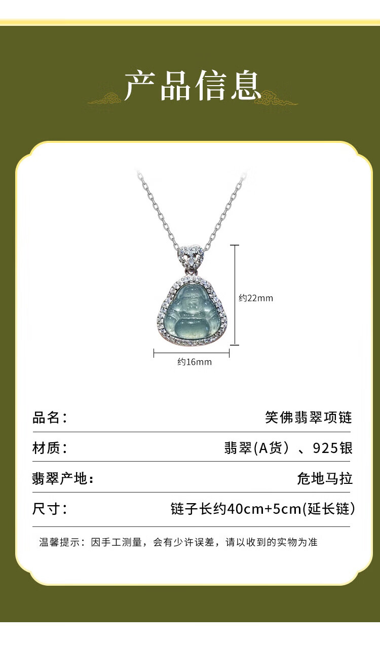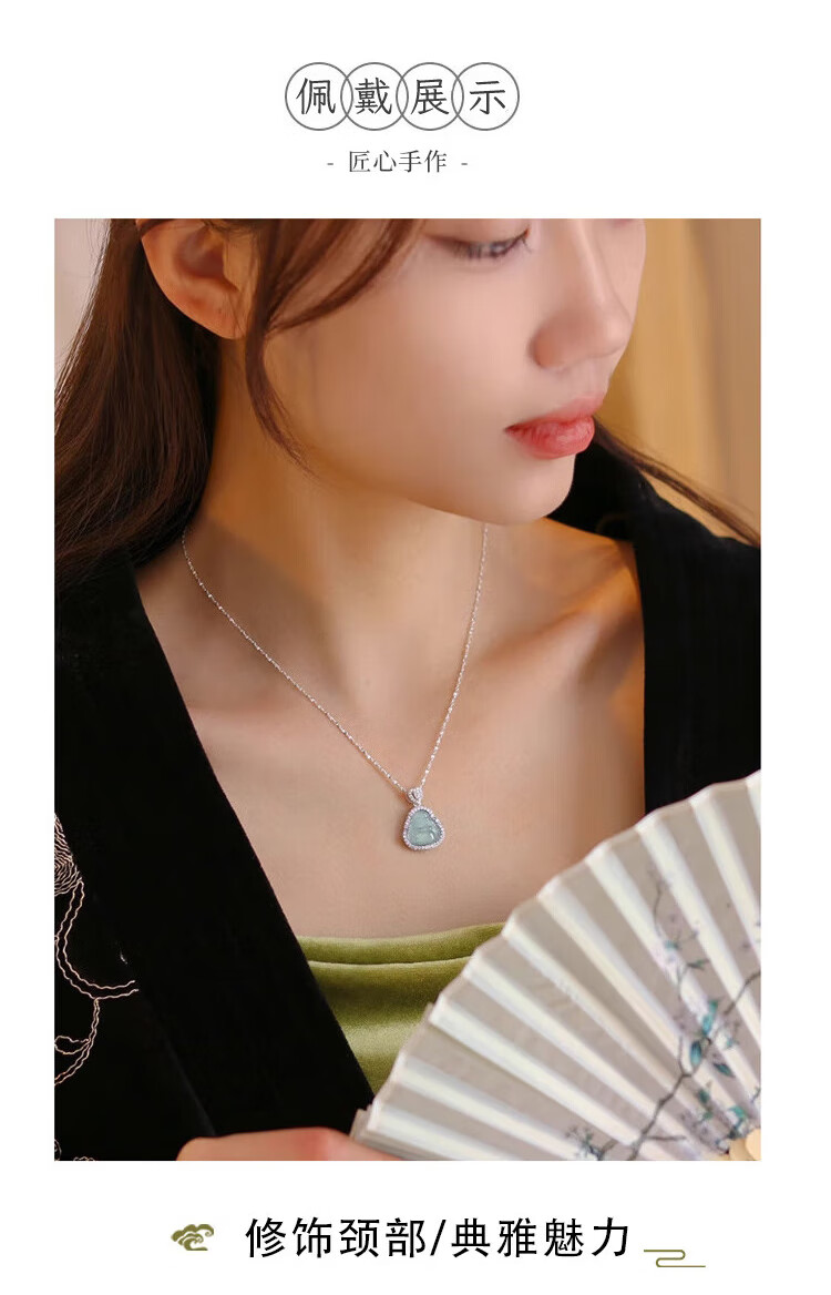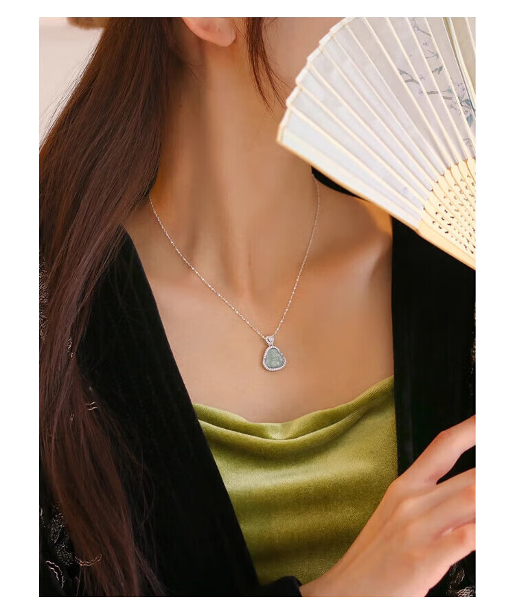Jianlu Jade A-grade Maitreya Buddha Silver Necklace Women's Jade High-end Pendant Jewelry Birthday Gift for Mom and Girlfriend