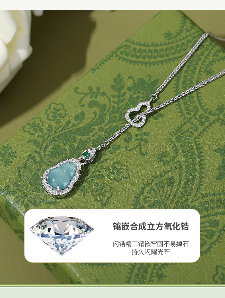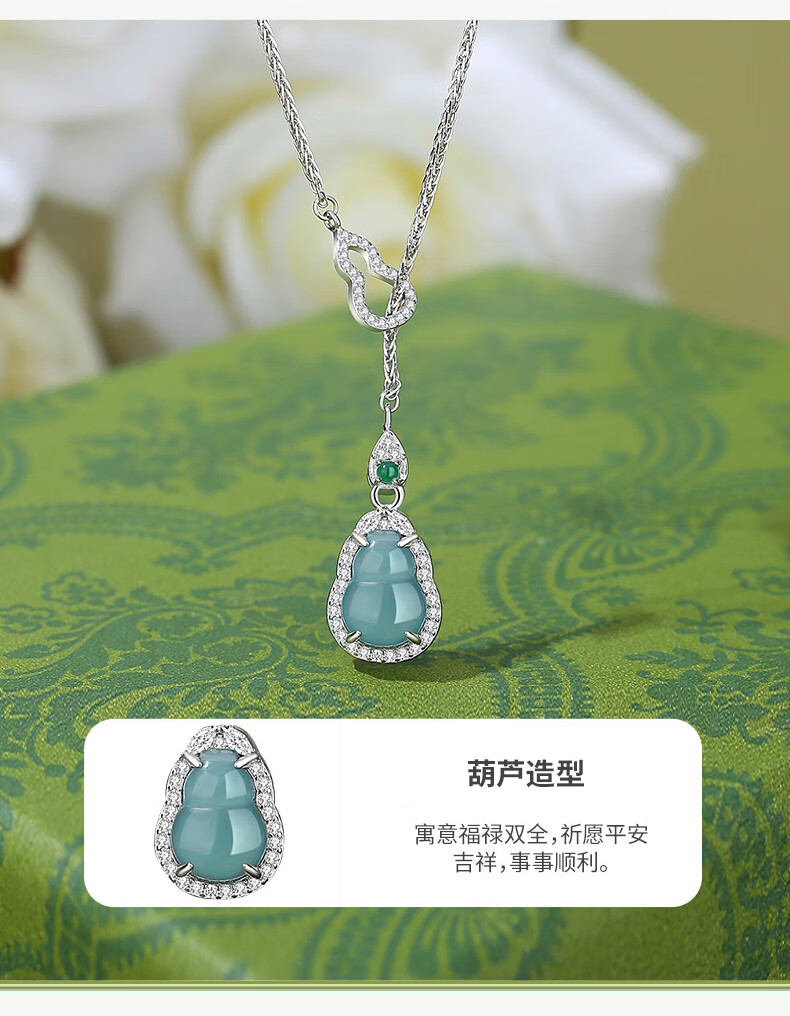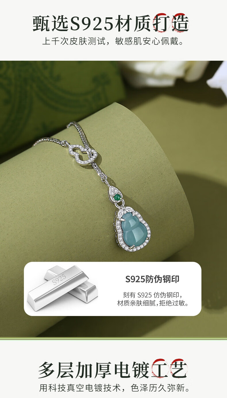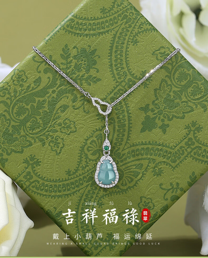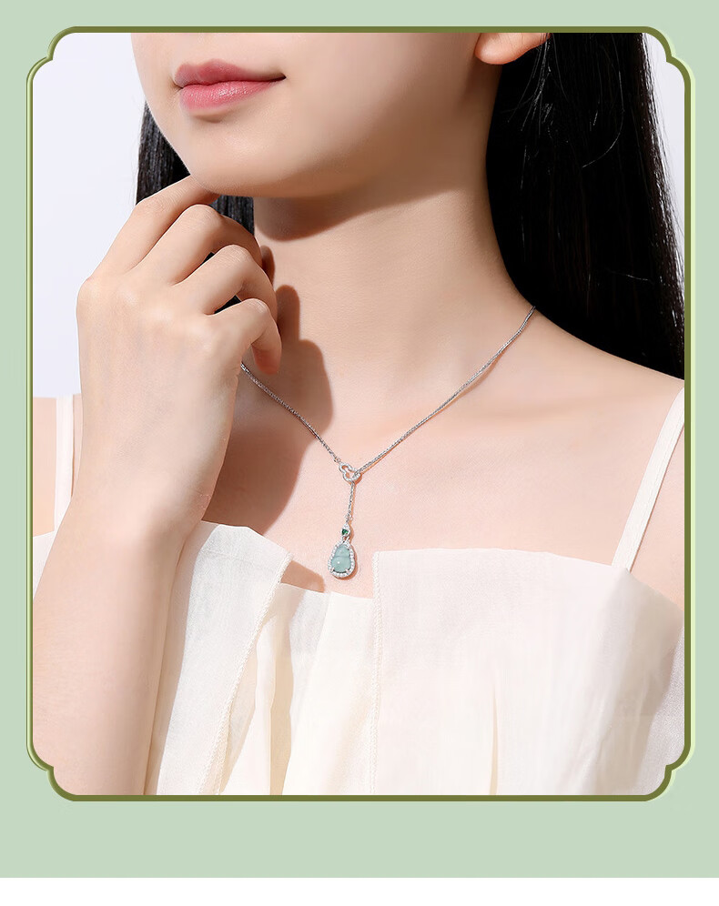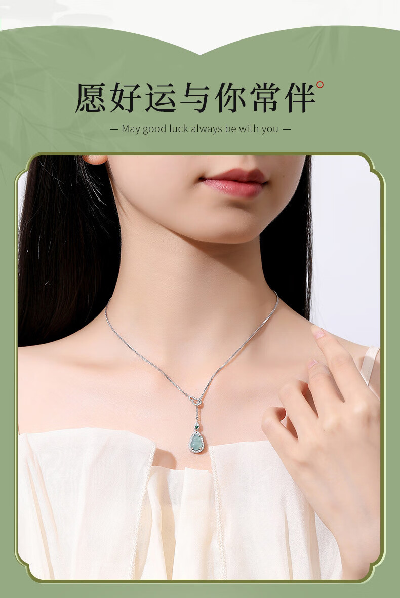 Jianlu Jade A-grade four-leaf clover silver necklace ladies jade high-end pendant jewelry birthday gift for girlfriend and best friend