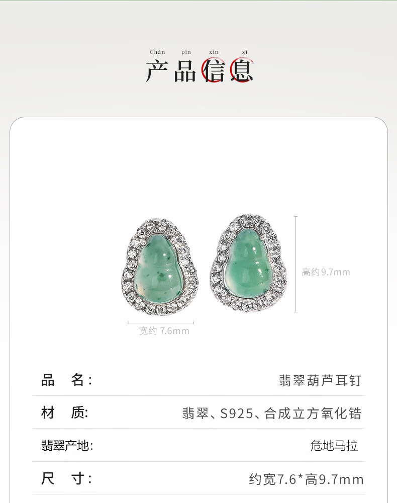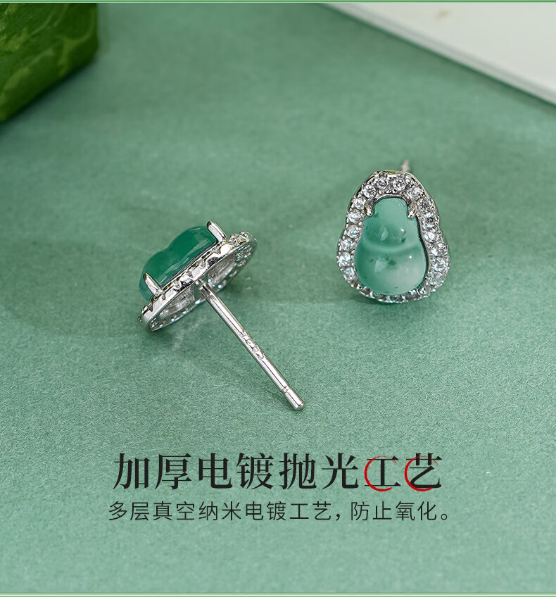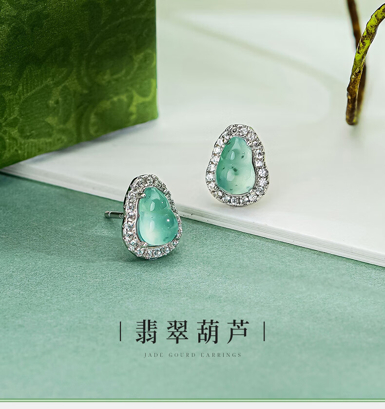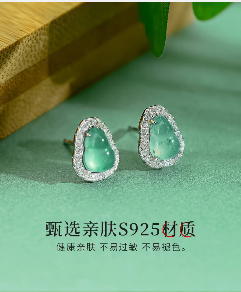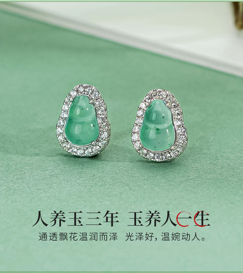 Jianlu natural jade silver earrings for women, high-grade jade earrings, jewelry, mother's birthday gift for wife and mother