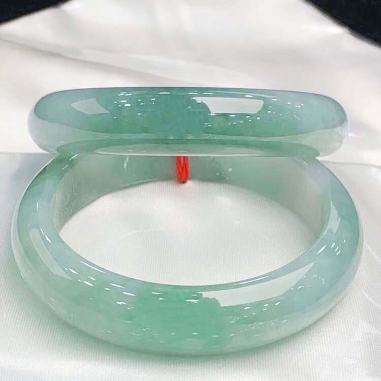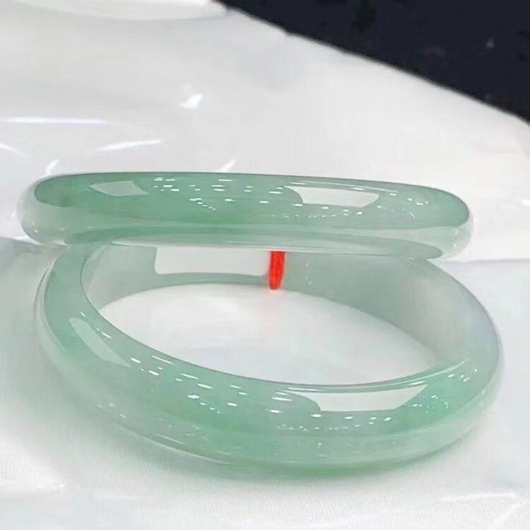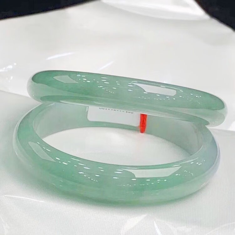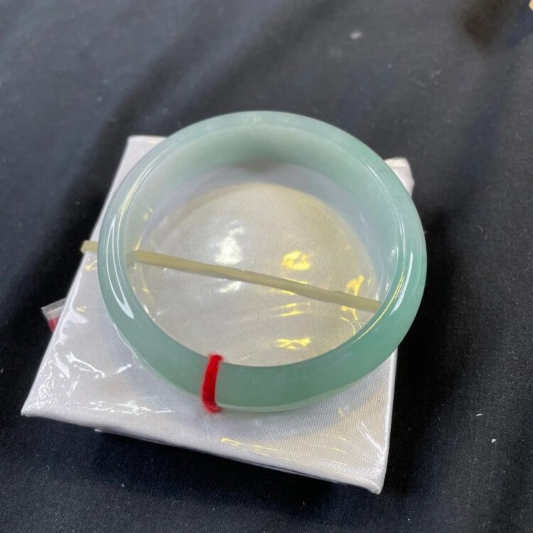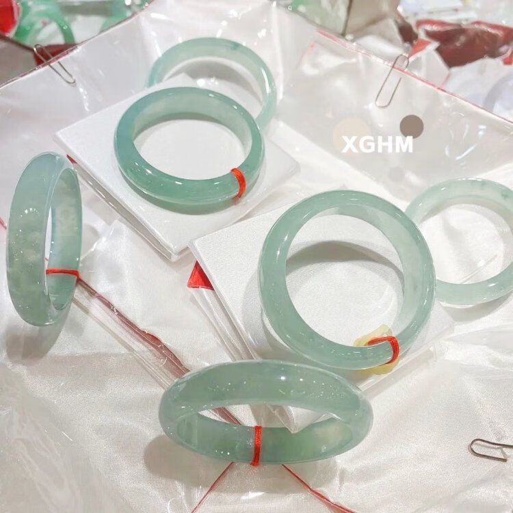 SF air transport Myanmar real jade bracelet processed jade bracelet light green floating flowers mother girlfriend Valentine's Day gift 64mm ring