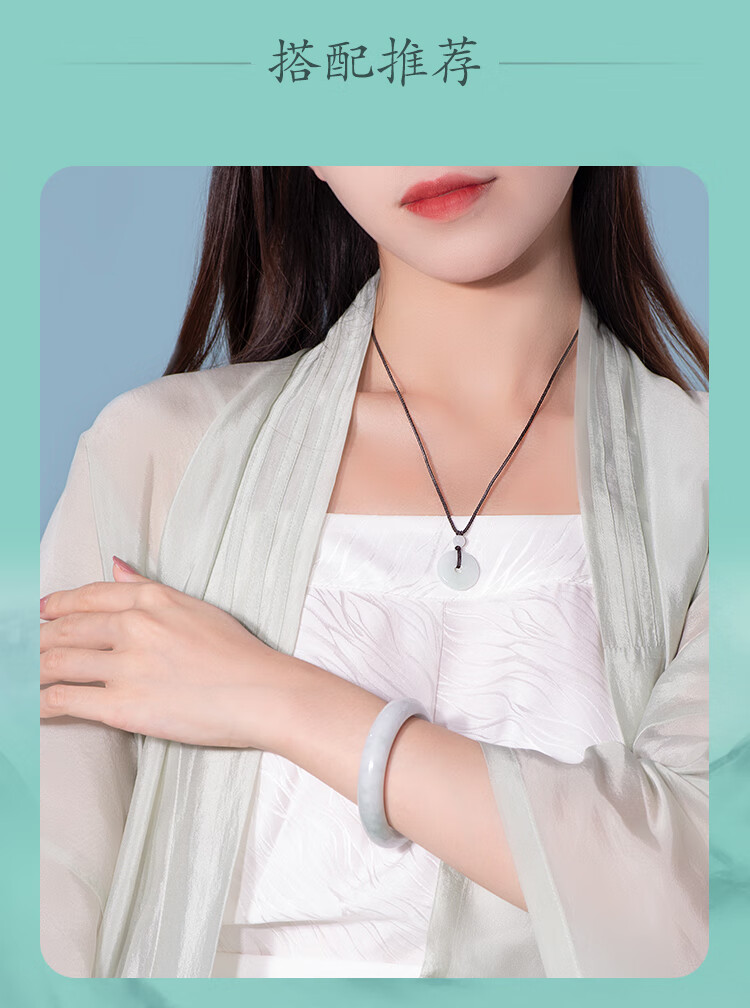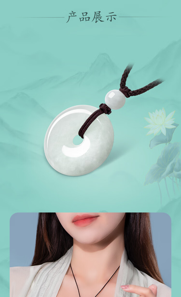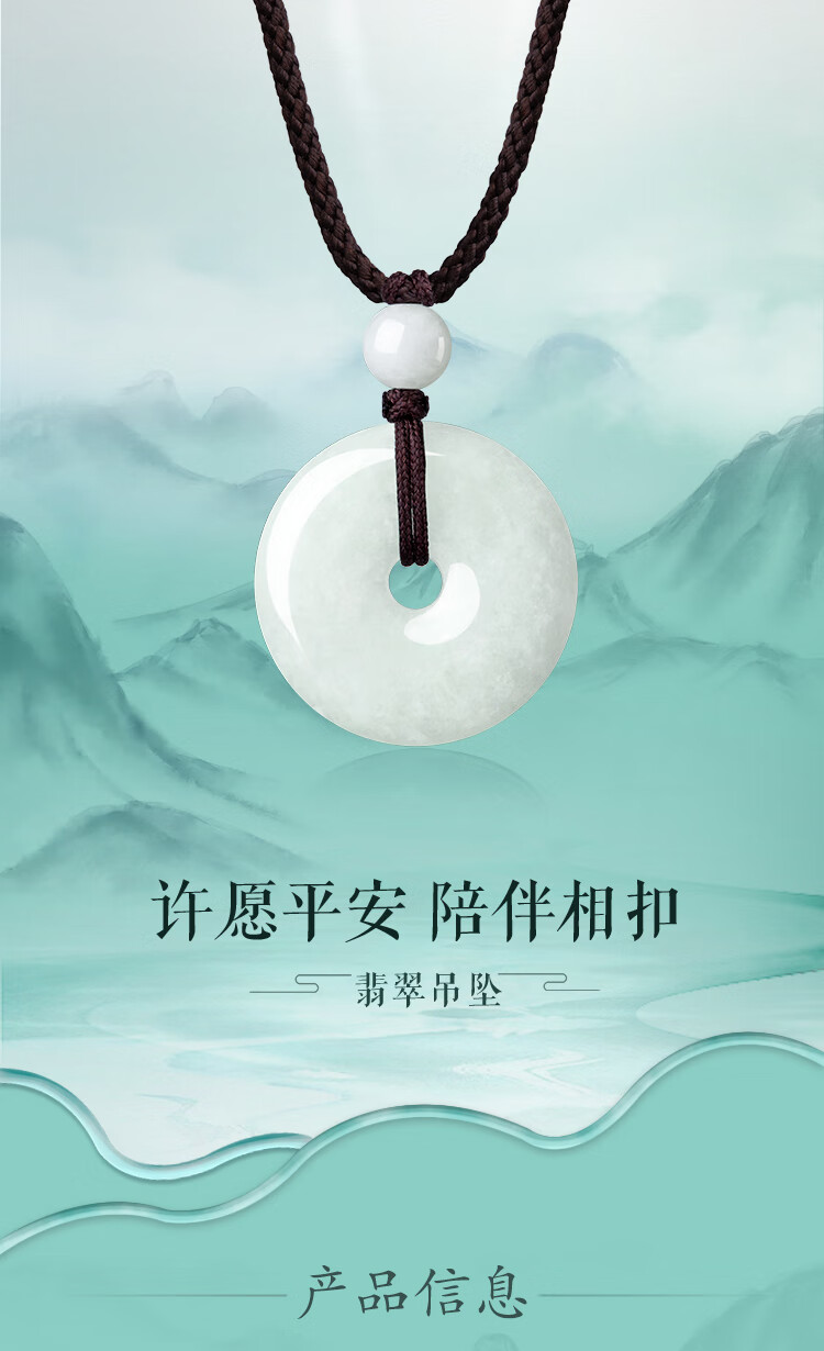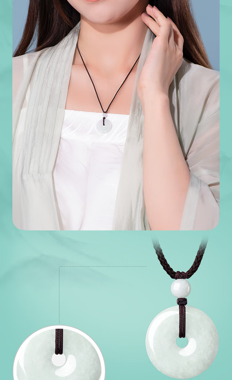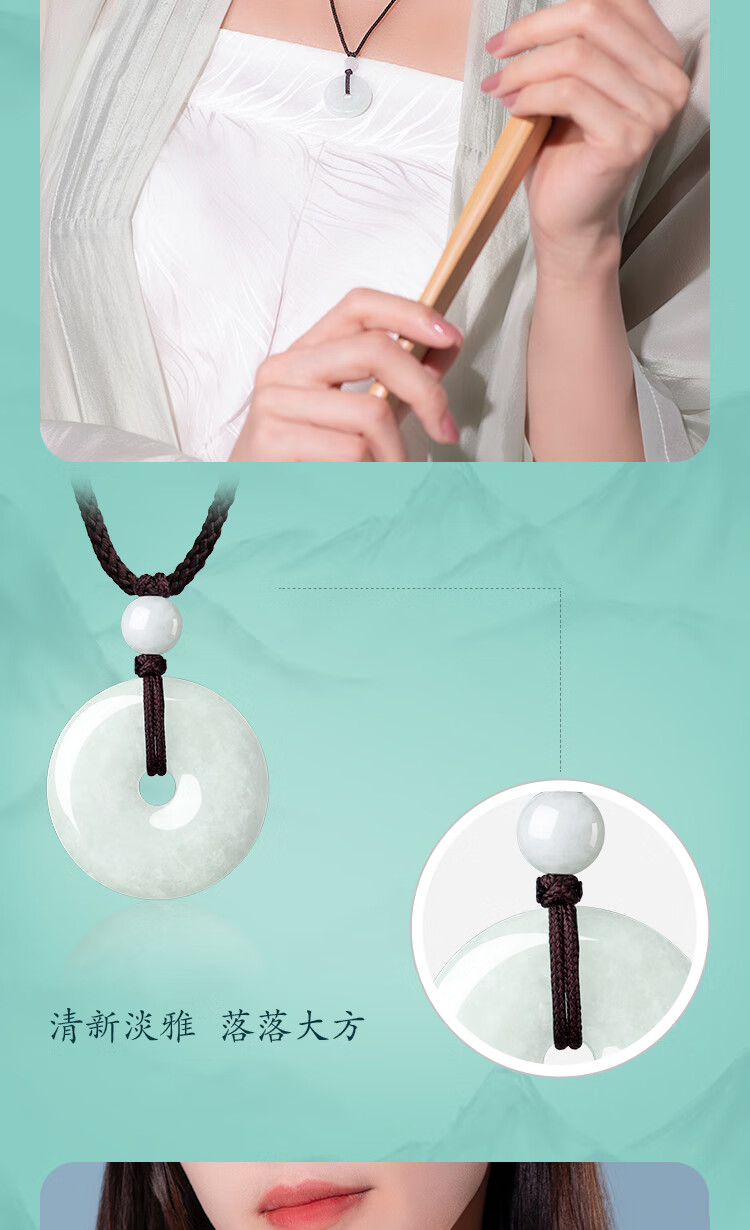 Chow Tai Fook Jade Peace Buckle Jade Pendant Necklace Pendant with Beads and Thin Brown Rope Women's Birthday Gift K65131 K65131
