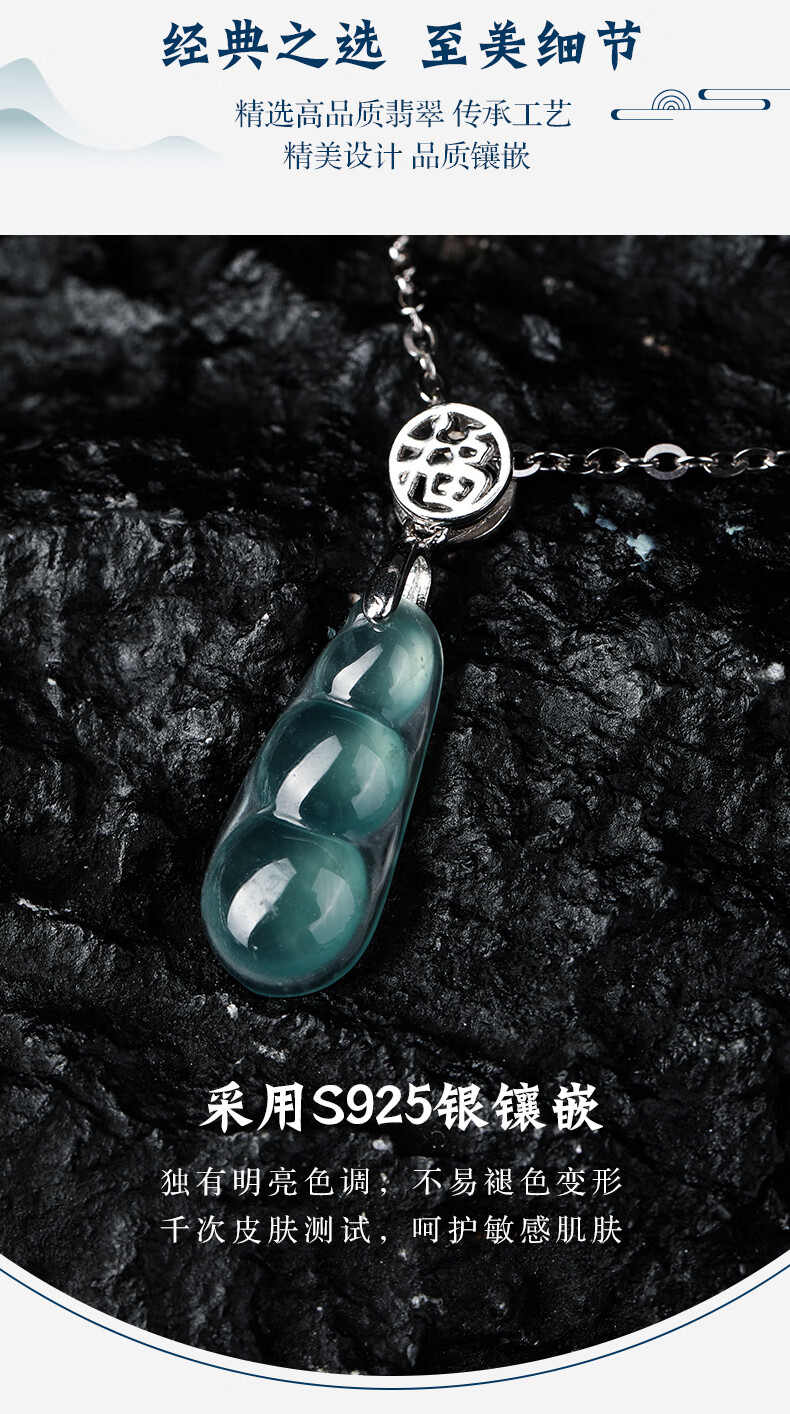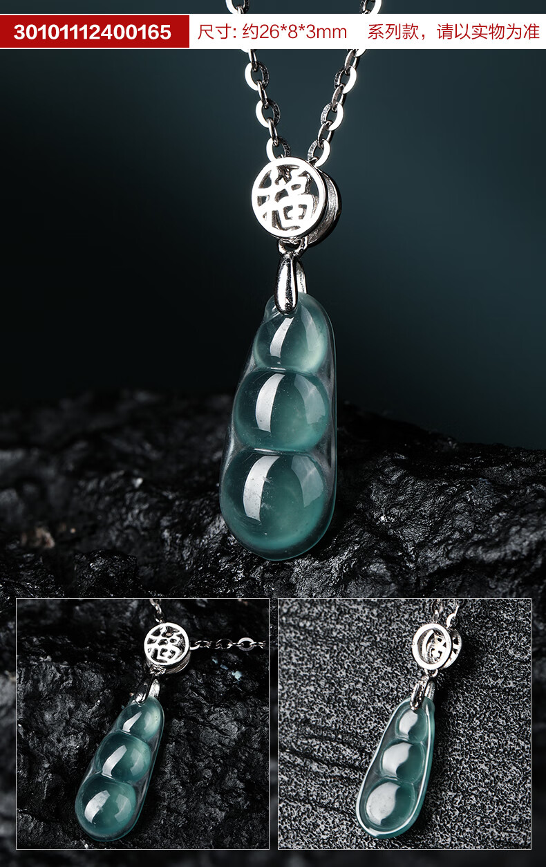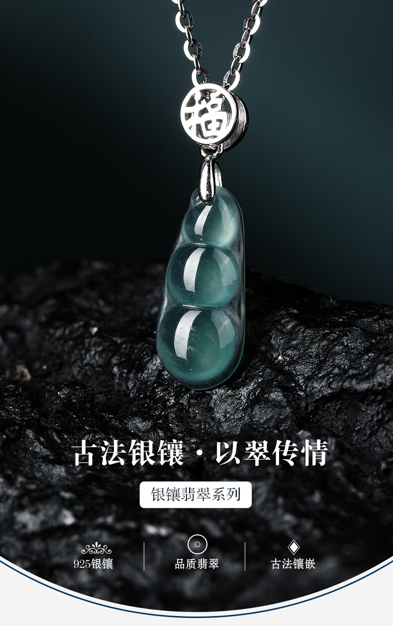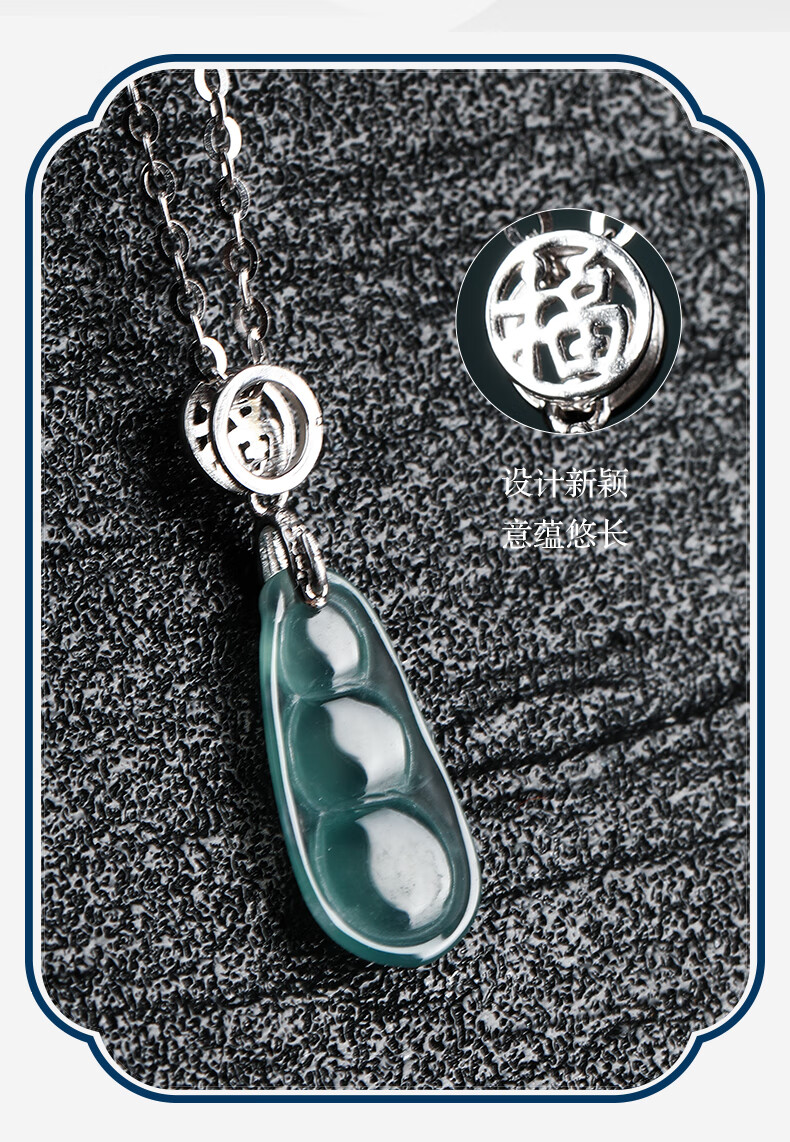 Colorful Yunnan Jadeite Pendant S925 Silver Inlaid with Blue Water Lucky Bean Women's Jade Pendant Necklace Pendant for Girlfriend and Mom as a Holiday Gift Blue Water Lucky Bean 0165
