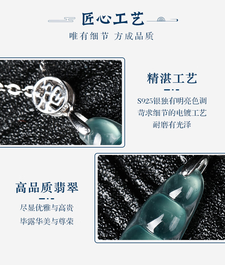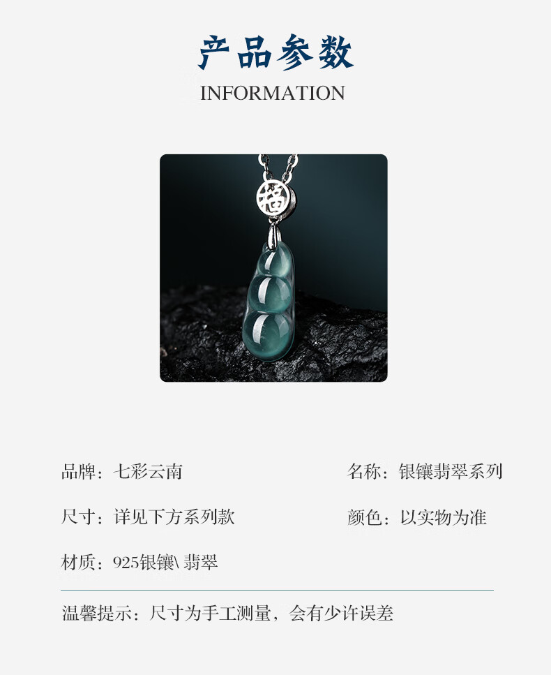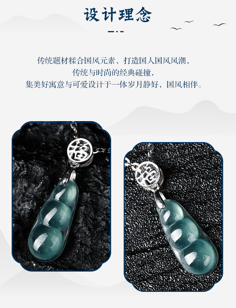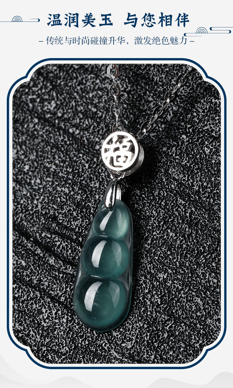Colorful Yunnan Jadeite Pendant S925 Silver Inlaid with Blue Water Lucky Bean Women's Jade Pendant Necklace Pendant for Girlfriend and Mom as a Holiday Gift Blue Water Lucky Bean 0165