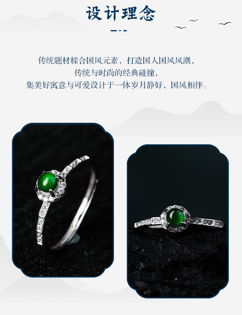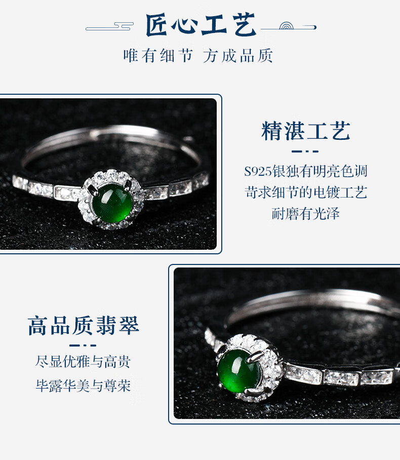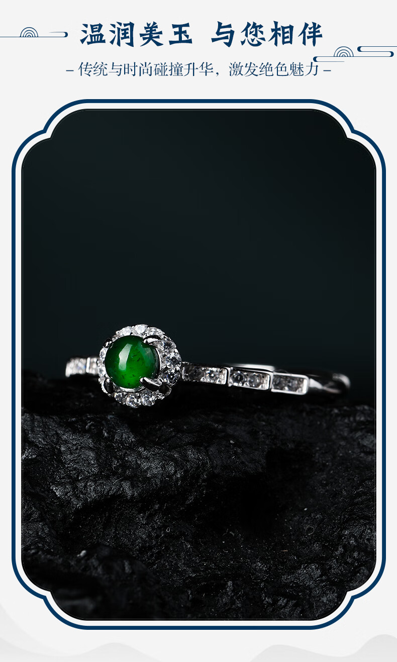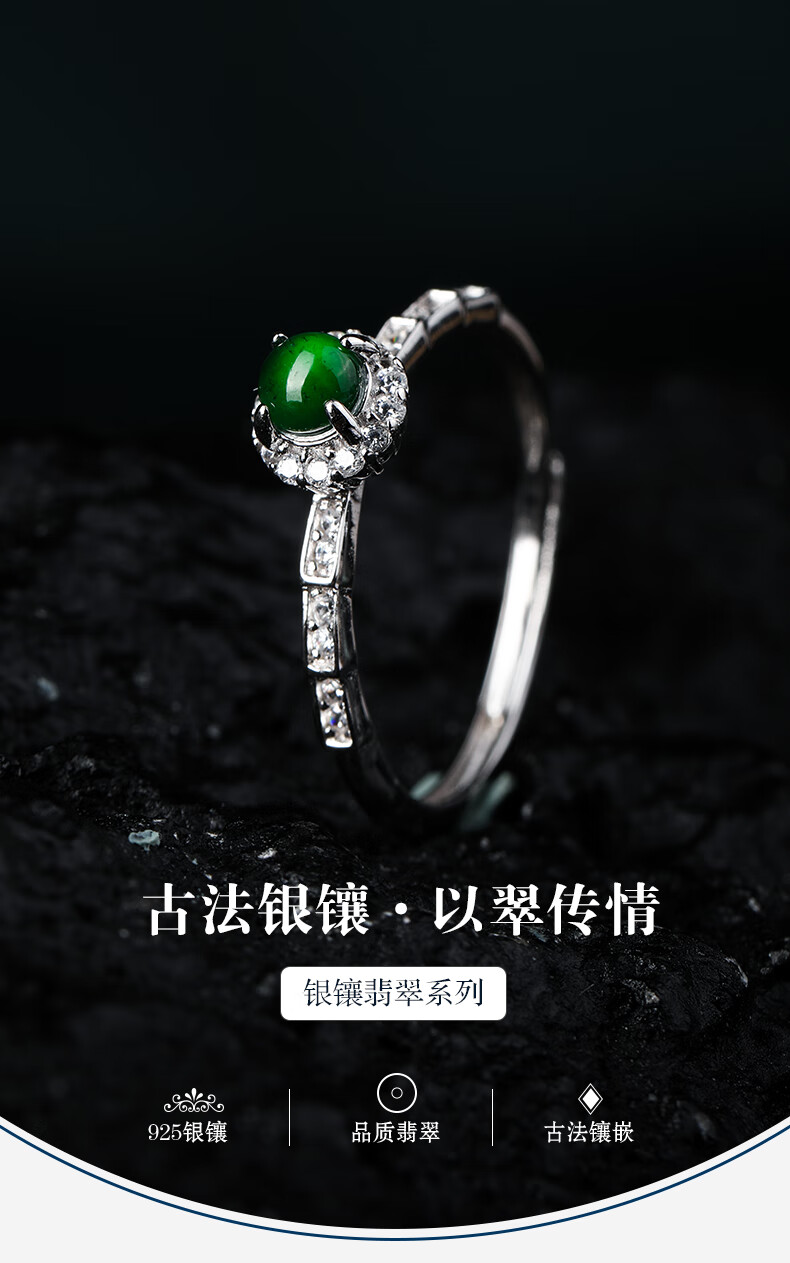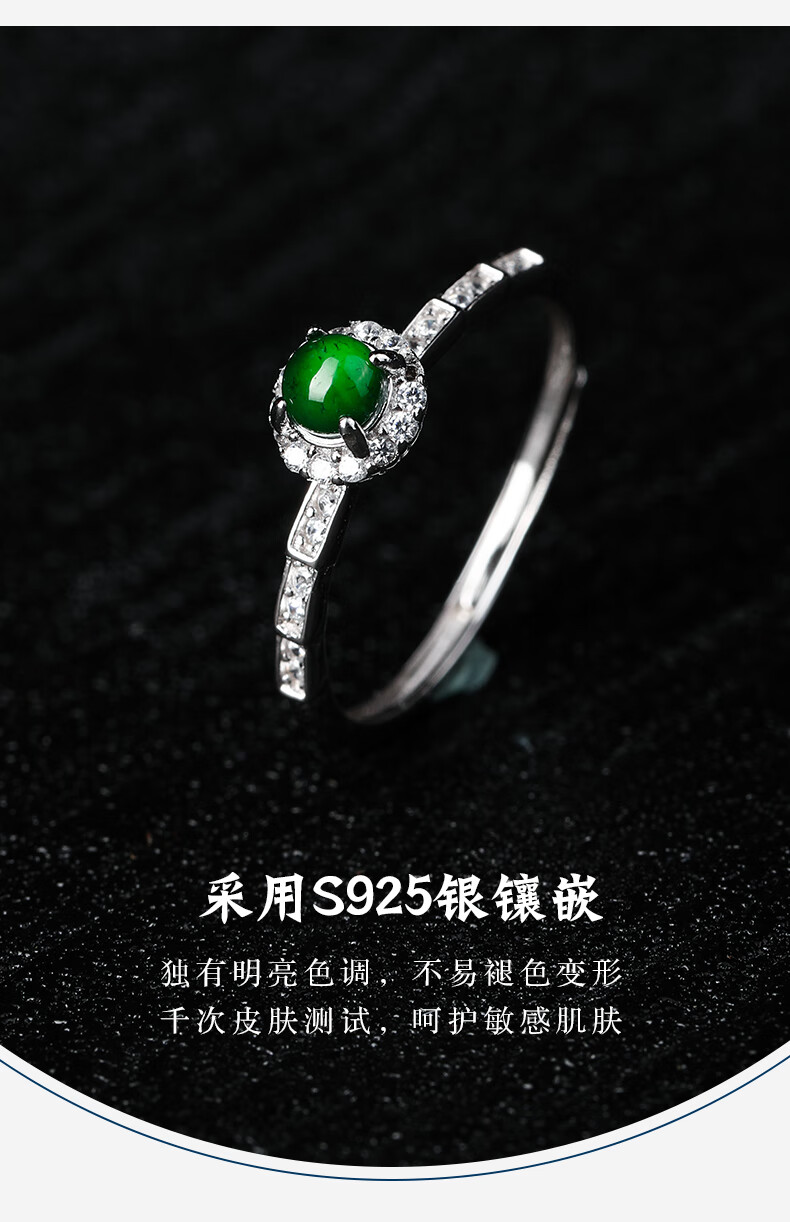 Colorful Yunnan Jade A Yang Green Ring S925 Silver Inlaid Ring Mouth Women's Model for Girlfriend, Mother's Birthday and Holiday Gift Jade Ring