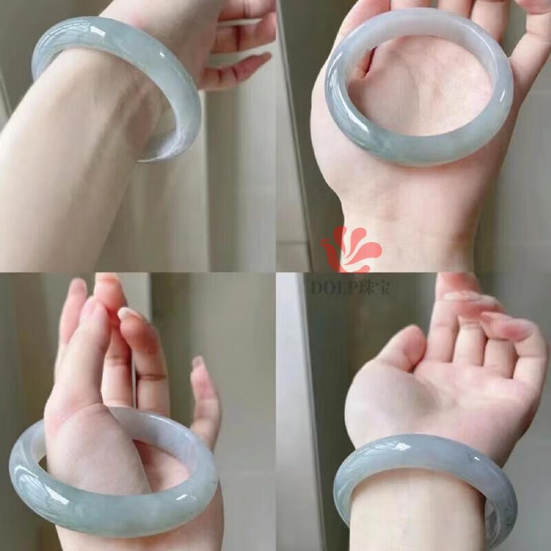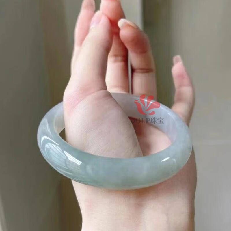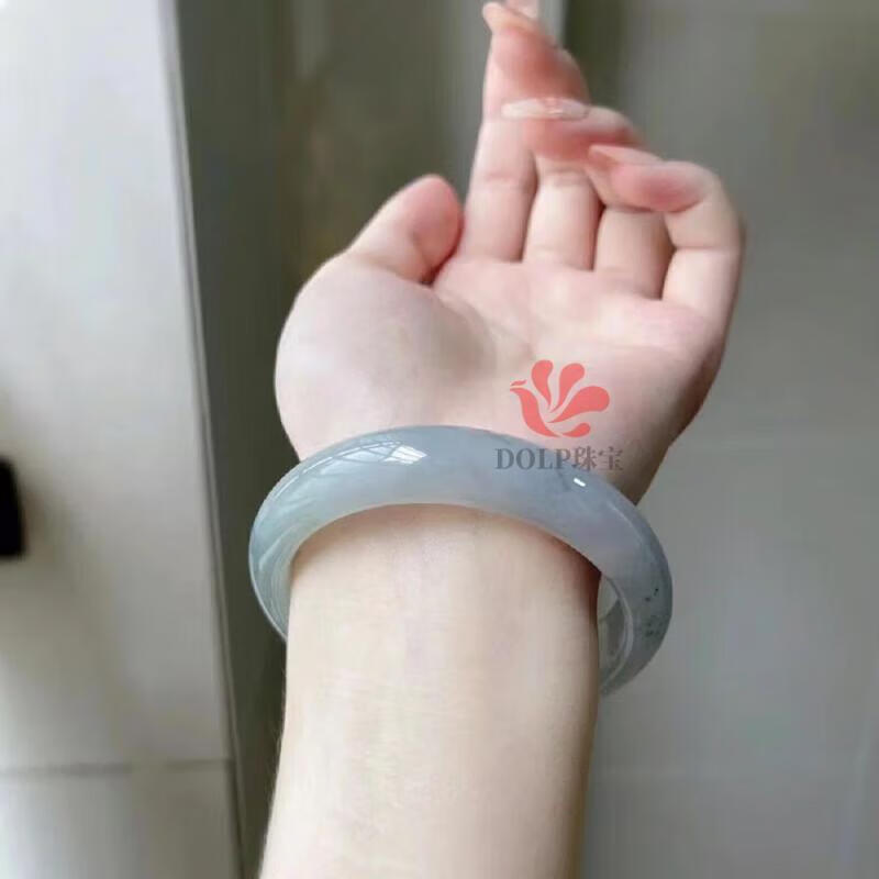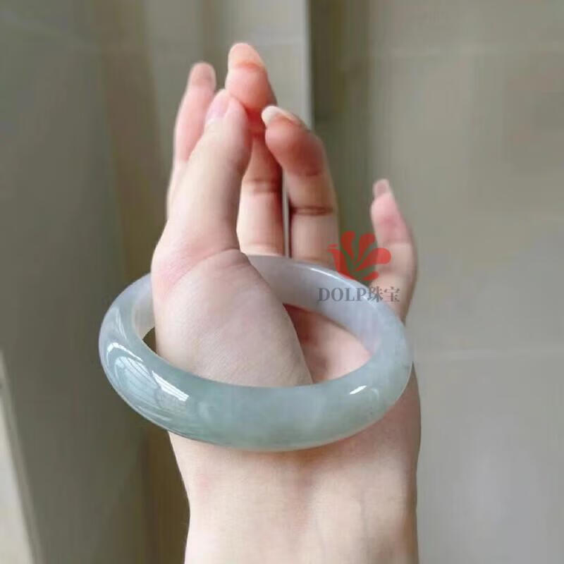 DOLP Ice Jade Bracelet Women's Laokeng Burmese Ice Jade Bracelet Women's Treatment Positive Circle Oil Green Floating Flower Jade Bracelet Ring Mouth 61-62mm