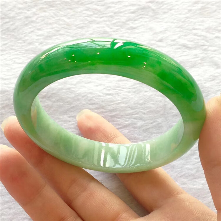 Ice and glutinous sun green jade bracelet Laokeng floating green square circle ice seed green imperial concubine gift female jade bracelet No. 53