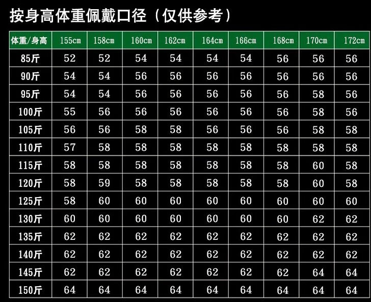 China (cm) 165 / 88-90 170 / 96-98 175 / 108-110 180 / 118-122 185 / 126-130