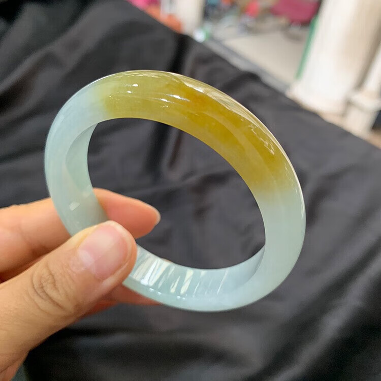 FALRIA Burmese jadeite bracelet ice type genuine ice waxy type yellow jade floating flower full circle high ice jade bracelet jade bracelet yellow jade 59mm