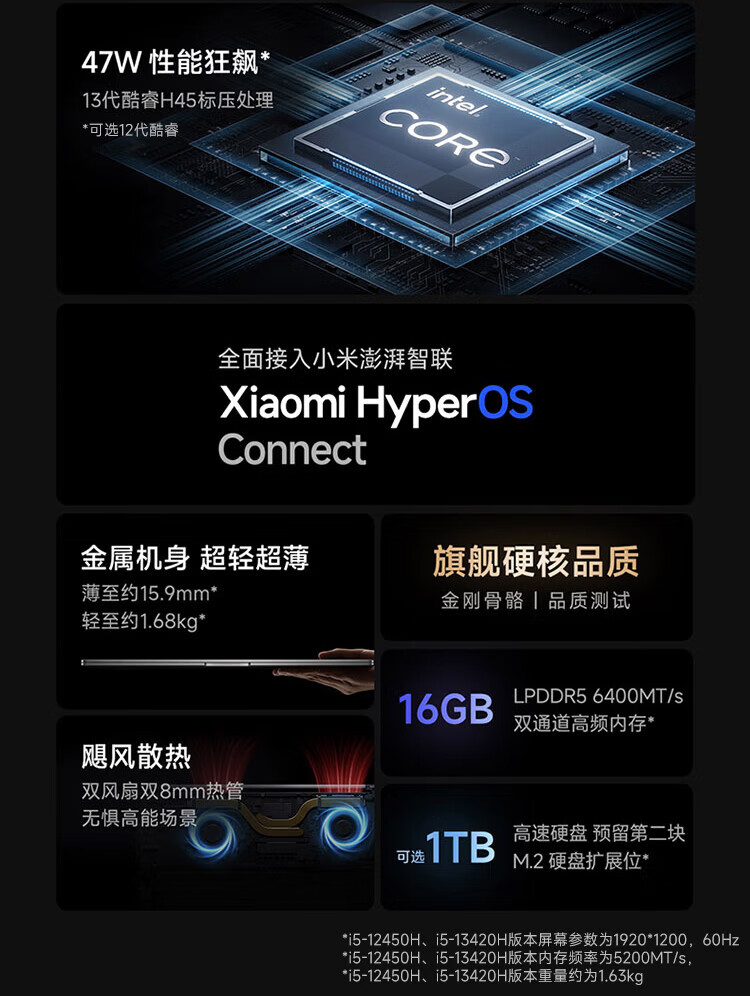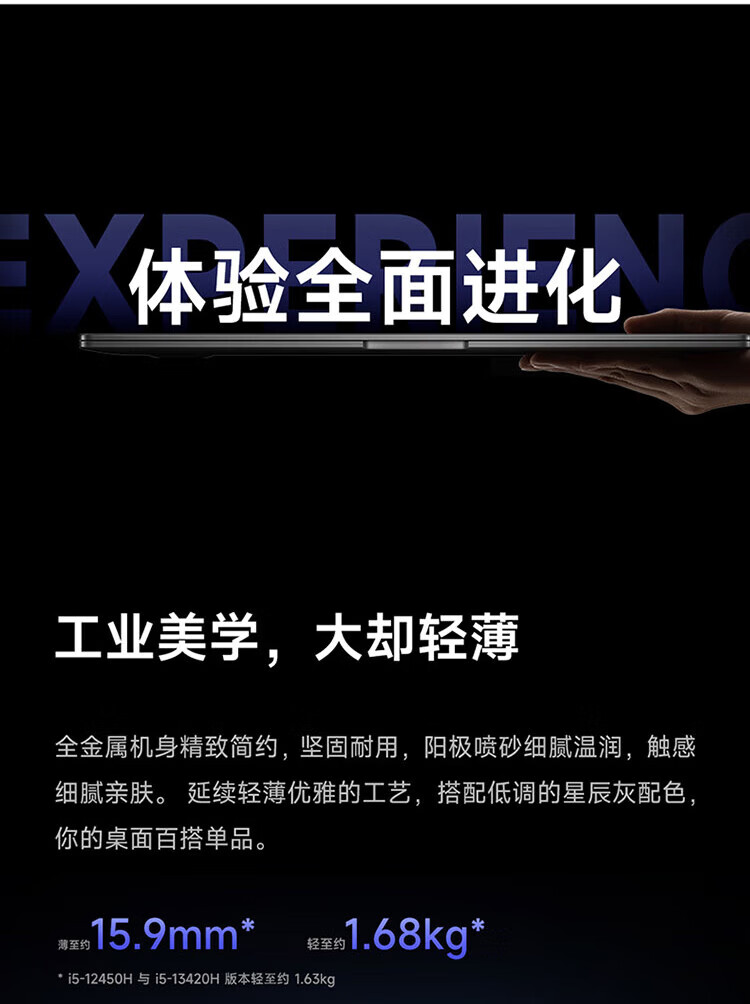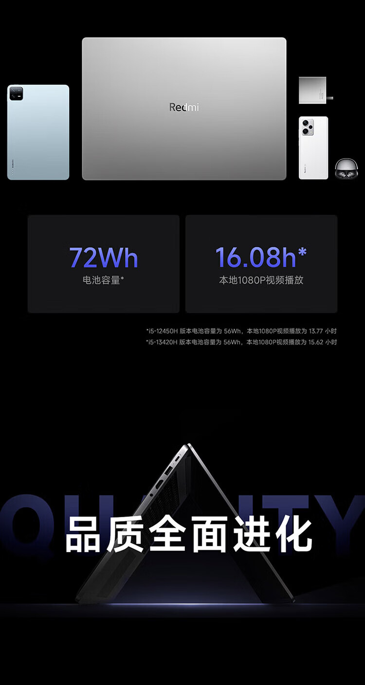 Xiaomi (MI) RedmiBook 16 Redmi laptop large screen flagship Xiaomi ThePaper Zhilian performance fashion thin and light student Xiaomi notebook i5-12450H/16G/512G/Office