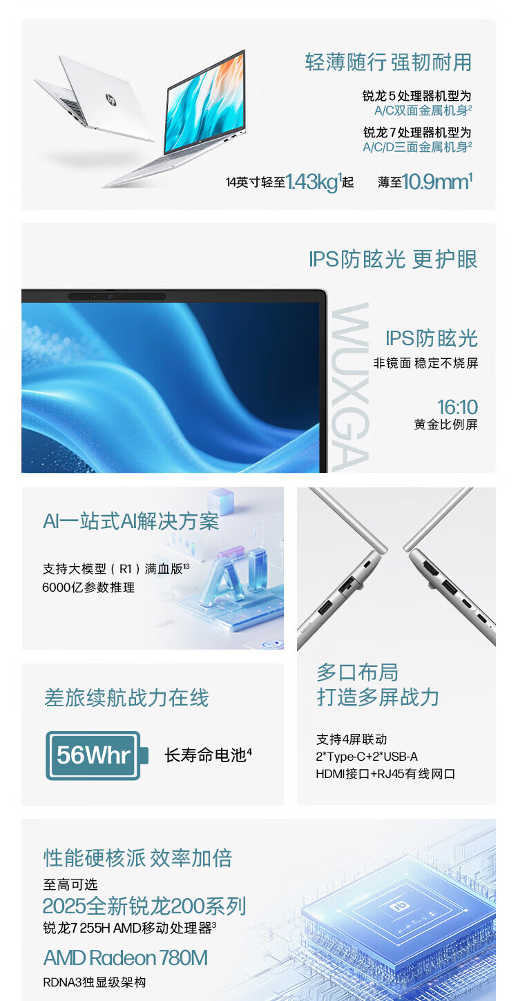 HP vs. 66 seventh/eighth generation Ryzen version thin and light laptop Probook business office college student online class game notebook customization vs. 66 eighth generation 16 Ryzen 7 250H 2.5K screen for fun 32G 1T solid state - long battery life experience