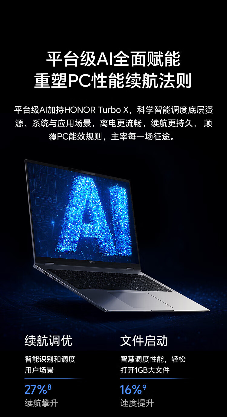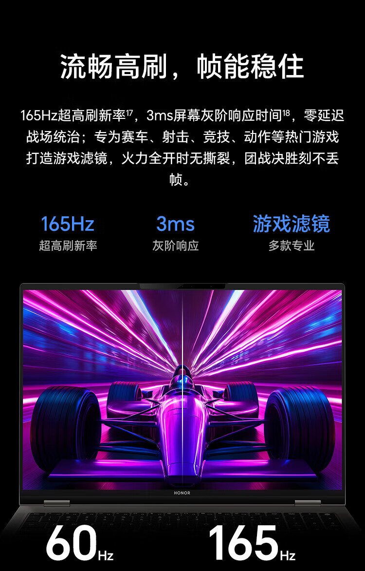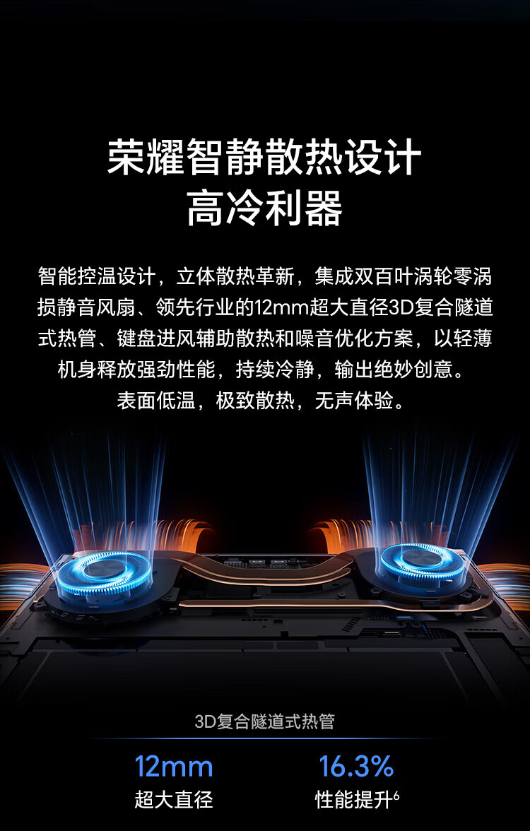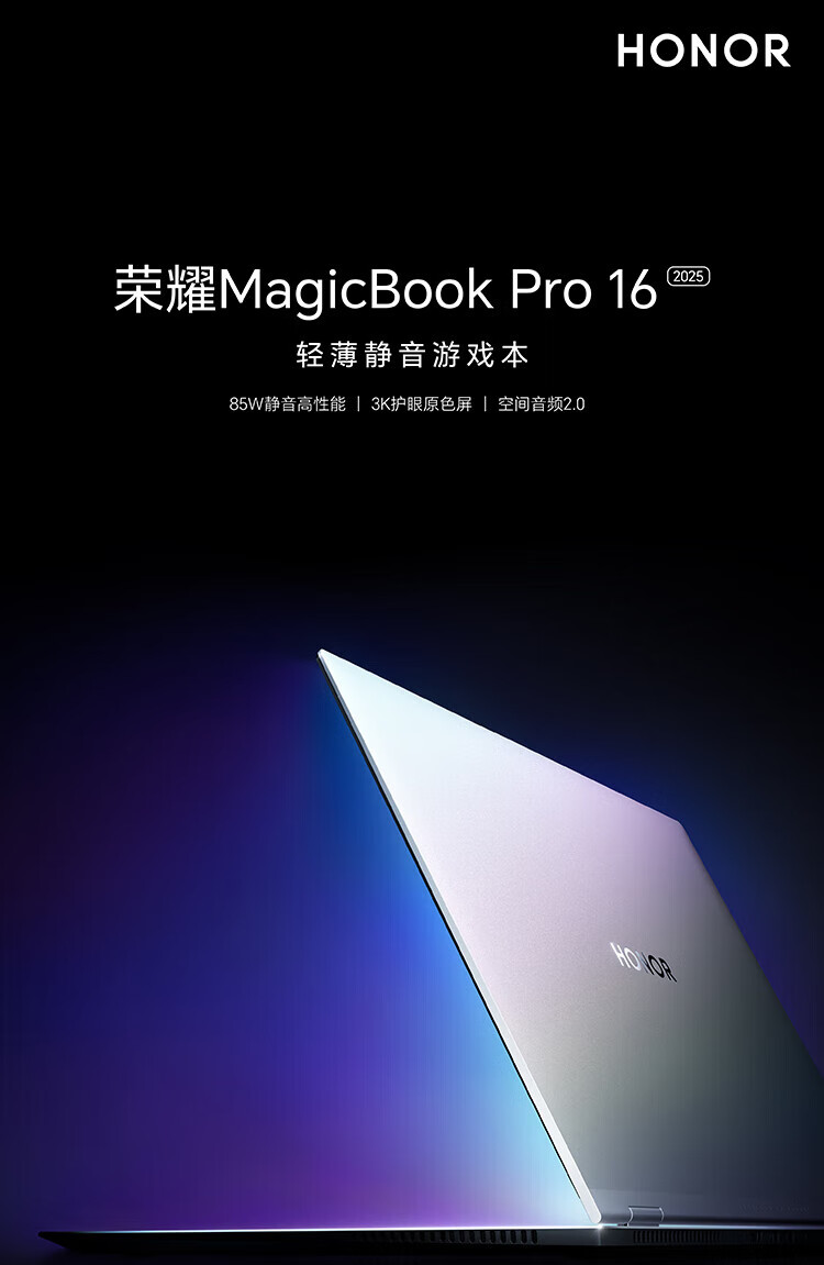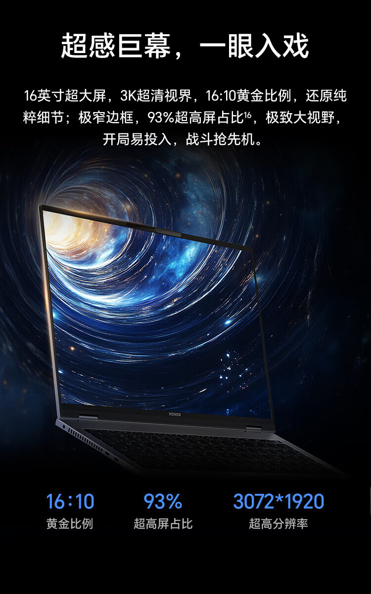 荣耀MagicBook Pro16 【政府补贴】AI轻薄高性能办公学习游戏设计笔记本电脑 165Hz高刷3K电竞屏 U5 24G内存 1T固态 凝夜色