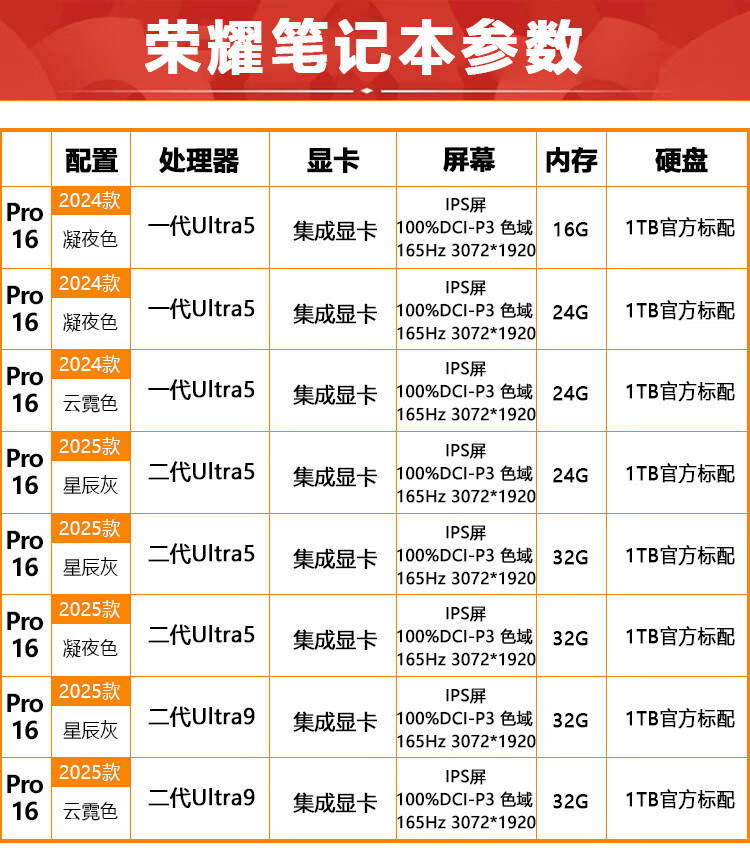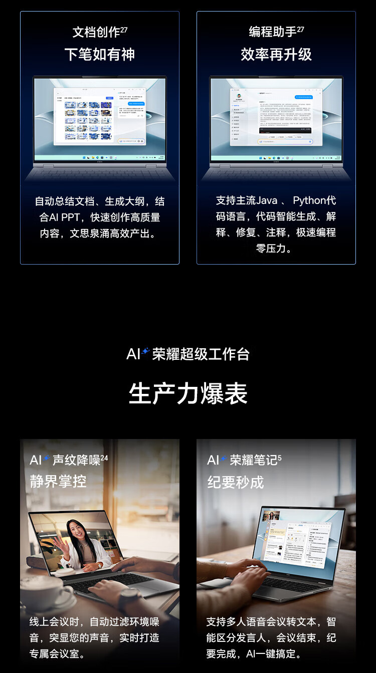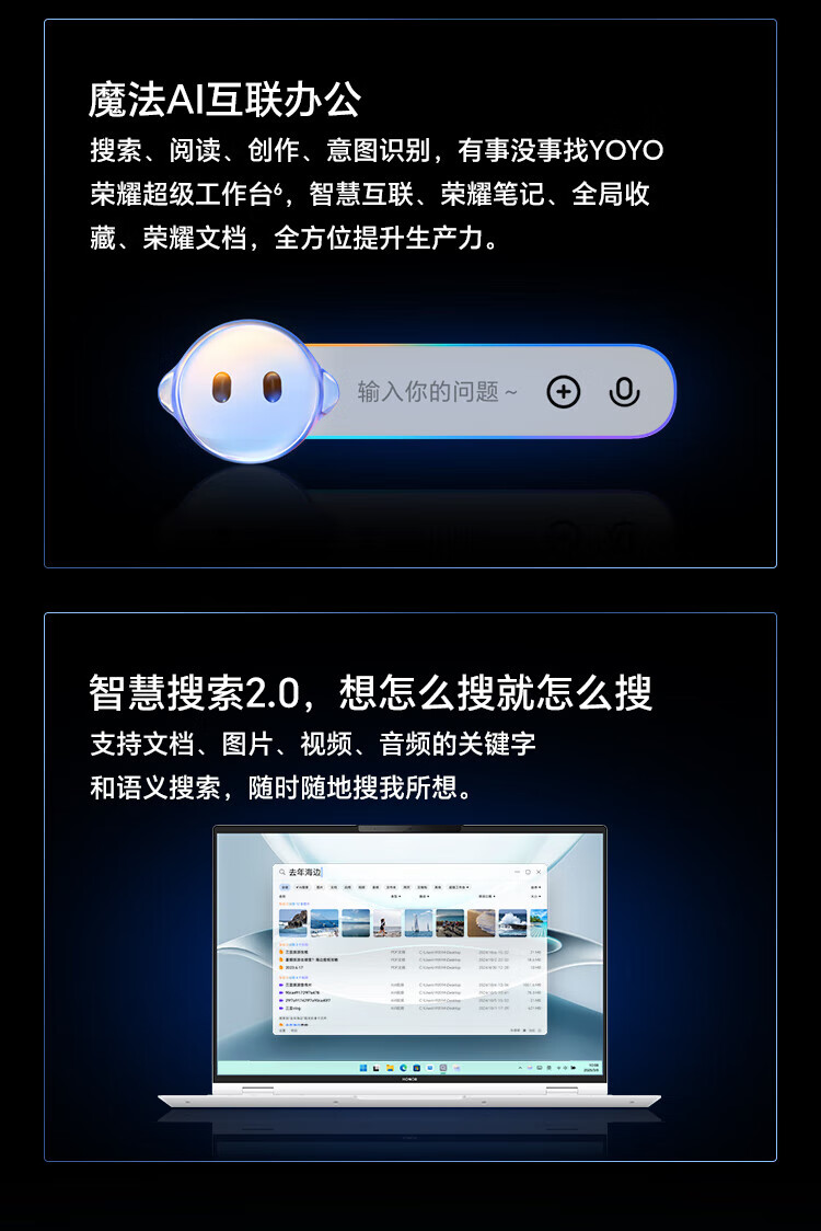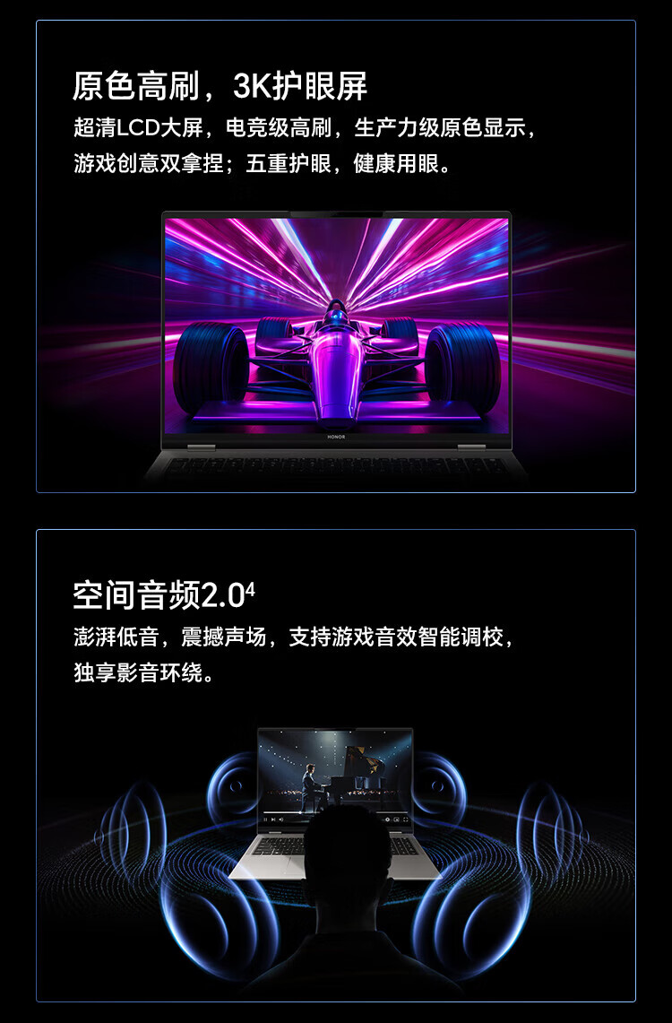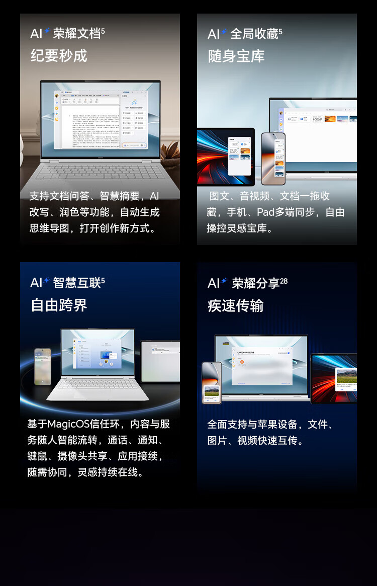 荣耀MagicBook Pro16 【政府补贴】AI轻薄高性能办公学习游戏设计笔记本电脑 165Hz高刷3K电竞屏 U5 24G内存 1T固态 凝夜色