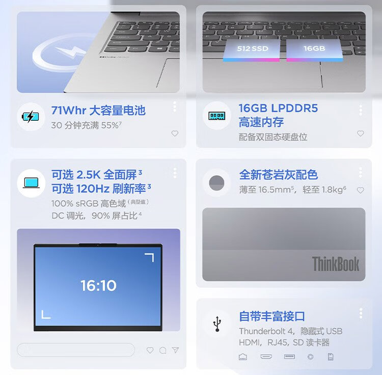 ThinkPad government subsidy 5% Lenovo ThinkBook16+AI all-in-one 2025 Intel Core processor 16-inch business thin and light laptop brand new 2nd generation Ultra5-225H 32G 1T