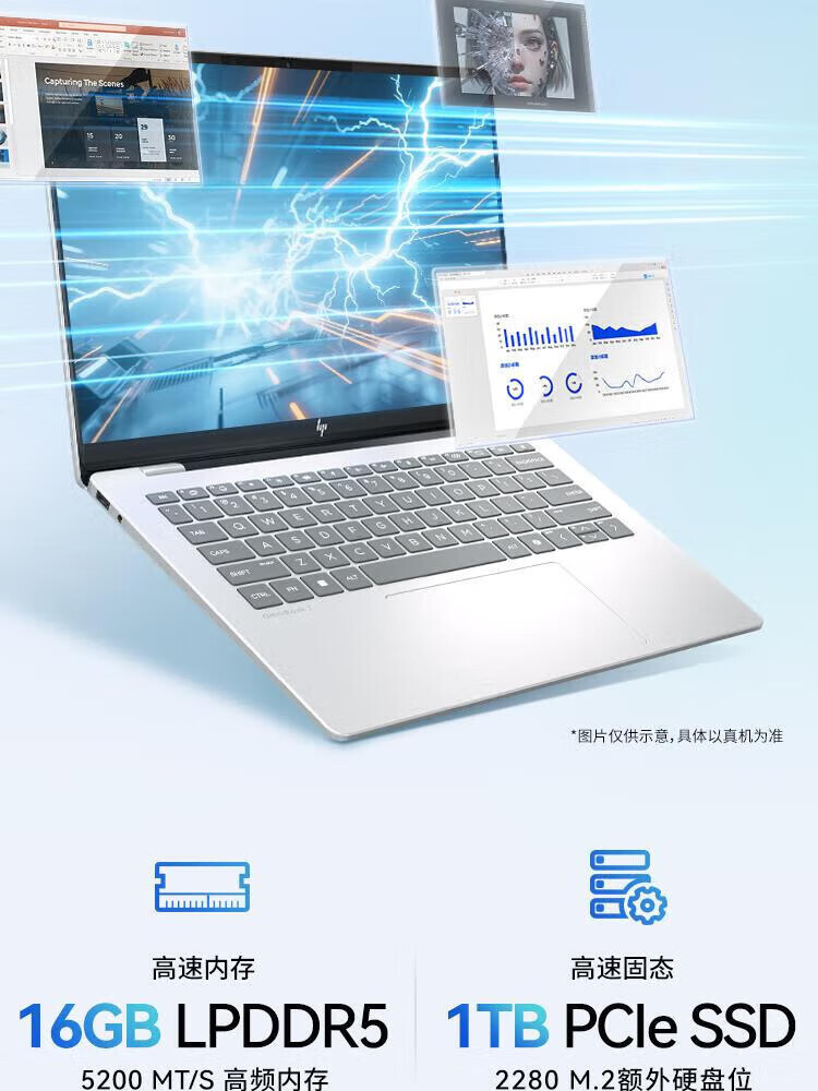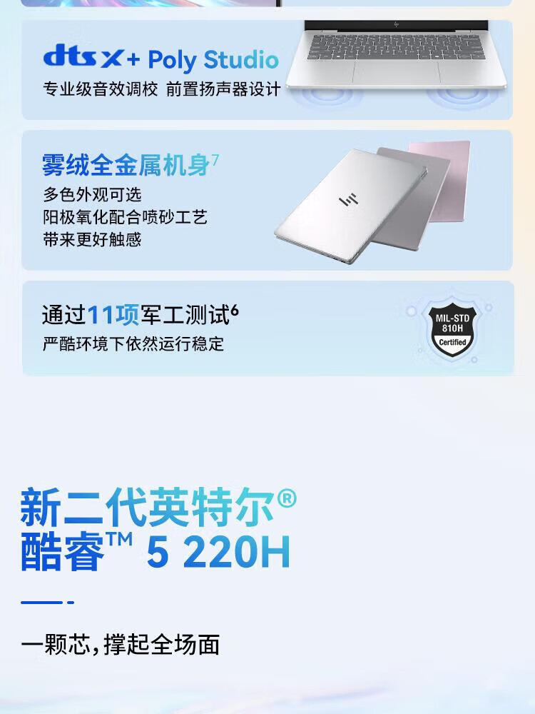HP Star Book Pro14/Star Book14 optionaler 14-Zoll-Core 2025, neues Flaggschiff für Studenten, dünner und leichter Business-Büro-Laptop, Core 5-220H 2.2K 16G 1 TB, Silber, offizieller Standard