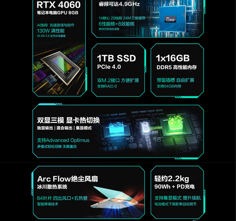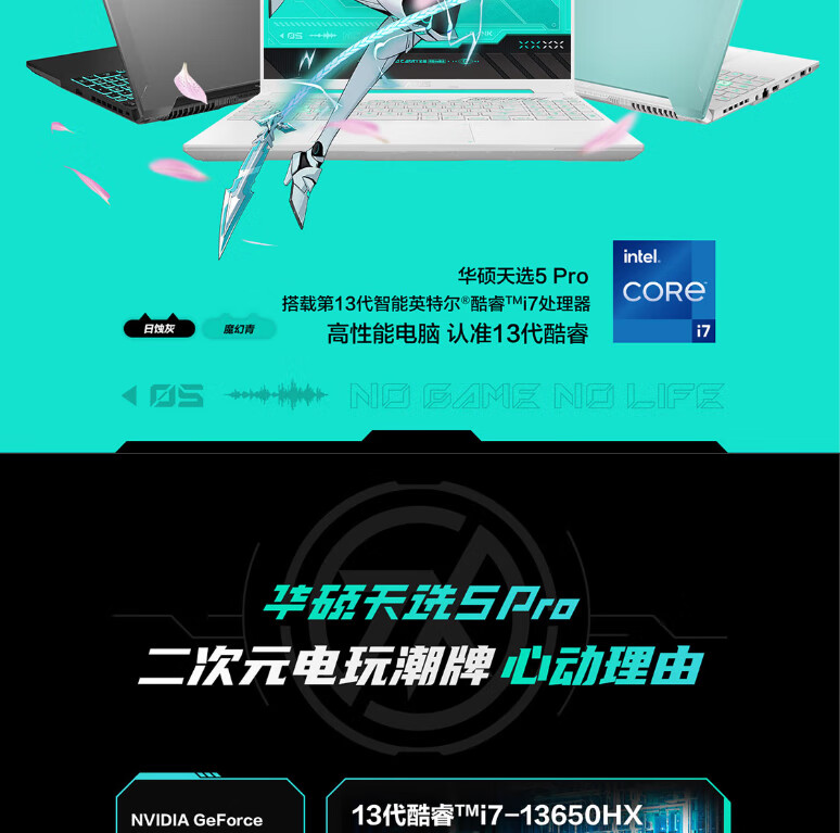 ASUS Tianxuan 5Pro Core ordinateur portable hautes performances version Ryzen conçu par les étudiants pour les jeux e-sports Magic Blue Core i7-13700H RTX4060-Graphiques indépendants 8G 16 Go de mémoire Disque SSD de 1 To