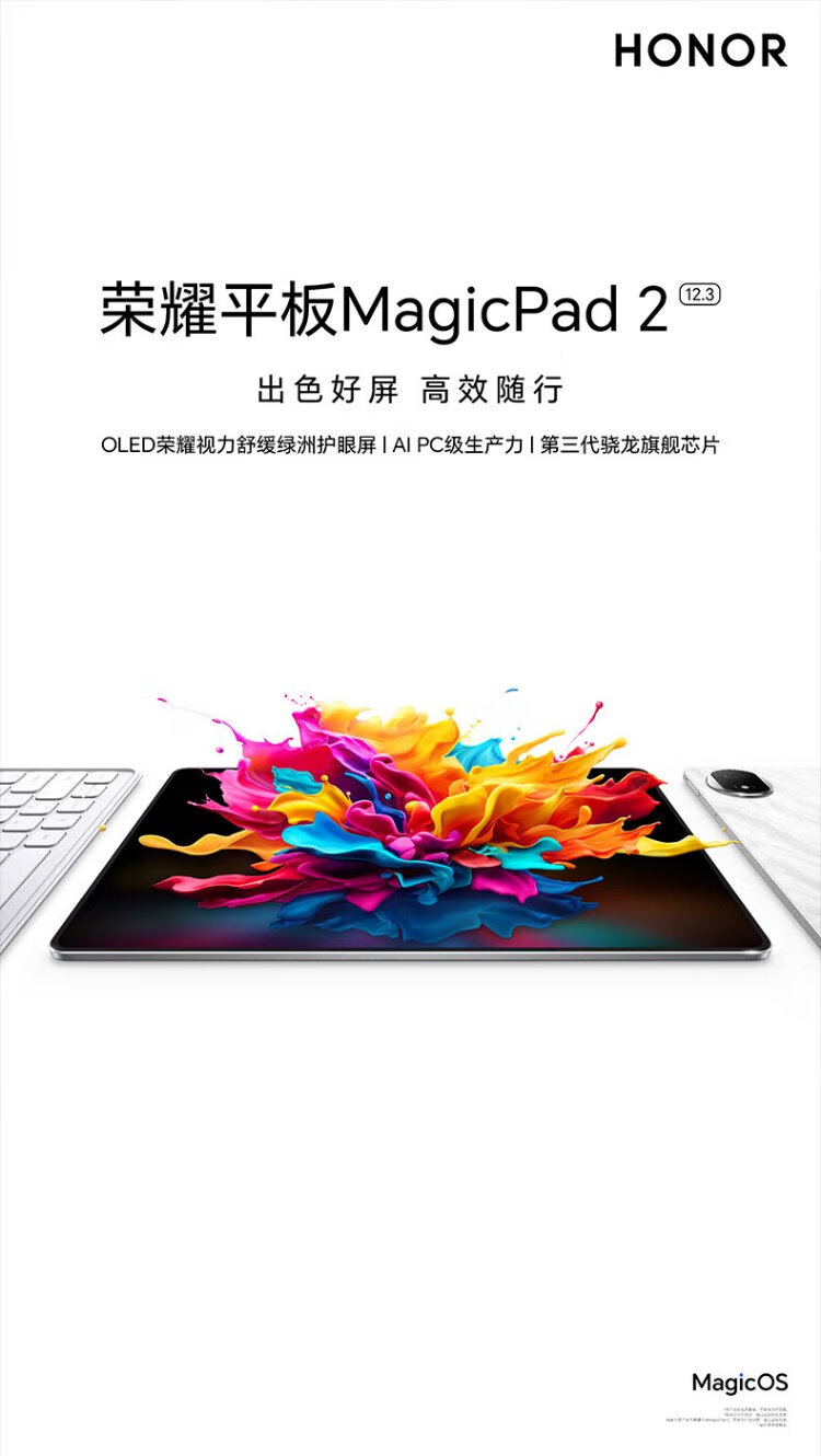荣耀平板MagicPad2【国家补贴】12.3英寸平板电脑 OLED护眼屏 手机互联互通 PC级生产力 16+1T月影白
