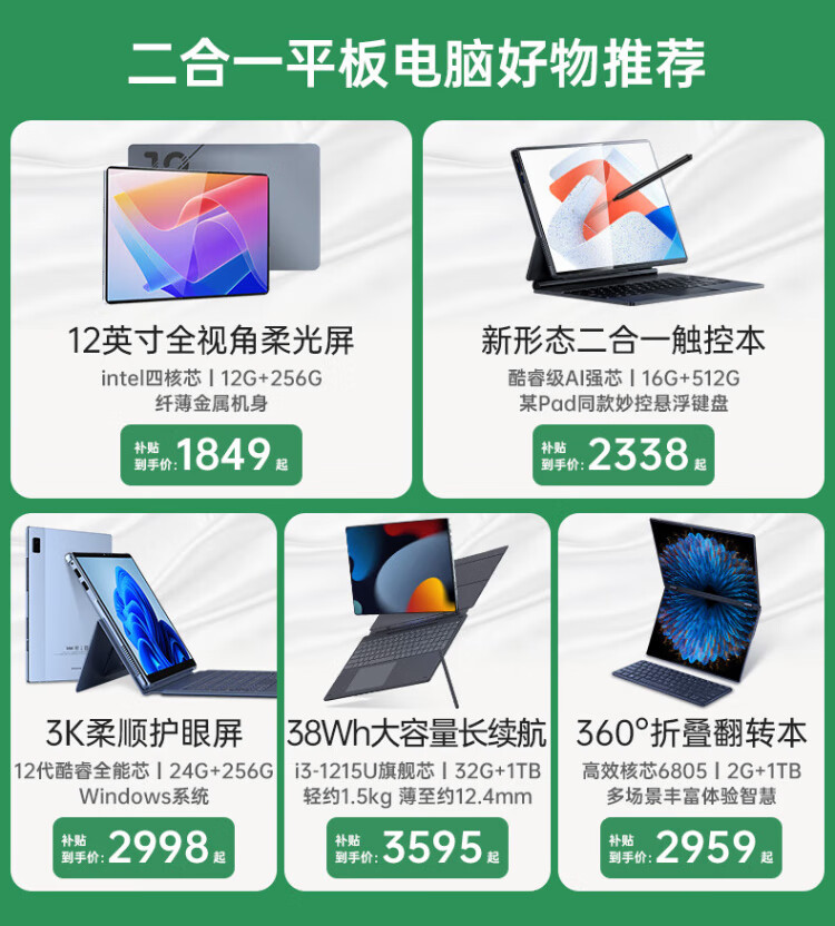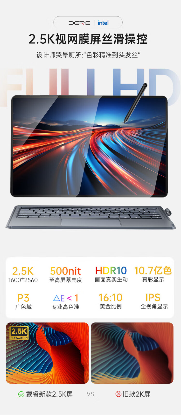戴睿(dere)政府补贴平板电脑windows系统二合一2.5K便携商务轻薄办公学生学习设计游戏wifi笔记本夜影黑