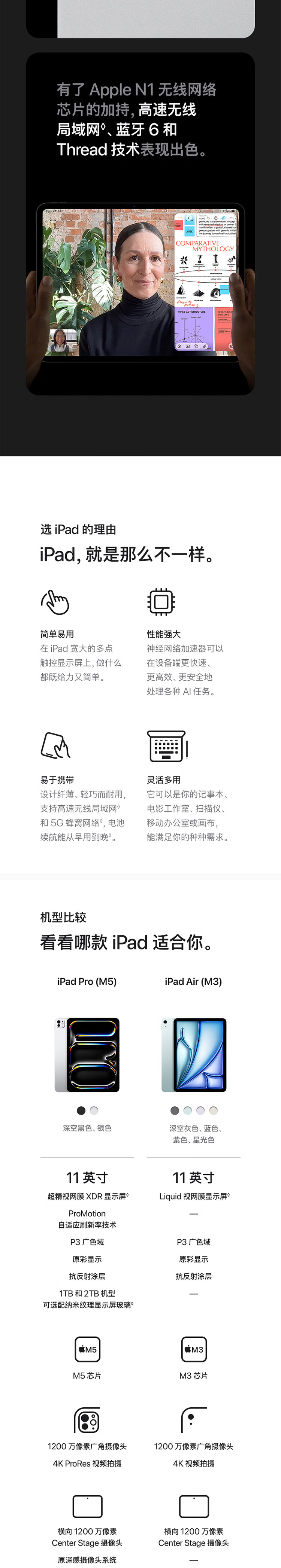 Apple/苹果 iPad Pro13英寸 M5芯片 2025年新款平板电脑 1T纳米玻璃 eSIM版 银色