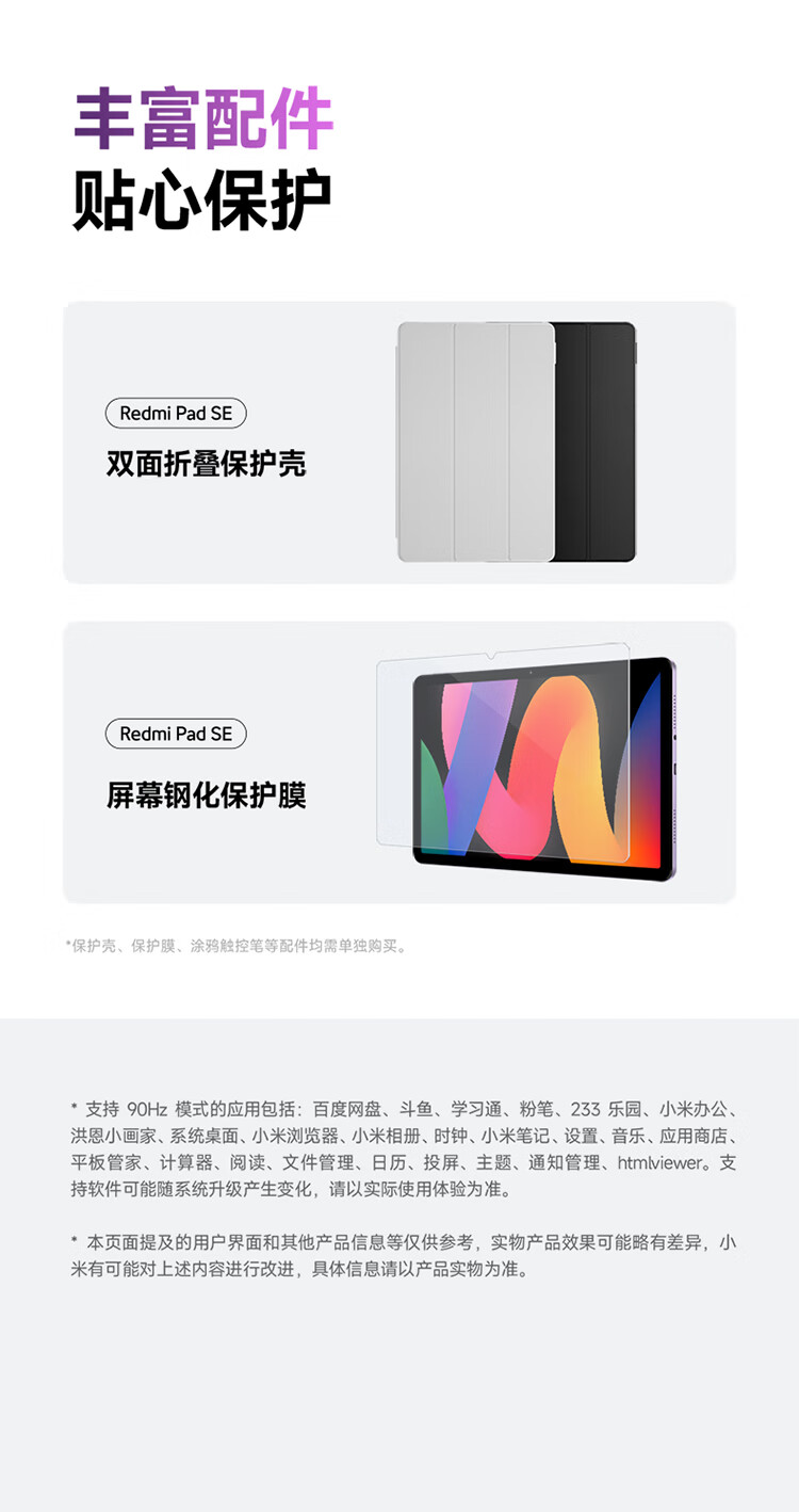 小米红米RedmiPad SE 11英寸90Hz 游戏娱乐二合一学习网课平板电脑 6G+128G 紫色 标配