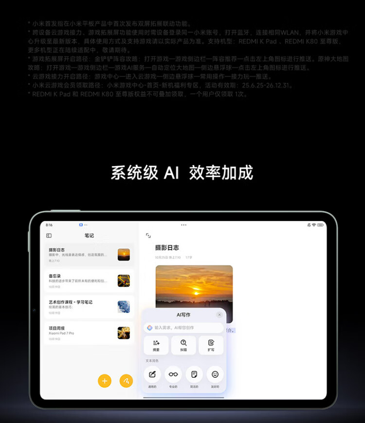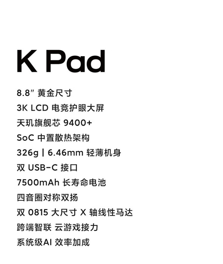 Xiaomi (MI) Tablet K Pad 8.8 inches Redmi 3K ultra-clear screen gaming tablet Dimensity 9400+ REDMI K Pad Deep Black 12GB+256GB