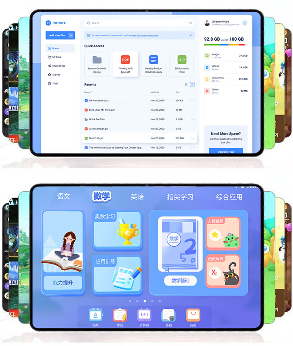 HIWENI2025新款Pad Pro全网通5GWiFi二合一4K超清护眼屏144hz高刷安卓平板电脑网课学习游戏娱乐平板iPad 云岫青 12英丨4K超清144Hz高刷屏丨16G+256G 可插卡丨WIFI 5G全网通二合一丨送豪华大礼包