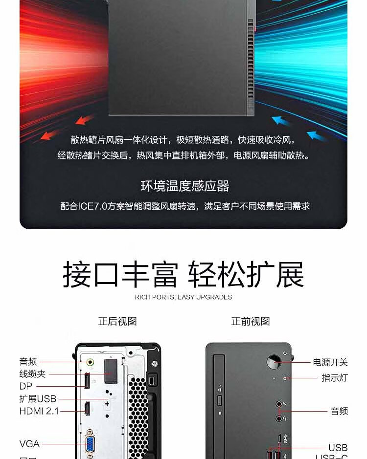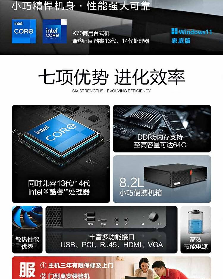 联想ThinkCentre K70 商用办公高性能台式电脑主机(酷睿14代i5-14400 16G DDR5 1TB SSD)23.8英寸全套