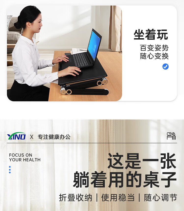 YINO超大桌面床上平躺电脑桌折叠笔记本支架躺着看书画桌床上平板电脑支架玩游戏笔记本懒人桌家用宿舍