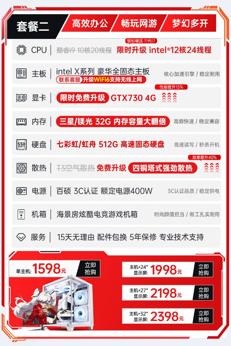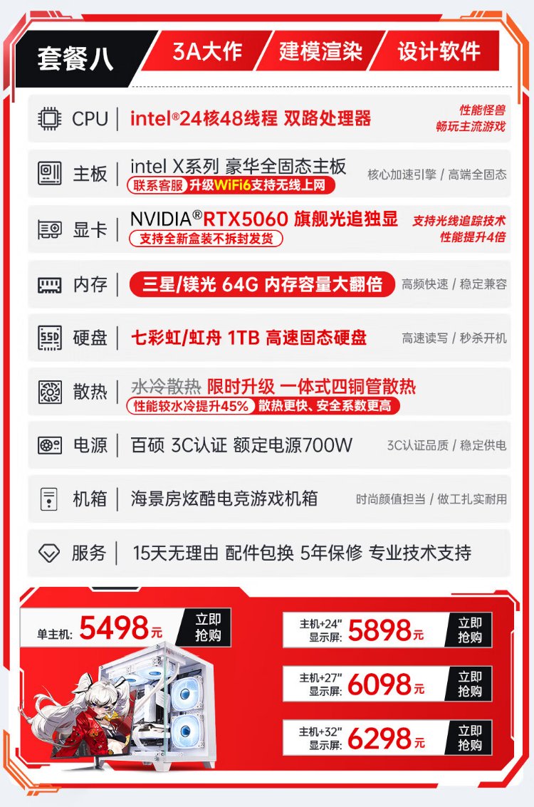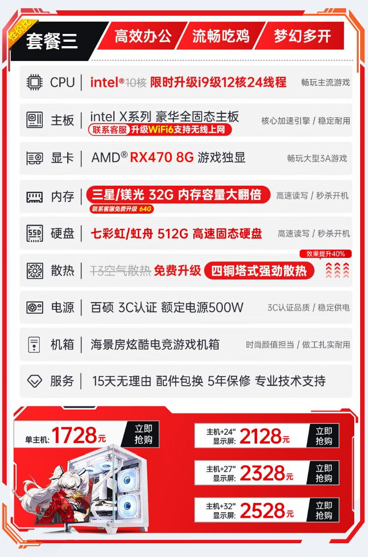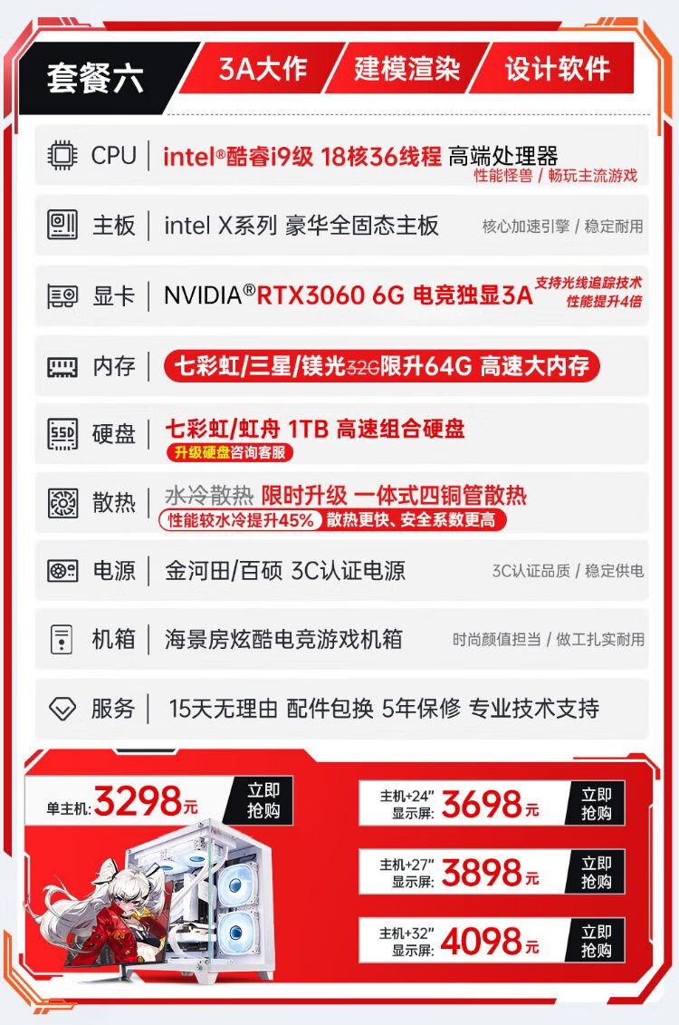 Mechanical Knight 128G Speicher Core i7 Liter 24-Core E-Sport-Desktop-Computer 4060 E-Sport-Host, der Hühnchen isst, unabhängige Anzeige, Büromontage, große Subvention, Heimspiele, wassergekühlter Computer, komplette Maschine, Host + 27-Zoll-hoher Bürstenmonitor + Tastatur- und Maus-Set + Fünf-Jahres-Garantie-Set mit vier Core i9 Level 48 Core 8G E-Sports, unabhängige Anzeige / 1T / Play 3A