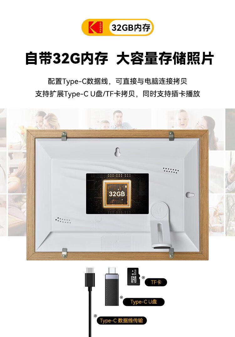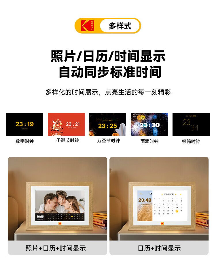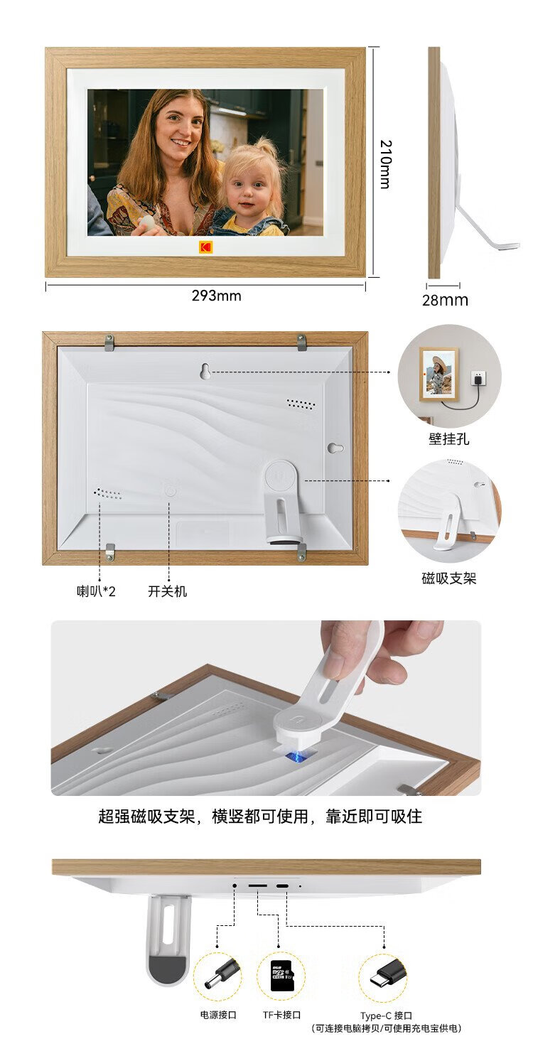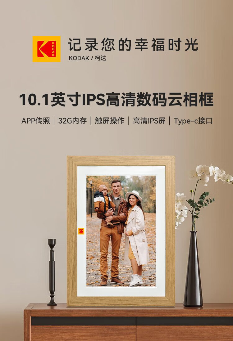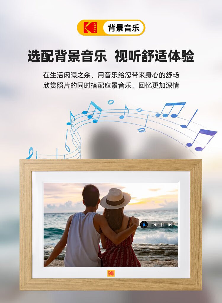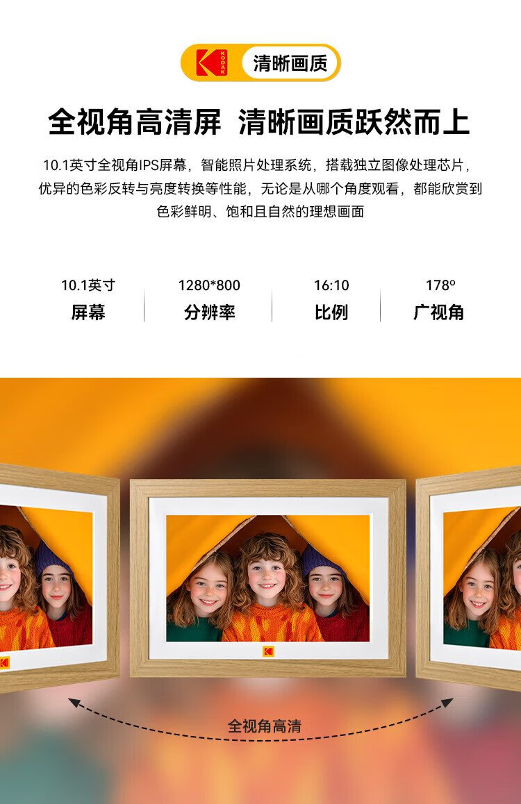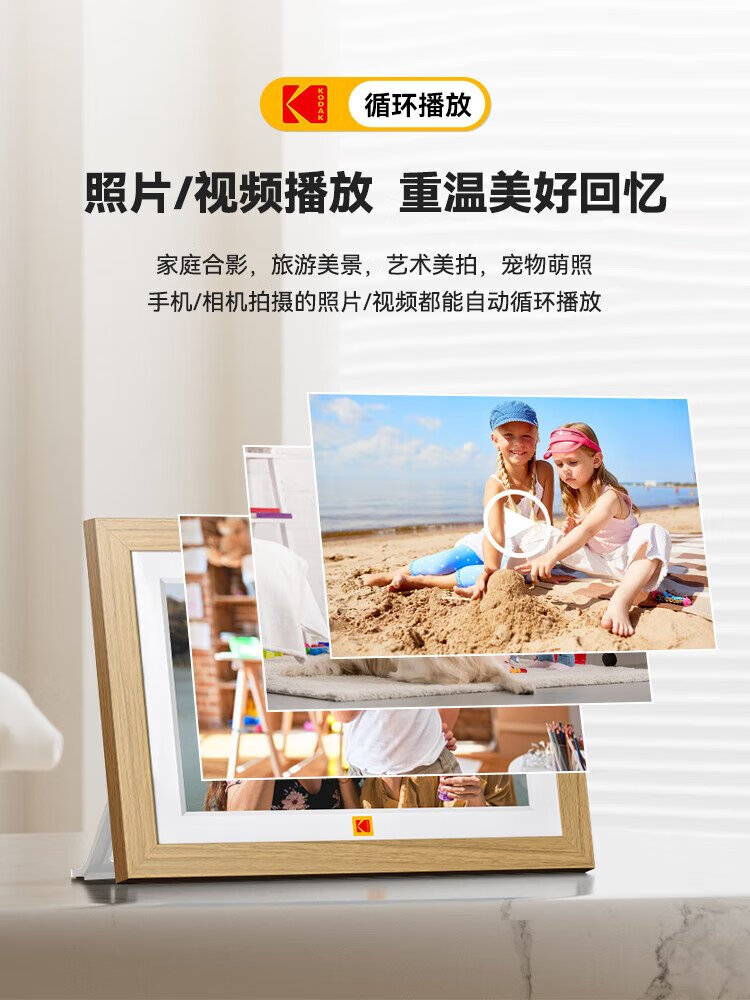 KODAK 1018W digitaler Fotorahmen 10,1 Zoll hochauflösendes elektronisches Fotoalbum Hochzeitsgeschenk Fotovideo automatischer Loop-Player Holzfarbe