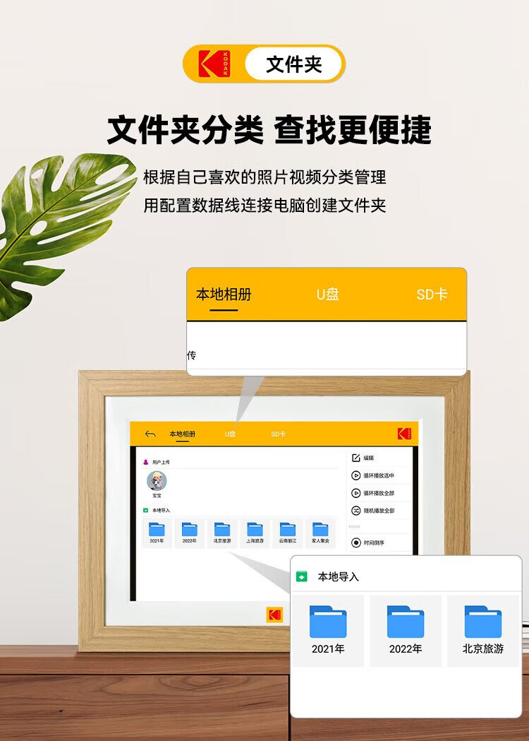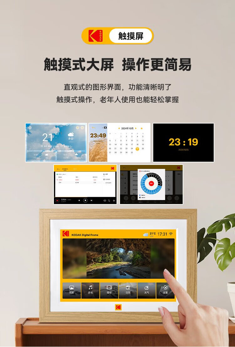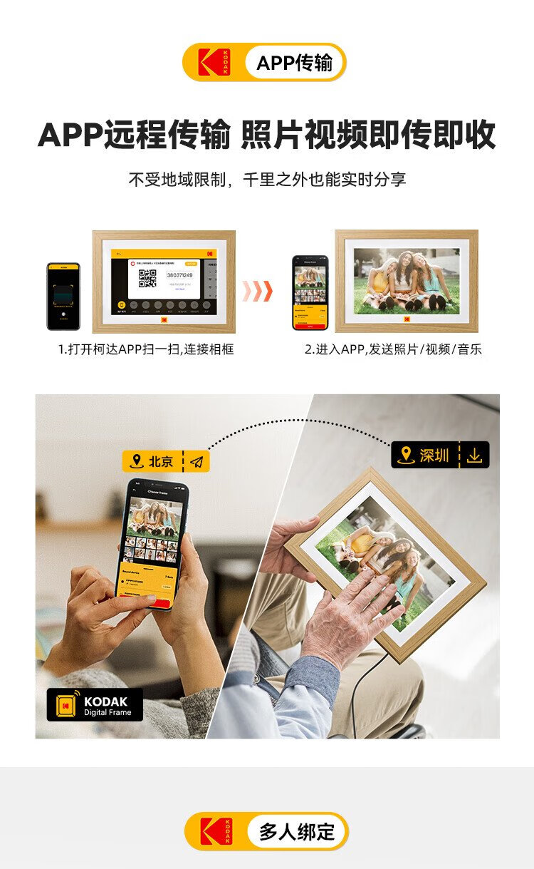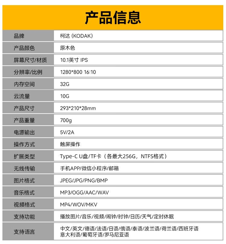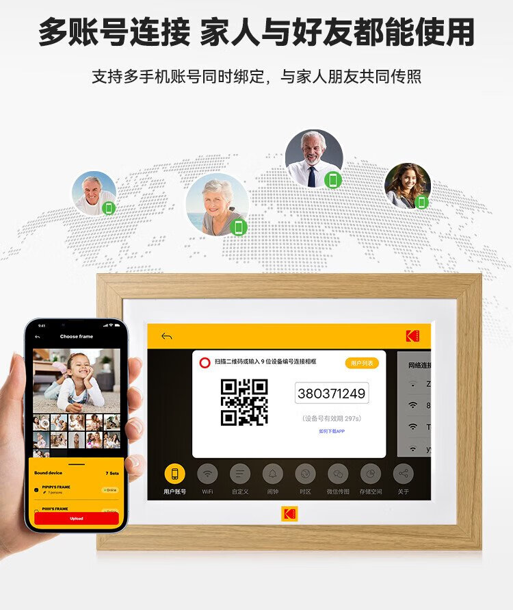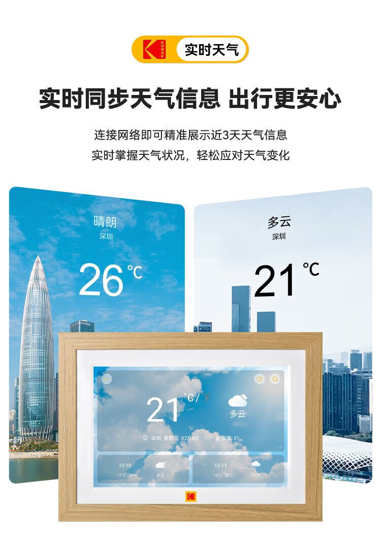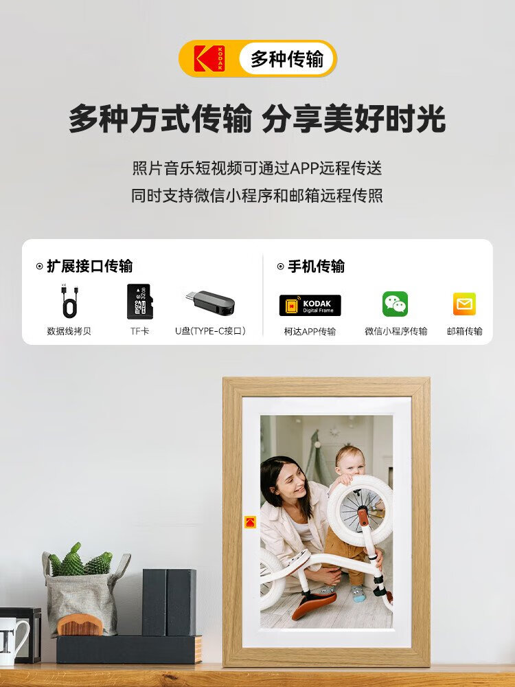 KODAK 1018W digitaler Fotorahmen 10,1 Zoll hochauflösendes elektronisches Fotoalbum Hochzeitsgeschenk Fotovideo automatischer Loop-Player Holzfarbe