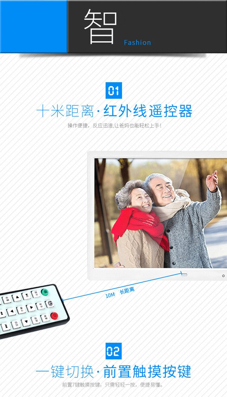 Shockwave 12-Zoll-Digitalfotorahmen, elektronisches Fotoalbum, Ständer, 1280*800-Auflösung, 720P-Videowiedergabe, Kalender, automatische Umschaltung, Supermarkt-Werbegeschenk, weiß, Standardkonfiguration ohne Karte
