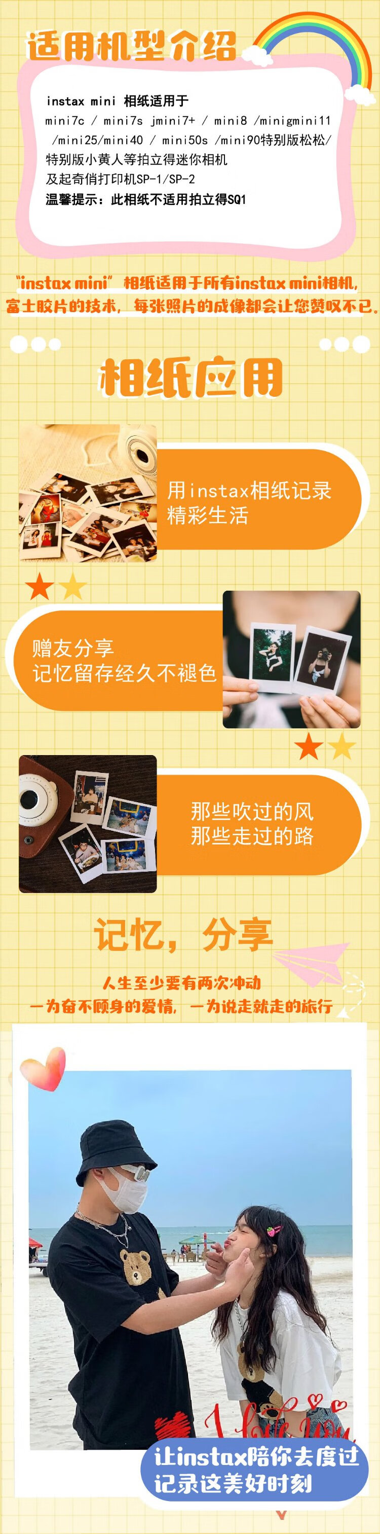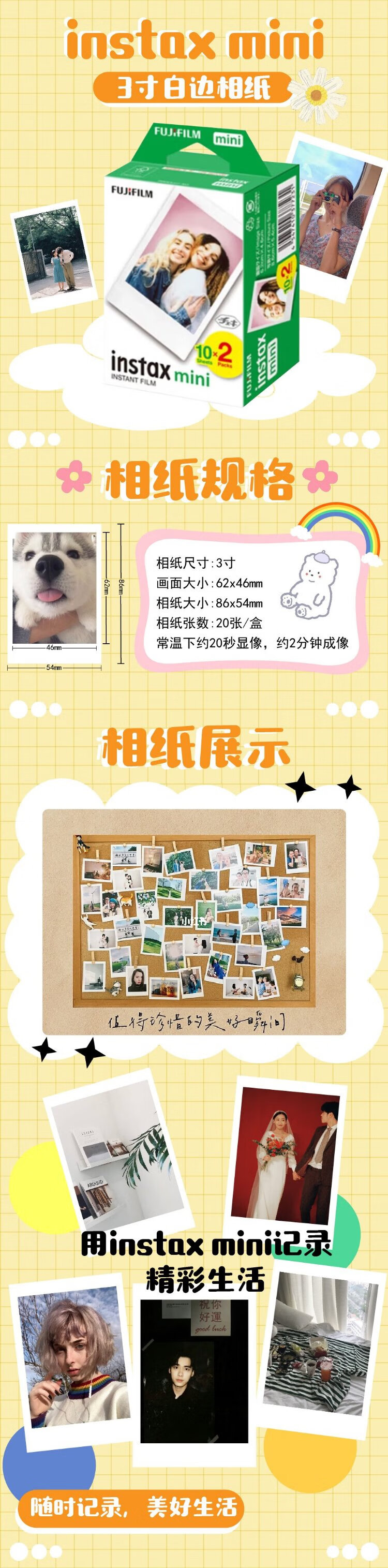 Fujizakura Instant-Fotopapier mini7+/9/11/40/7S/25/70/90/7C Fotopapier mit weißem Rand, 20 Blatt in einer Box