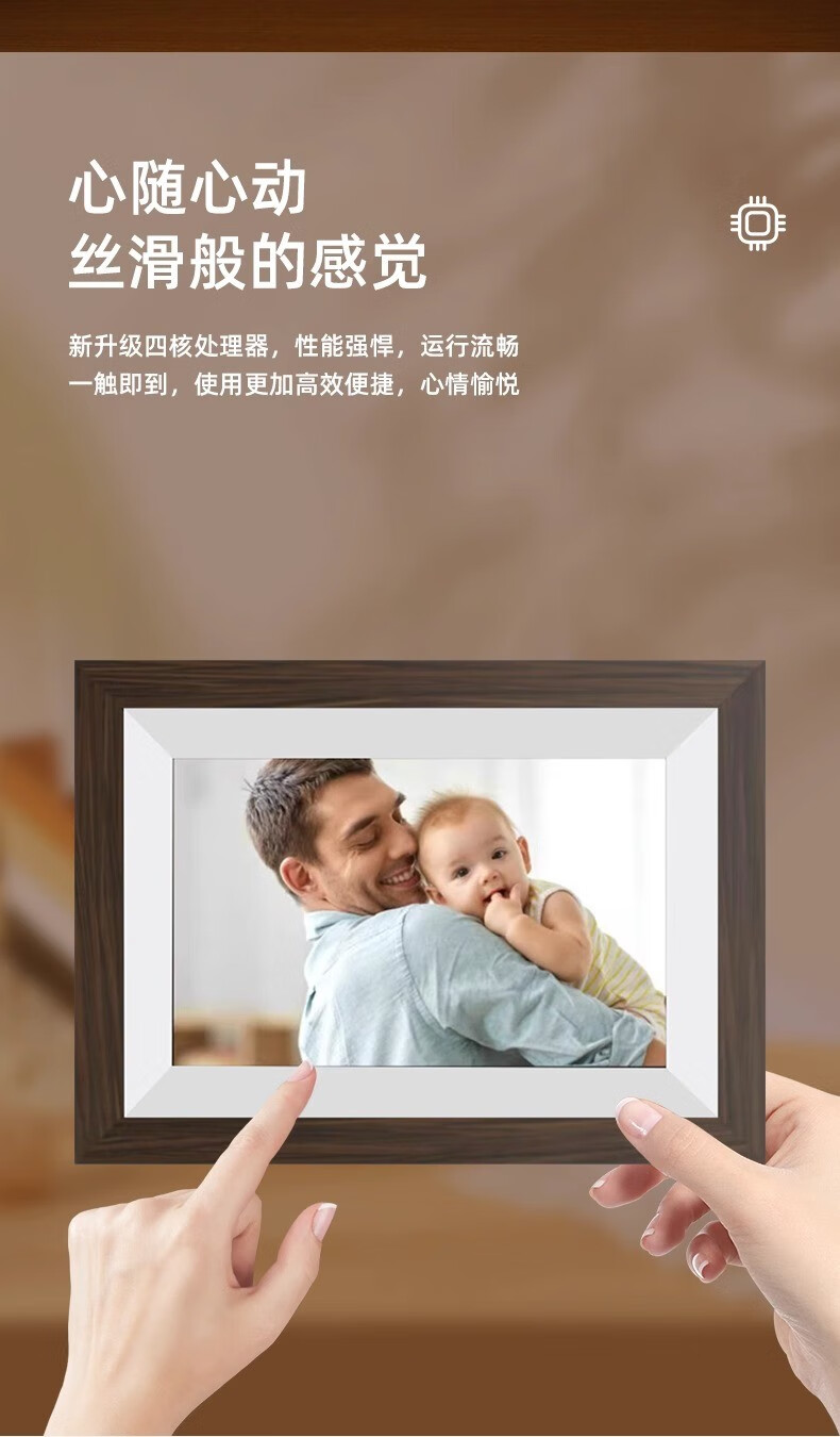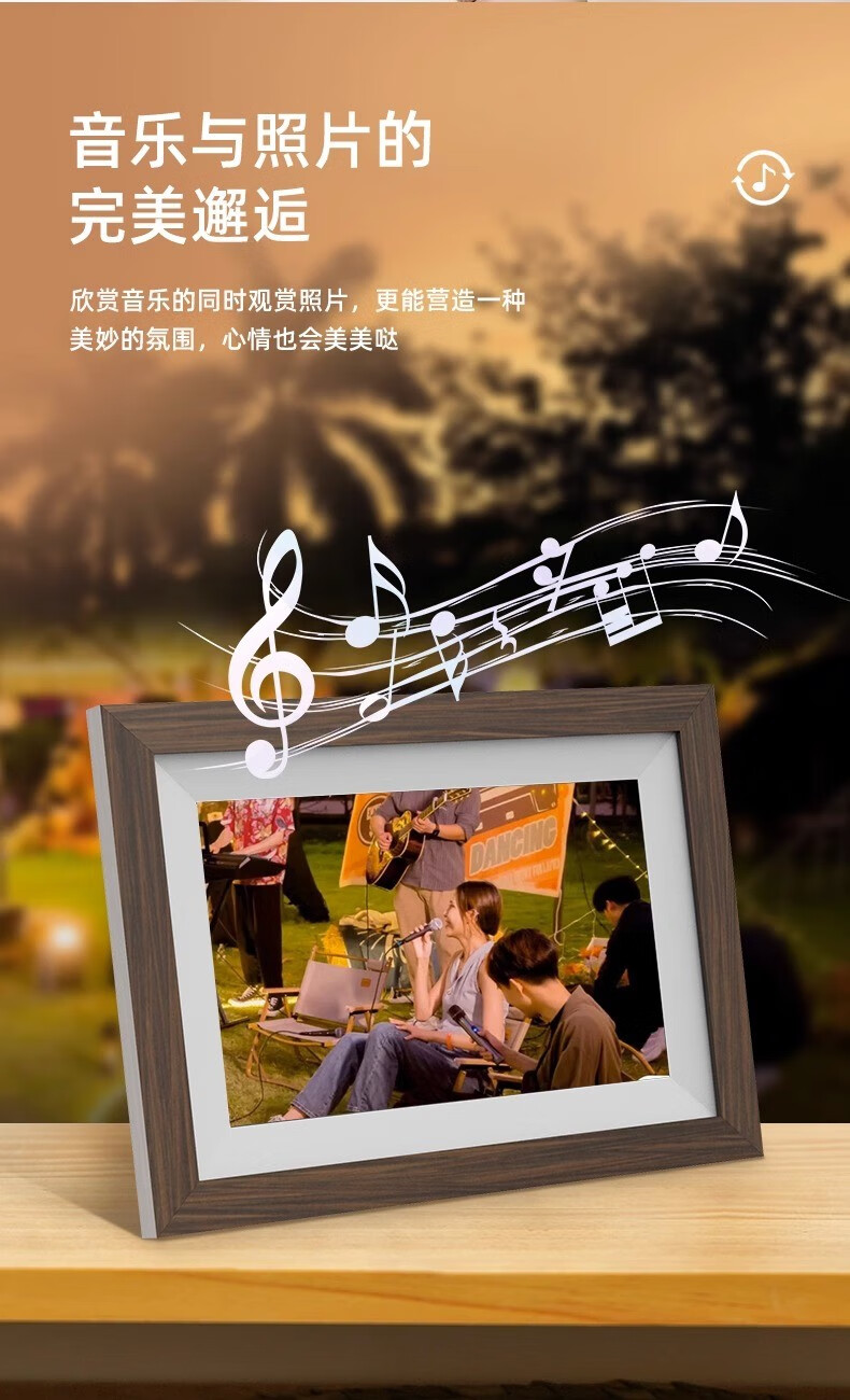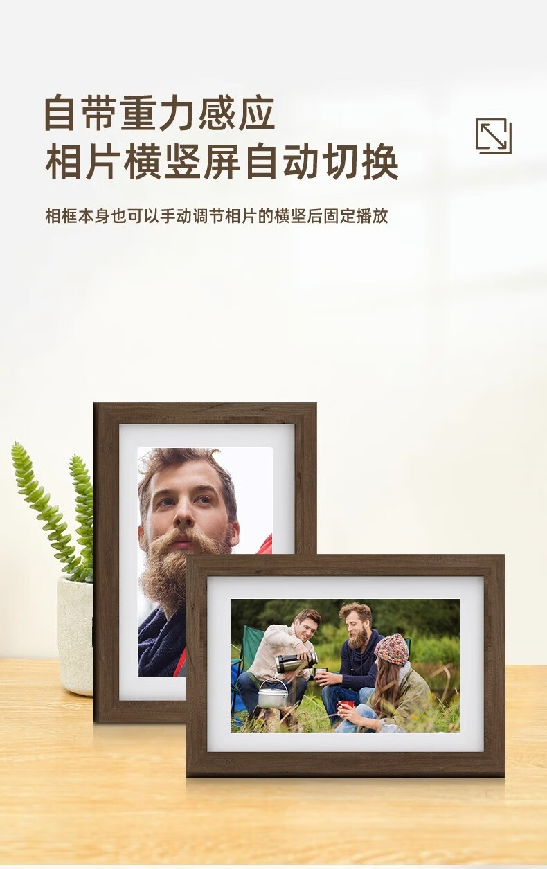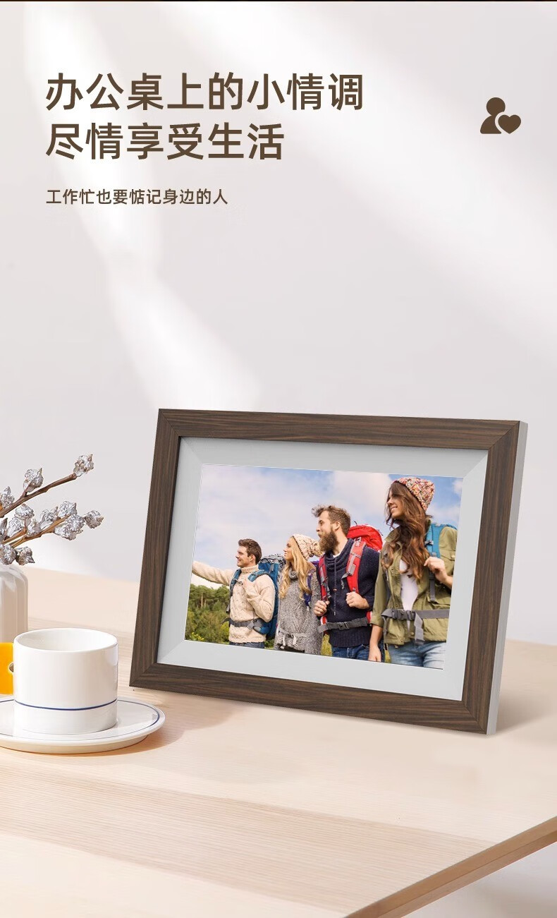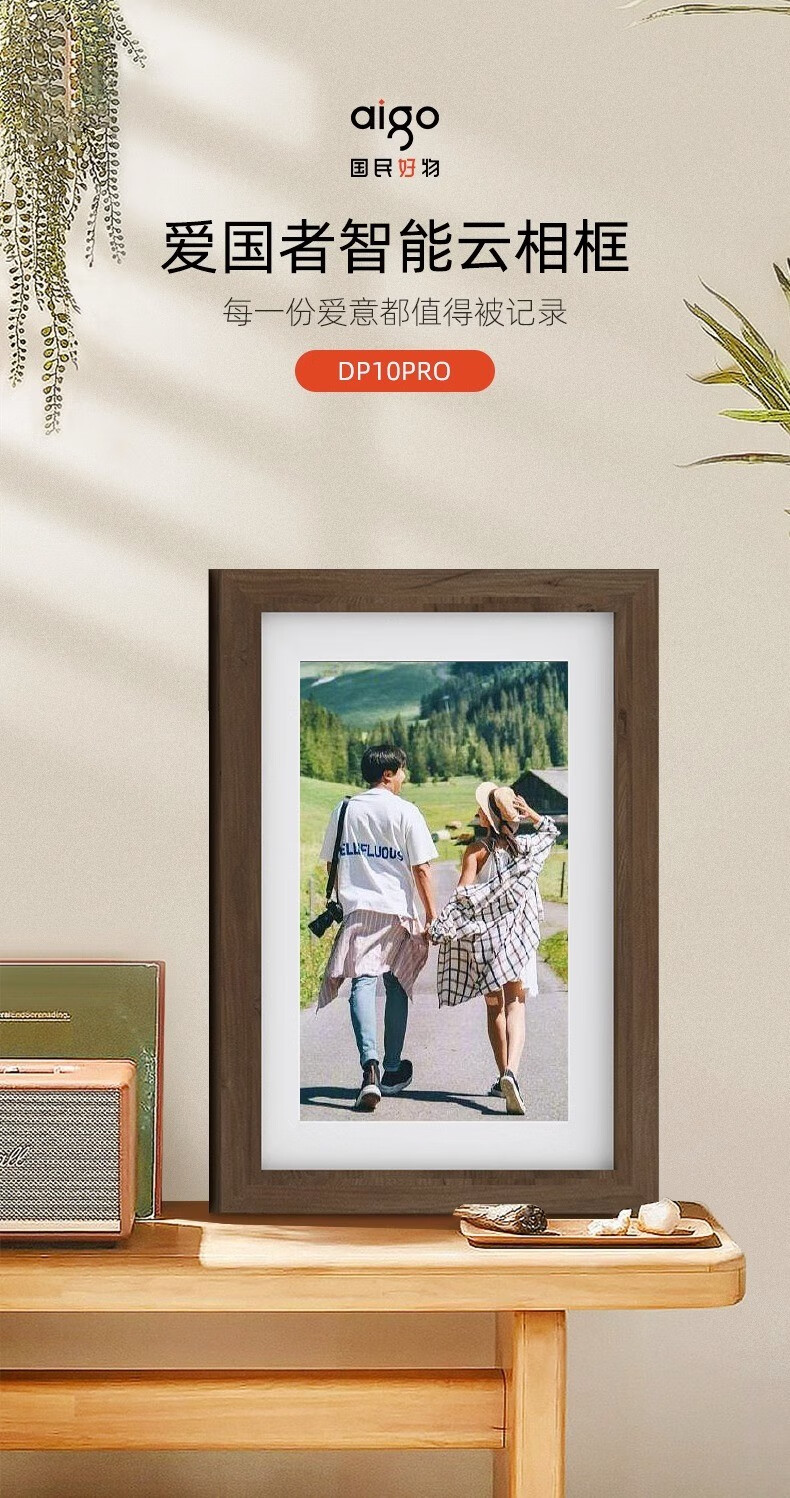 Patriot (aigo) Cadre photo numérique intelligent Patriot de 10 pouces, lecture d'images et de vidéos haute définition, affichage de transmission de photos à distance, affichage horizontal et vertical, LOGO personnalisé, cadeau de vacances DP10 PRO couleur bois de santal + carte mémoire 128G