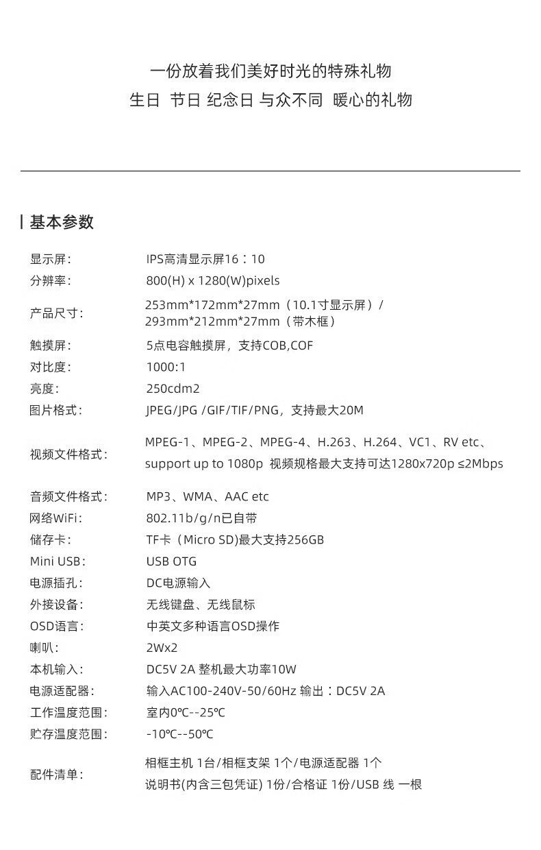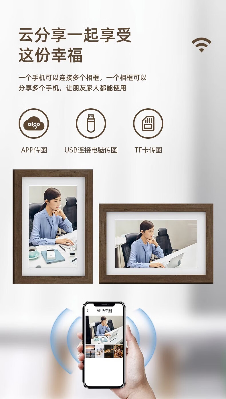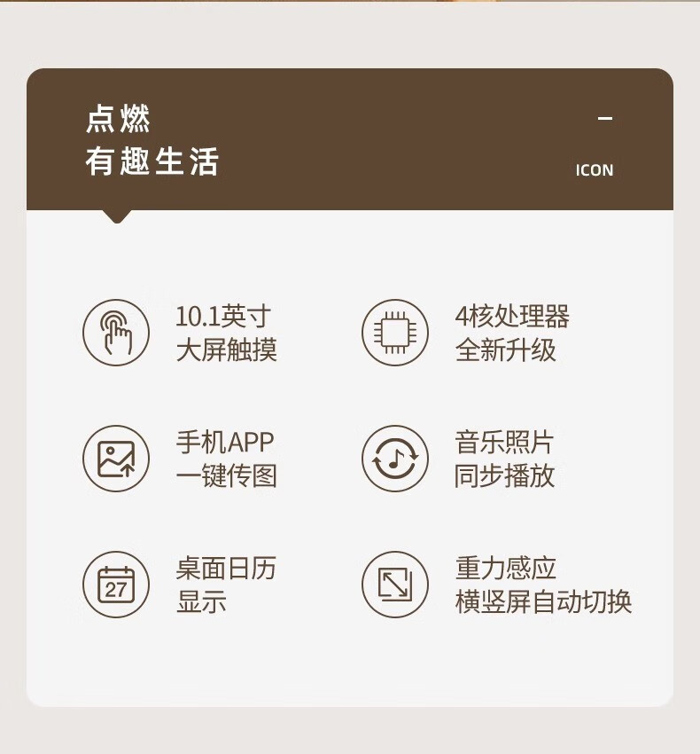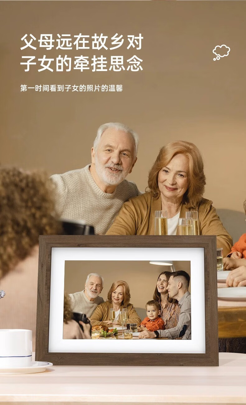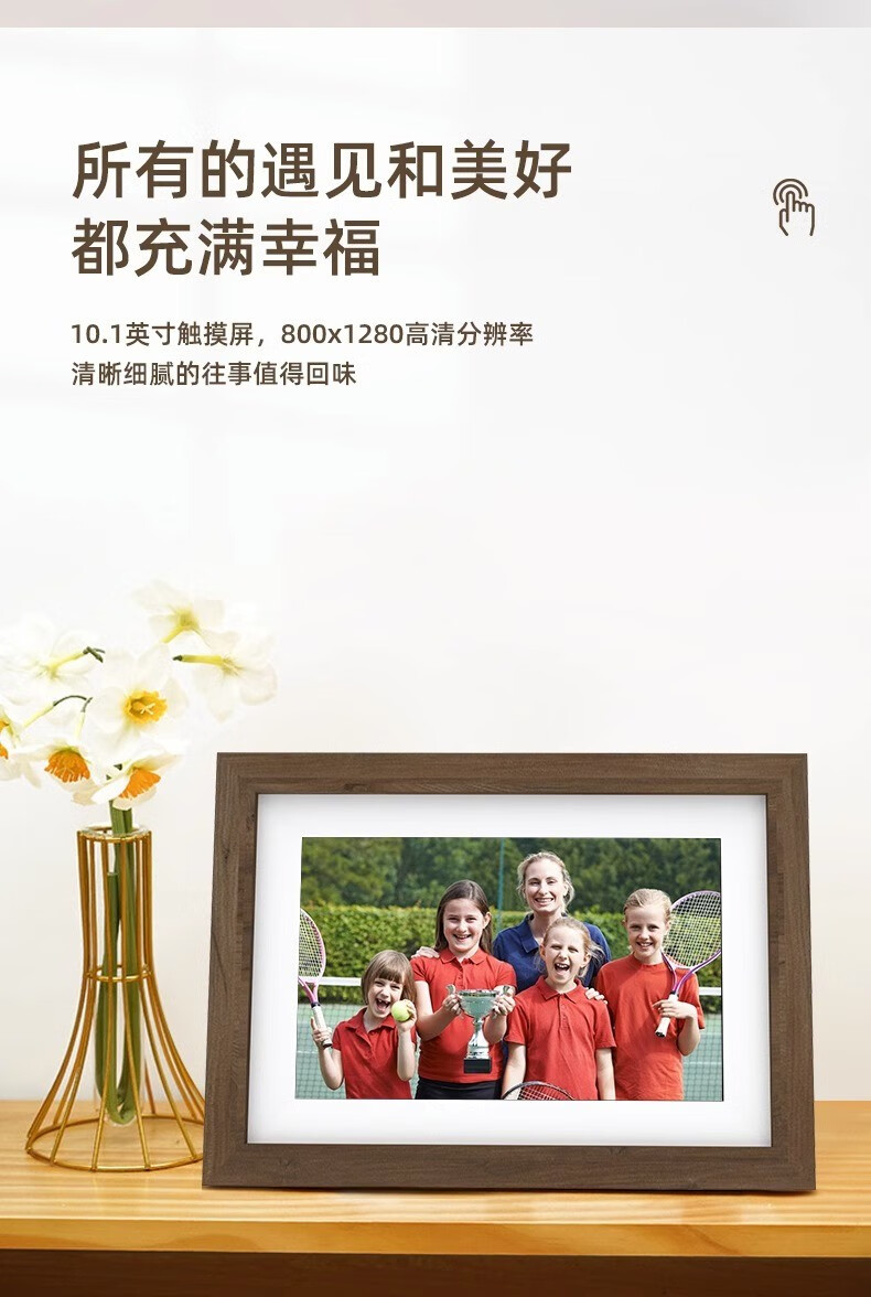 Patriot (aigo) Cadre photo numérique intelligent Patriot de 10 pouces, lecture d'images et de vidéos haute définition, affichage de transmission de photos à distance, affichage horizontal et vertical, LOGO personnalisé, cadeau de vacances DP10 PRO couleur bois de santal + carte mémoire 128G