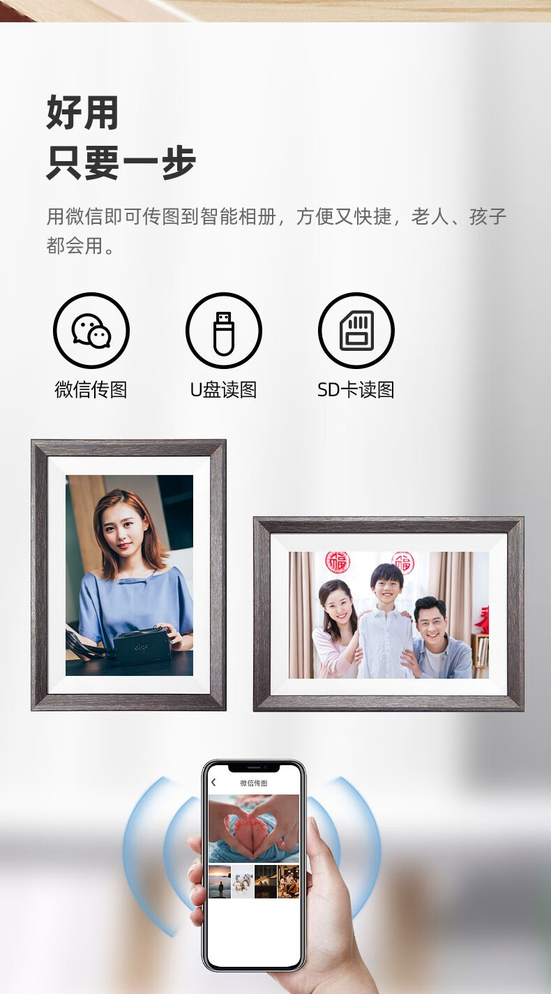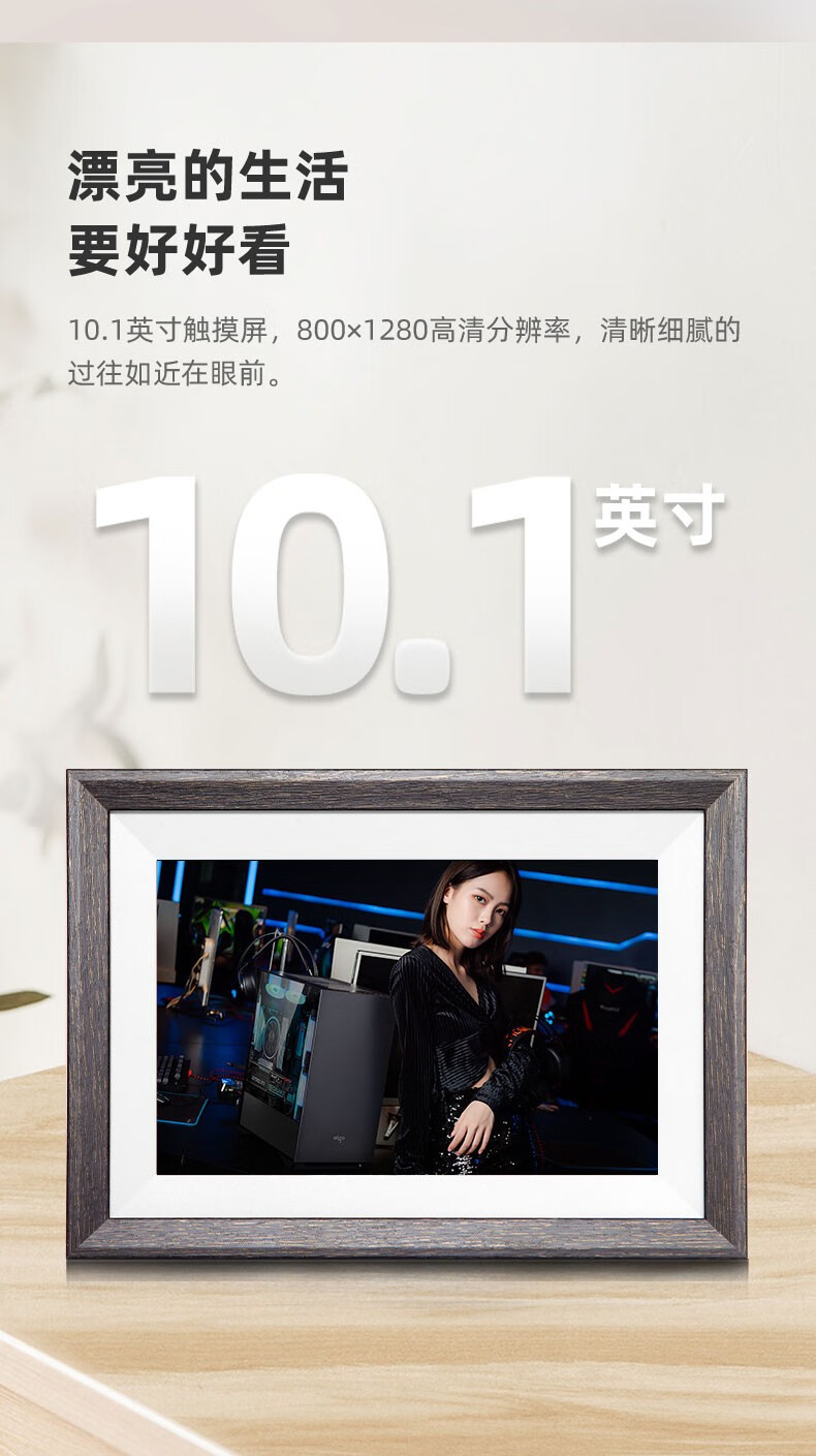 Aigo Smart Digital Photo Frame DP10 10.1 pulgadas WeChat transferencia remota de fotos wifi álbum de fotos electrónico de alta definición pantalla táctil reproductor de video DP10 pro con tarjeta 128G + lector de tarjetas color roble