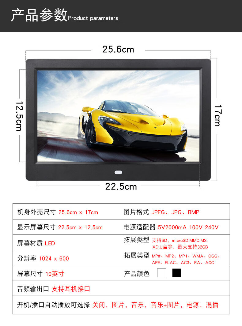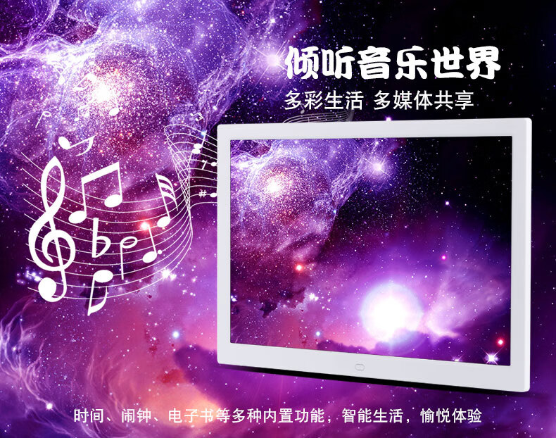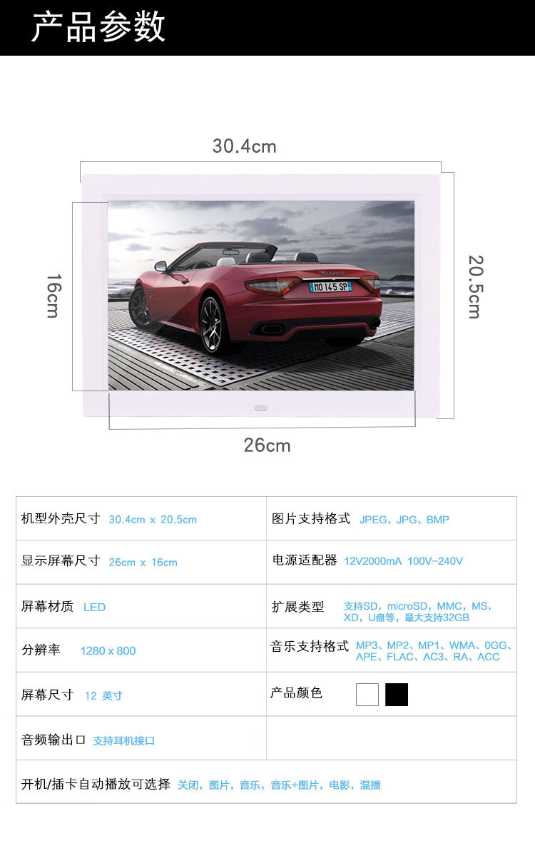 杰奇洛超薄窄边10/12/15/17/19/22英寸锂电智能数码相框LED屏支持自动播放音乐图片高清视频电影电子相册 12寸直插配64G