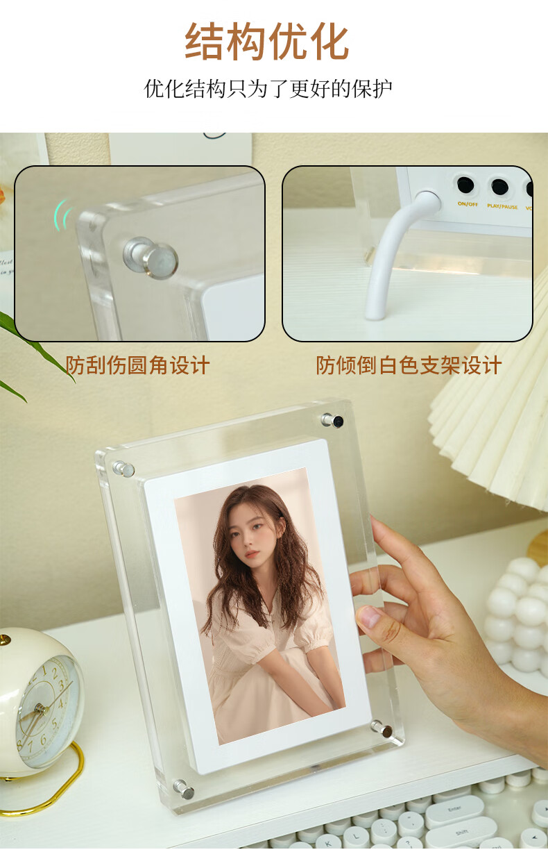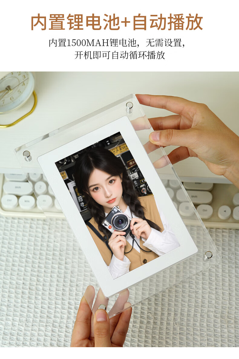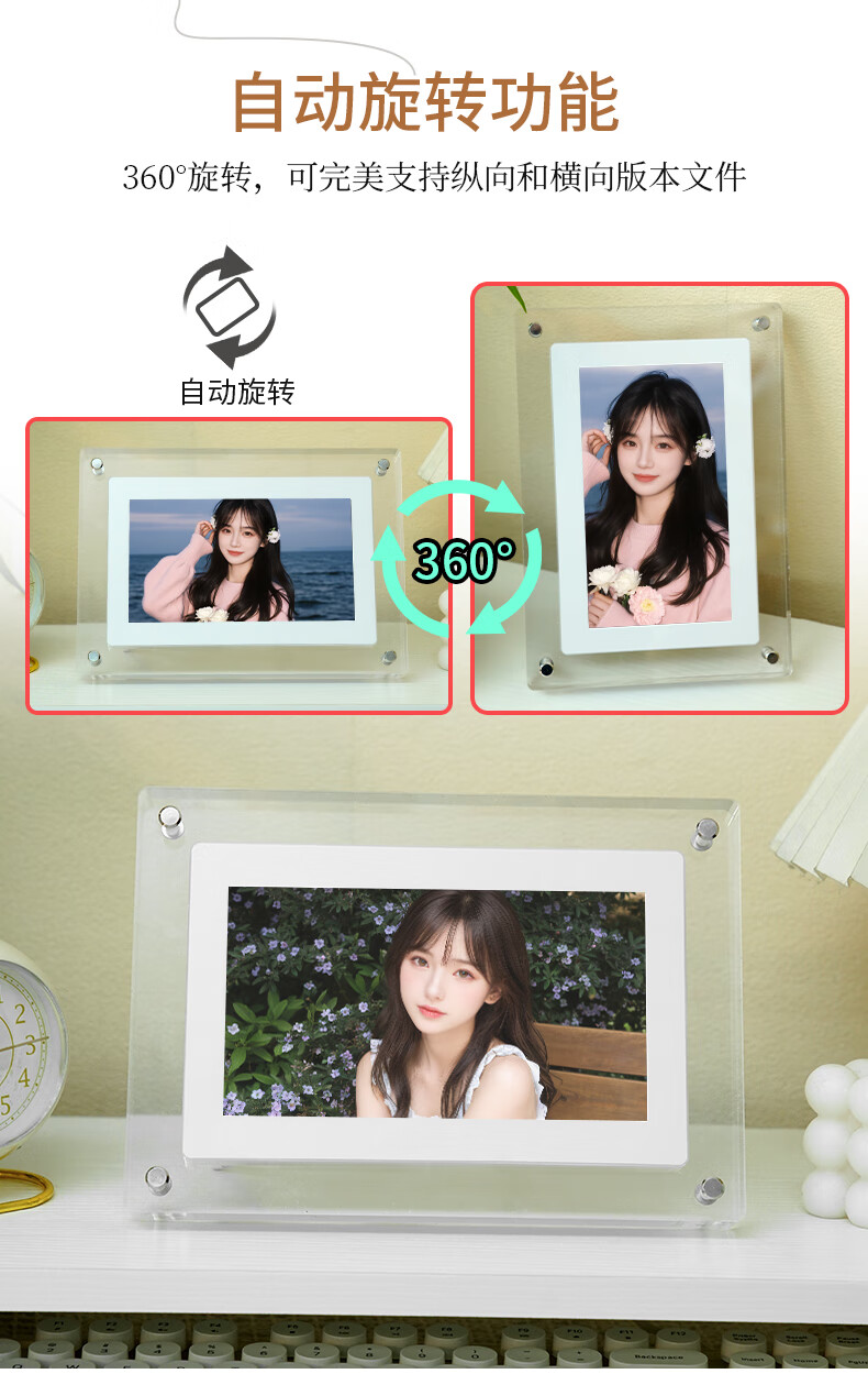 FAN HOME Acrylic electronic photo frame photo album digital digital high-definition display photo photo video player smart table setting unplugged automatic recycling gift frame 57 inches 5 inches - 1200mh battery 4GB memory (gravity induction automatic rotation)