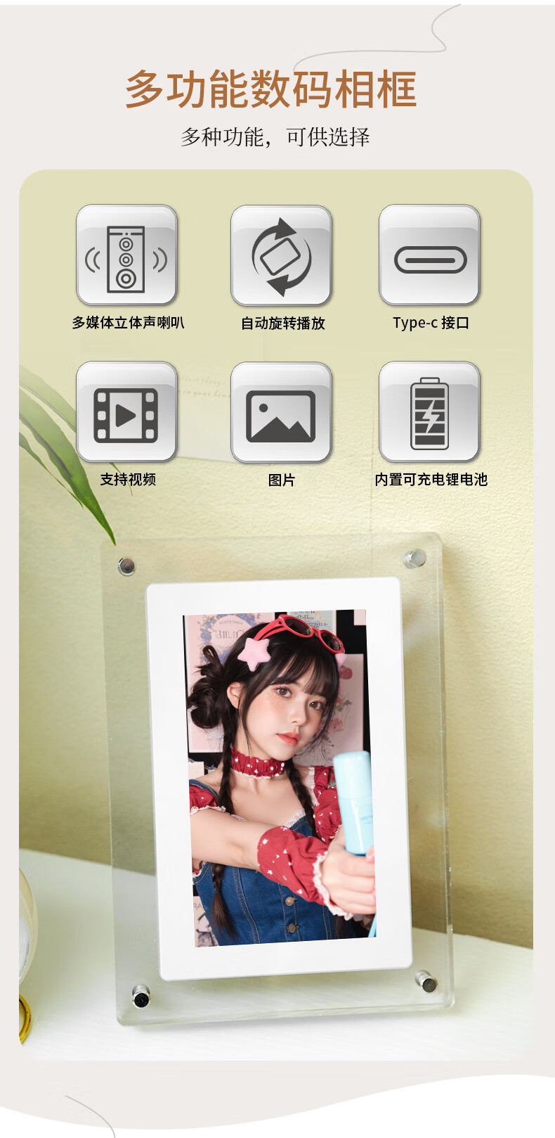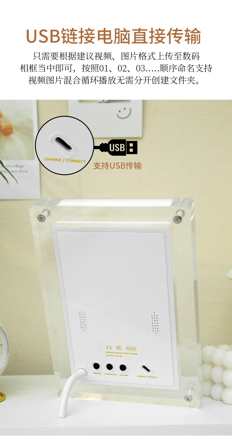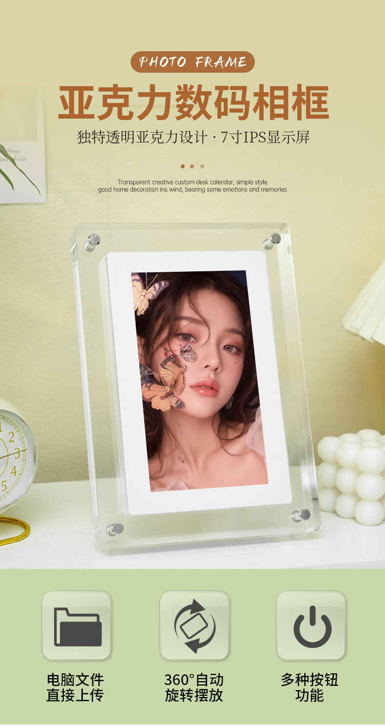 FAN HOME Acrylic electronic photo frame photo album digital digital high-definition display photo photo video player smart table setting unplugged automatic recycling gift frame 57 inches 5 inches - 1200mh battery 4GB memory (gravity induction automatic rotation)