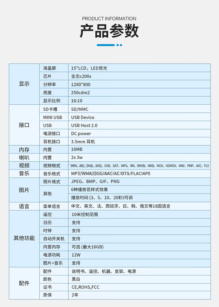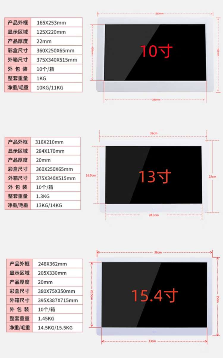 JEQLO batería de litio Marco de fotos digital de 15 pulgadas Álbum de fotos electrónico de alta definición de 10 pulgadas 13 pulgadas Pantalla LED Reproductor de calendario de video 10 pulgadas sin memoria predeterminado blanco negro negro notas de pedido
