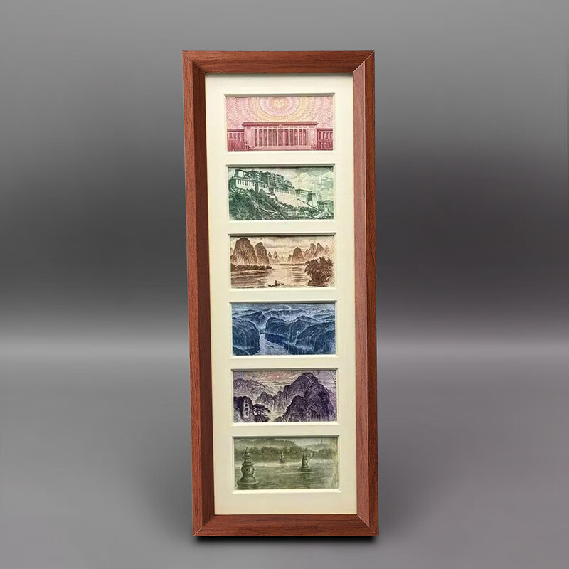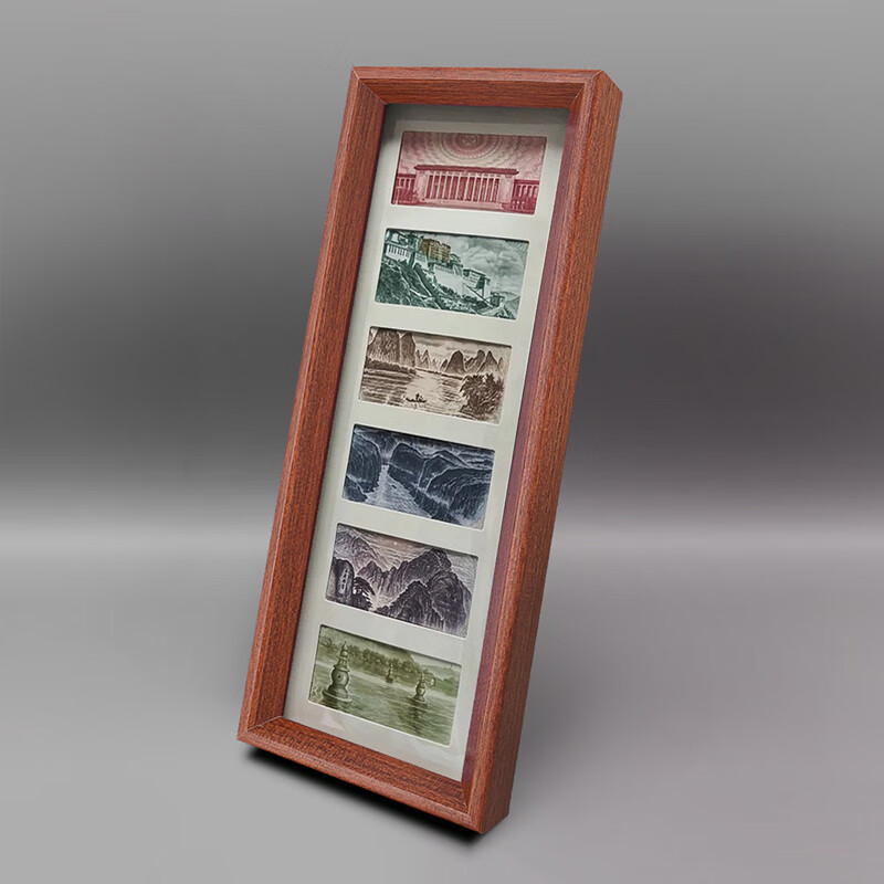 CLCEY Marco de fotos de los grandes ríos y montañas de la Patria seis filas consecutivas de monedas de 100 yuanes para aumentar el transporte y marco de fotos de madera maciza dorada en color nogal color nogal + color de registro 2 piezas de diámetro interior 13 * 32 cm sin incluir monedas