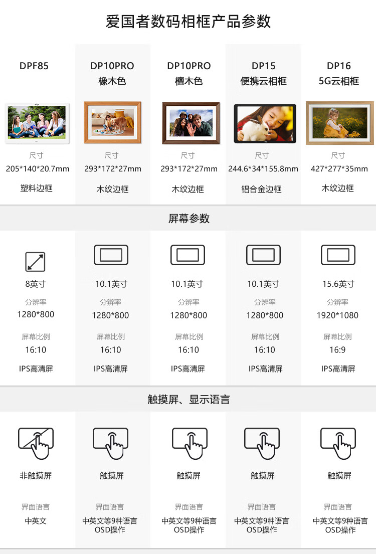 Patriot (aigo) marco de fotos digital inteligente HD álbum de fotos electrónico transmisión en la nube reproductor de fotos de vídeo regalo de los padres regalo de boda DP16 15,6 pulgadas color roble conexión 5g