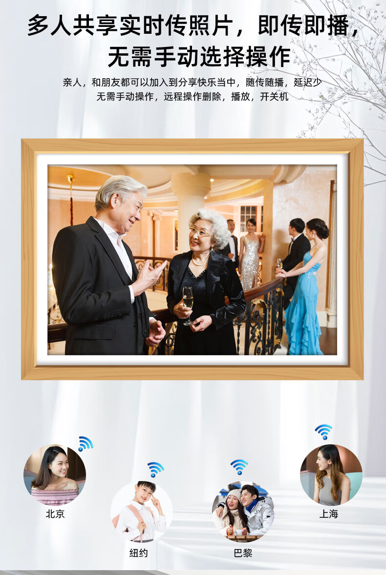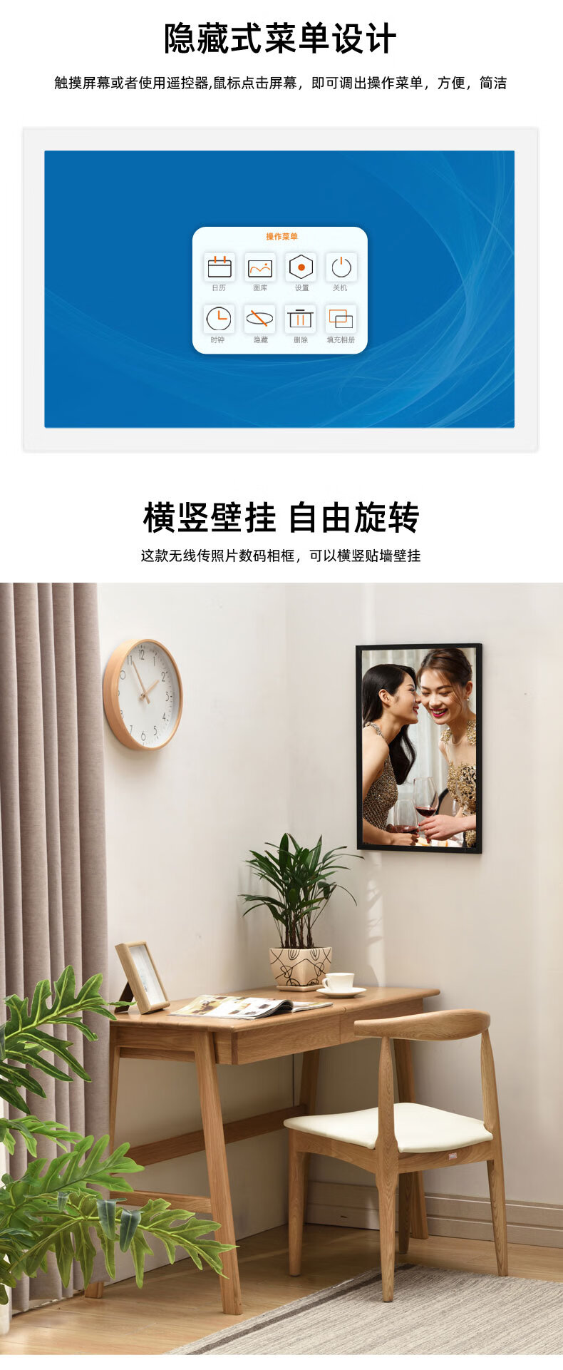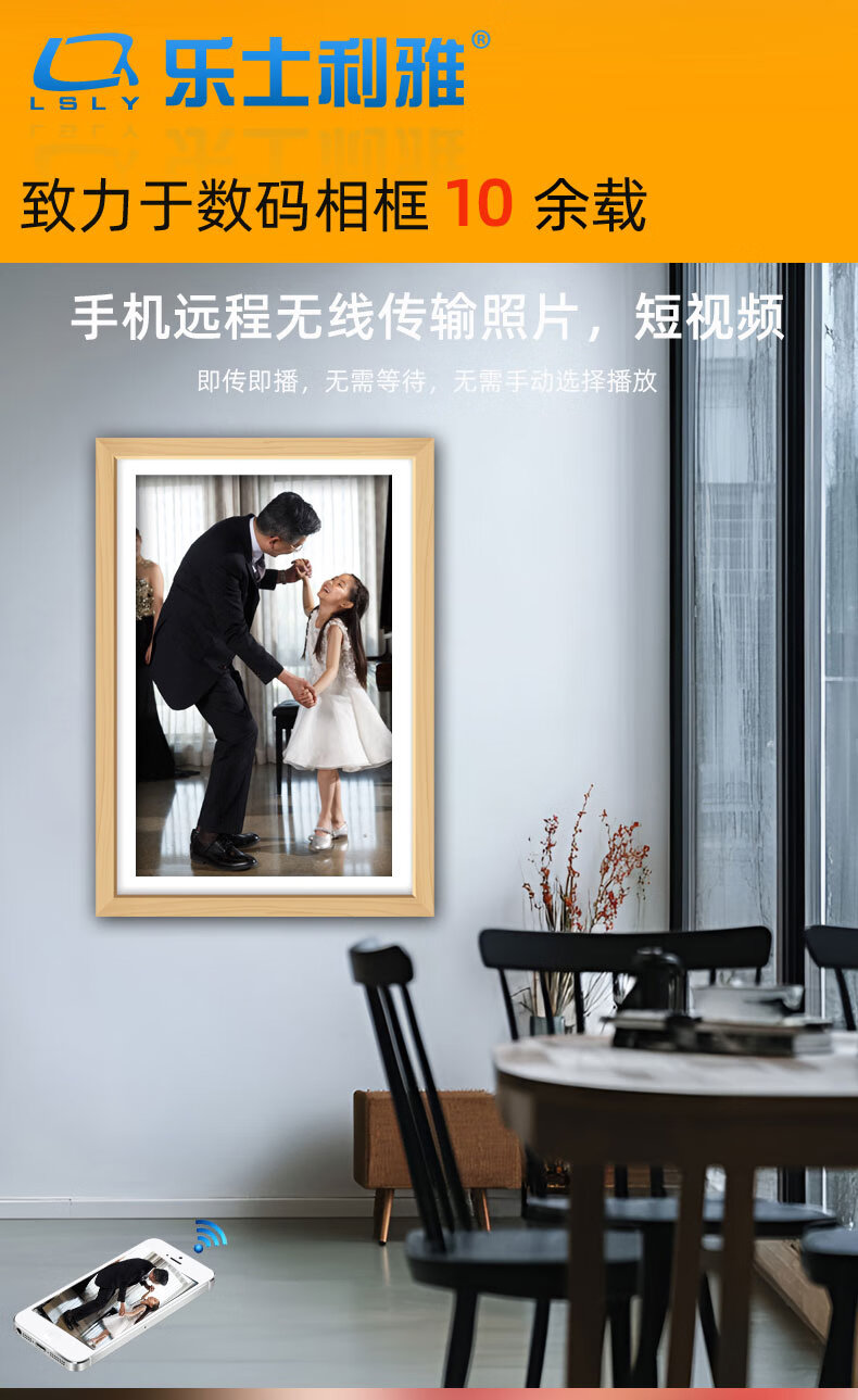 El nuevo marco de fotos digital de Leshilia, álbum de fotos electrónico ultrafino de borde estrecho de alta definición, se puede colgar en la pared horizontal y verticalmente, el reproductor de fotos de alta definición de 15,6 pulgadas (color madera maciza) viene de serie con colgante de pared 32G + control remoto