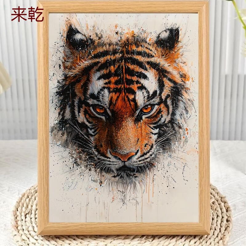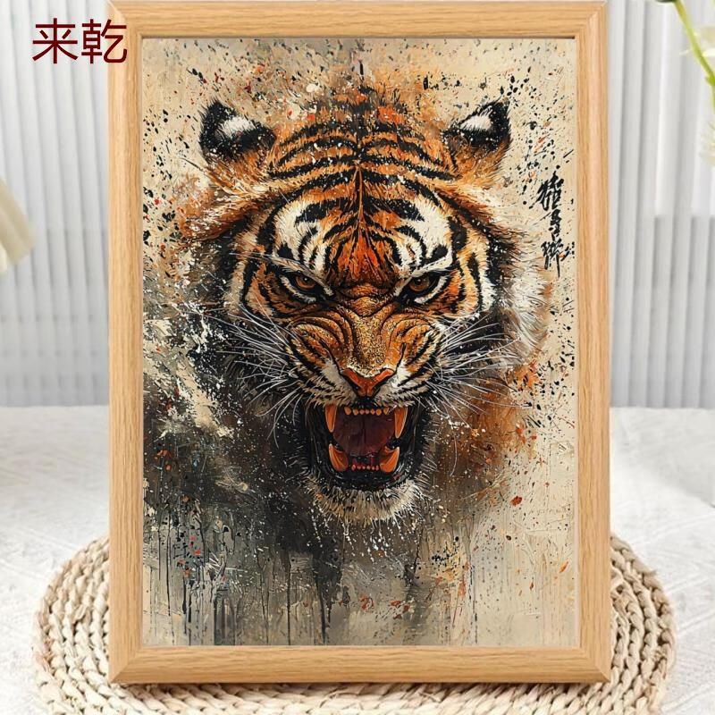 Yusenyi Adorno de Tigre, Marco de Fotos de Estilo de Tinta Personalizado de Tendencia Nacional, Sala de Estar, Dormitorio, Entrada, Escritorio de Oficina, Yinhu 02 Foto de Panel de Vidrio Popular de 7 Pulgadas + Foto